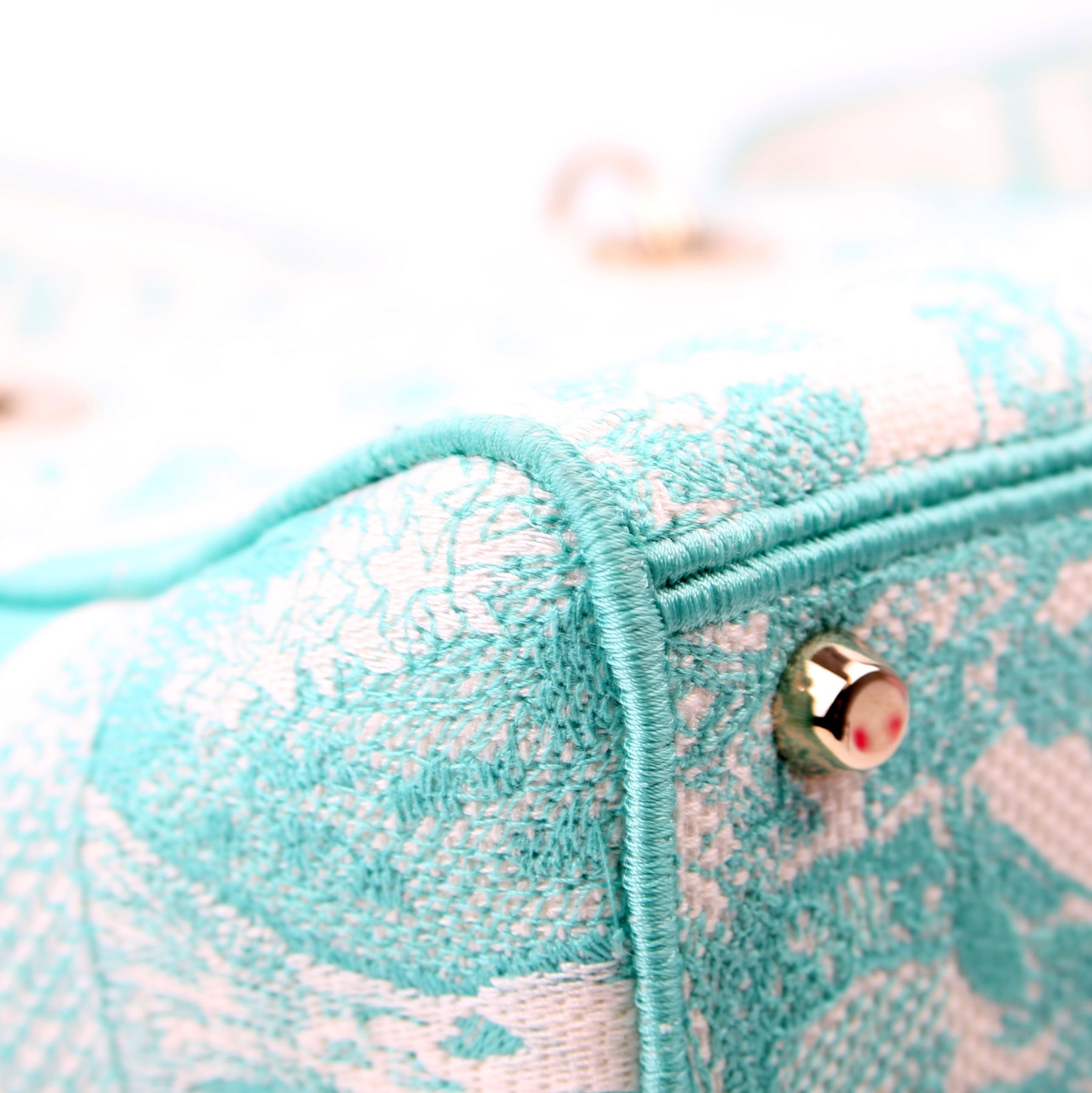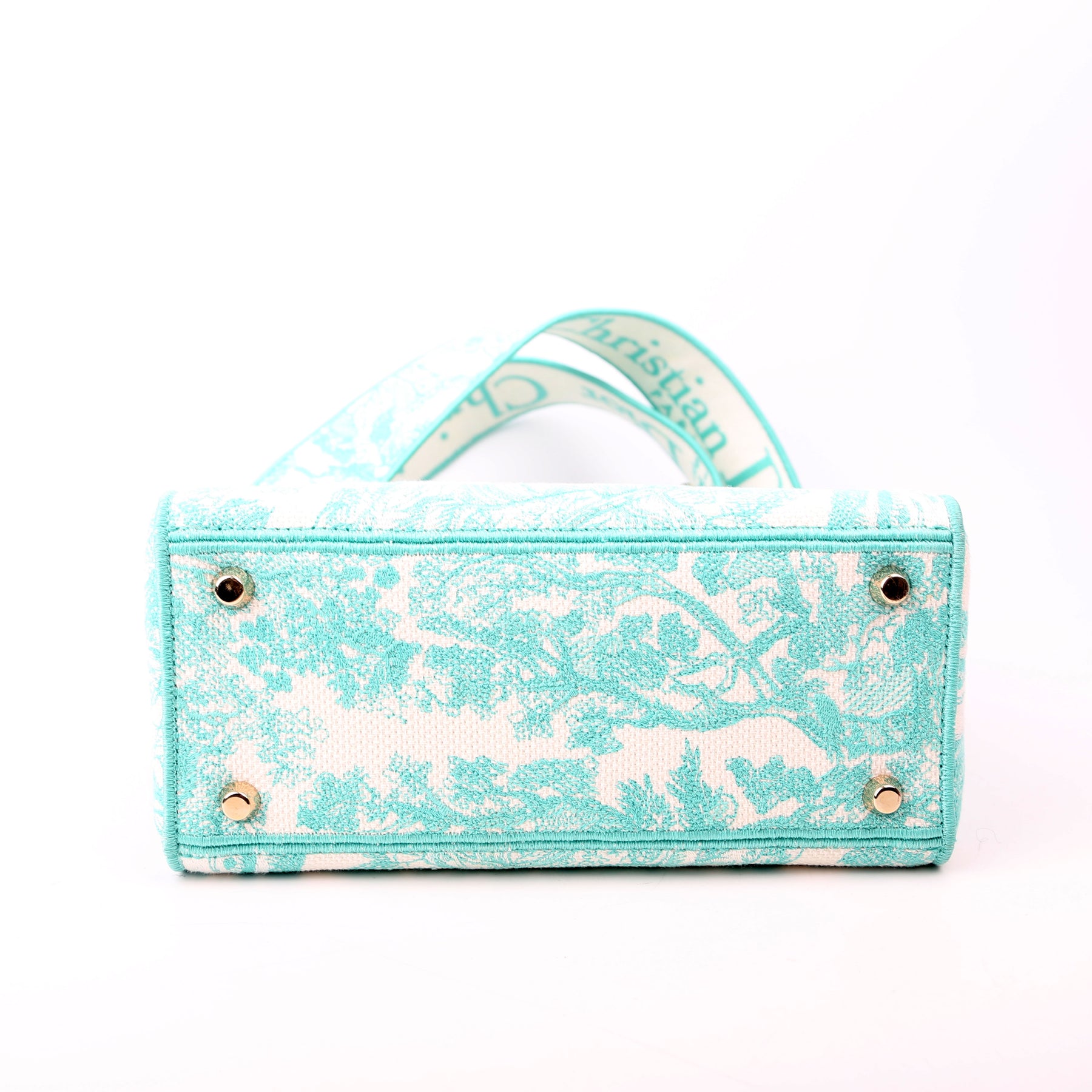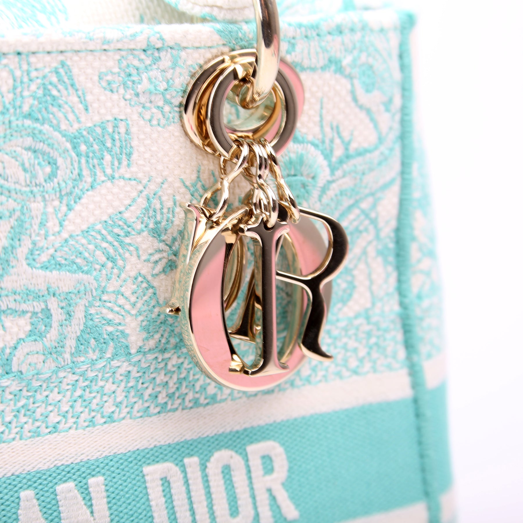 This pre-owned Christian Dior Lady D-Lite Medium is guaranteed 100% authentic. The exterior is in the classic Christian Dior Embroidered canvas.