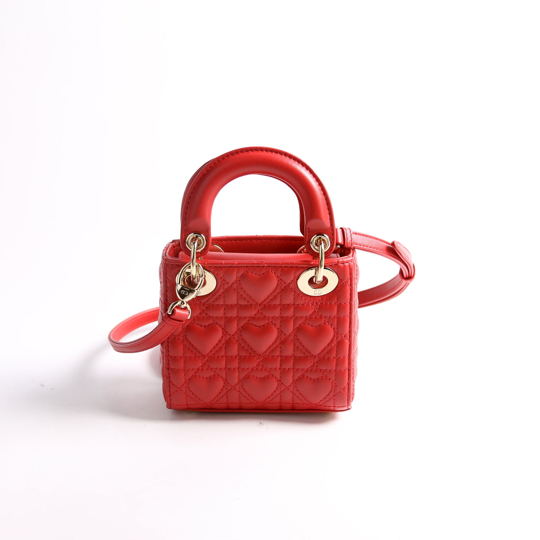 This pre-owned Dior Lady Dior Micro is guaranteed 100% authentic. The exterior is in the classic Dior Diamond Cannage Calfskin leather.