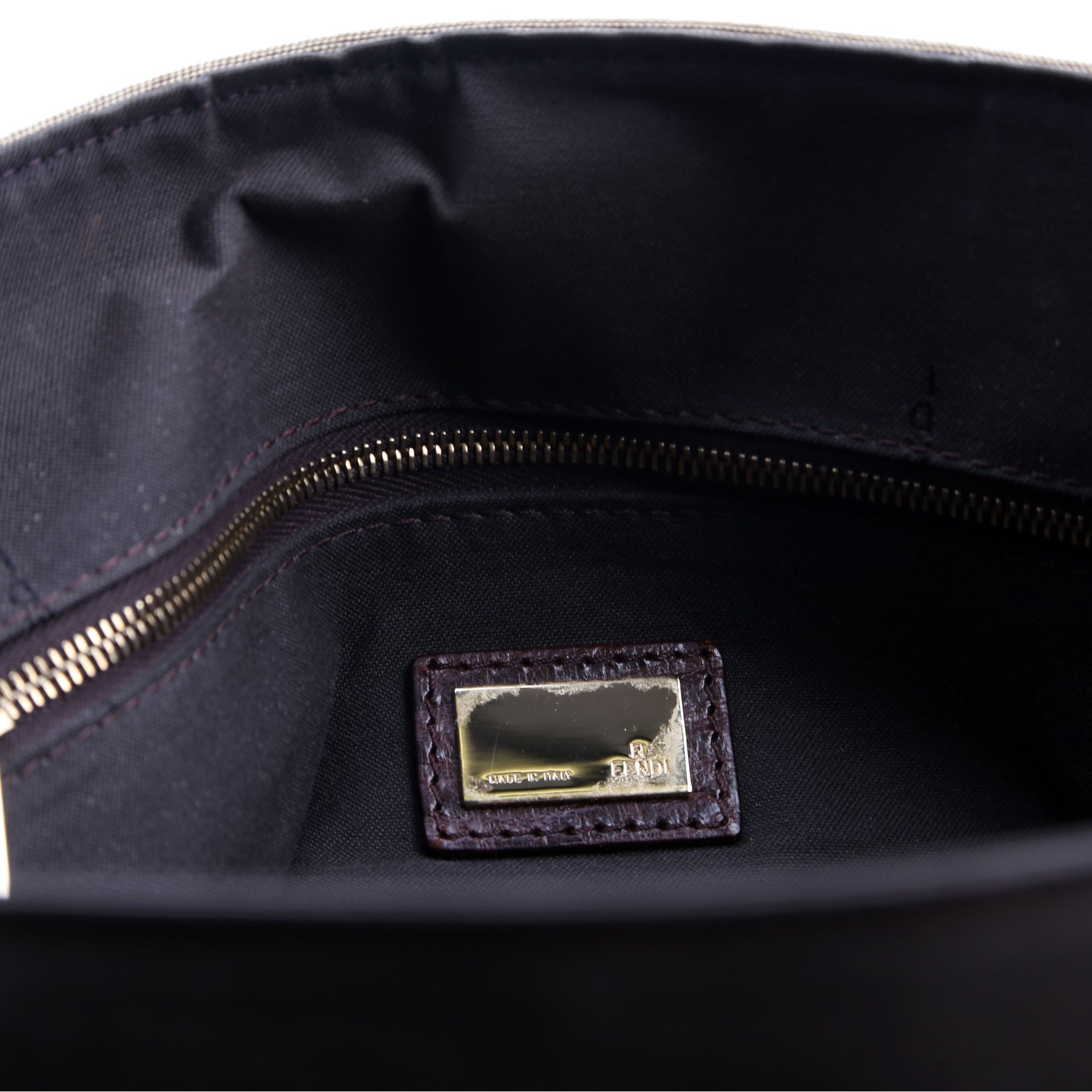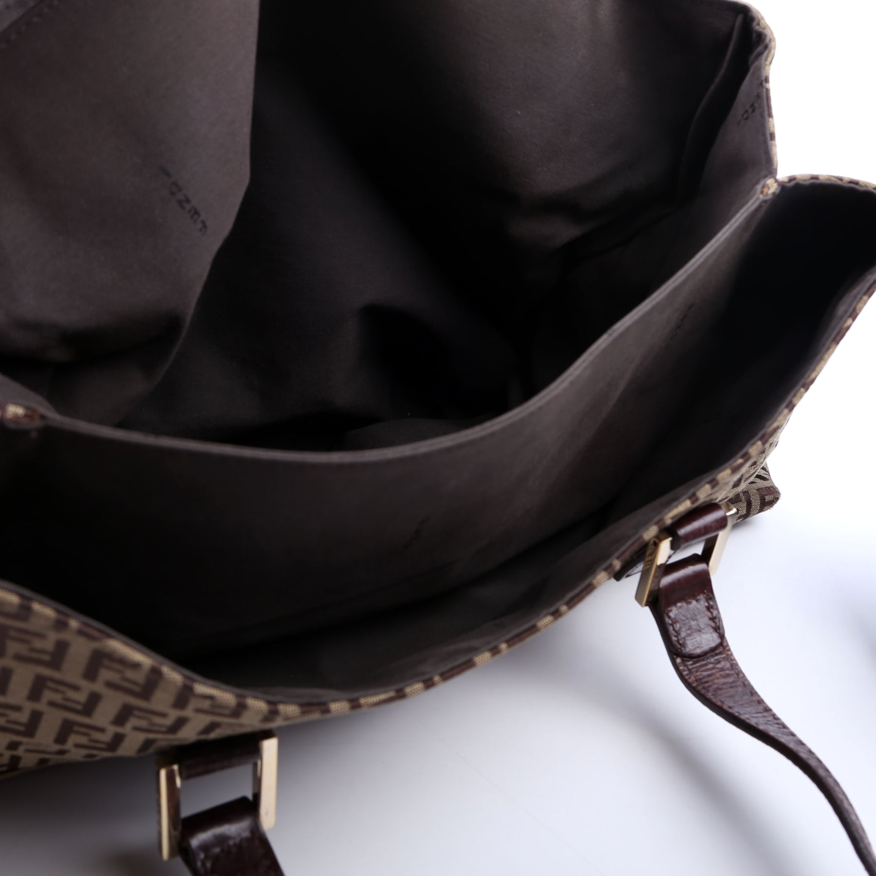 Interior: The interior has minor signs of wear. It features one zip closure pocket and three open sections.