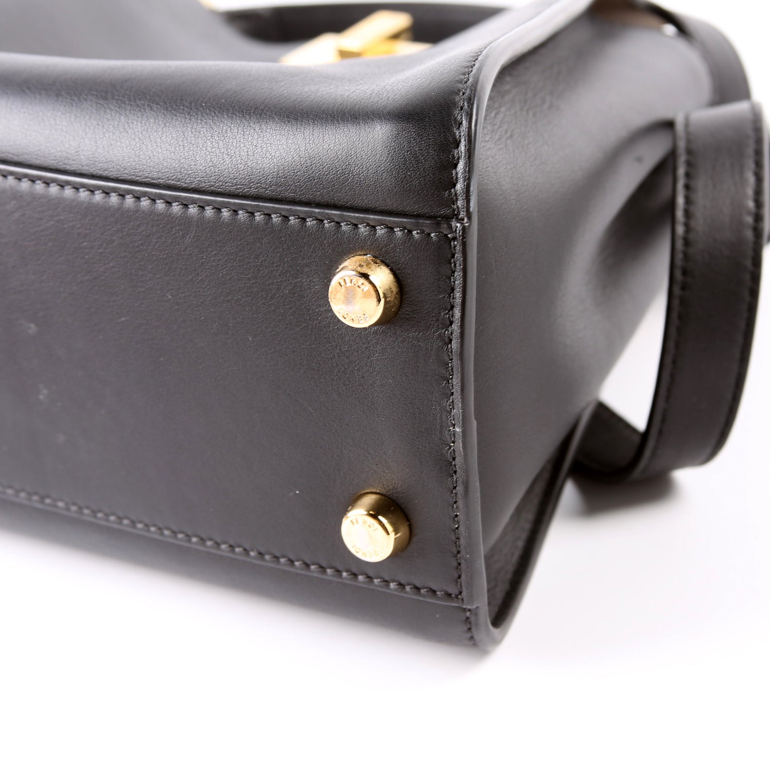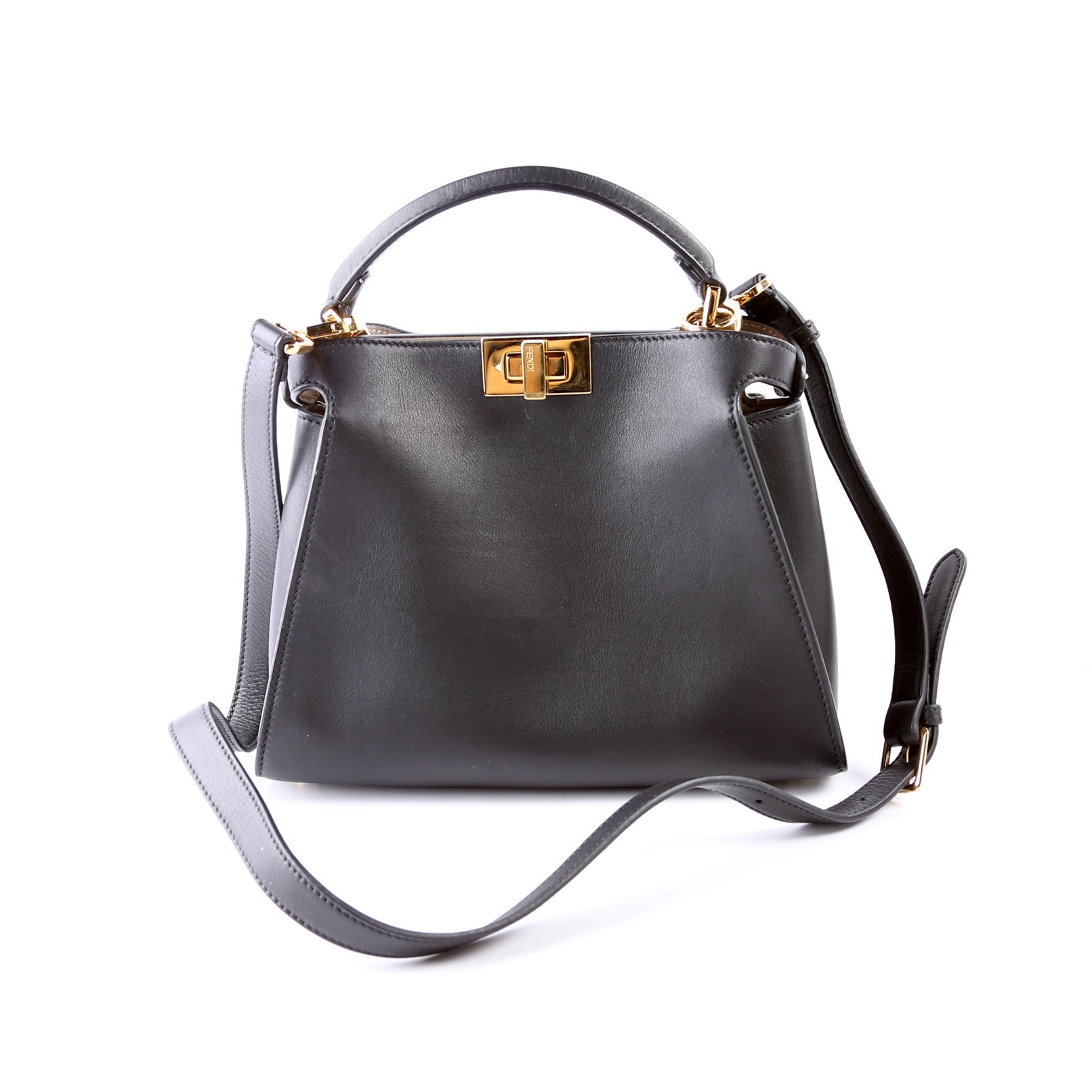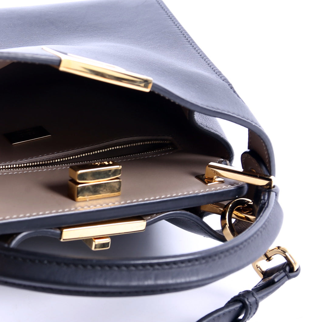 This pre-owned Fendi Peekaboo Essentially Medium is guaranteed 100% authentic. The exterior is in the classic Fendi Calfskin leather.