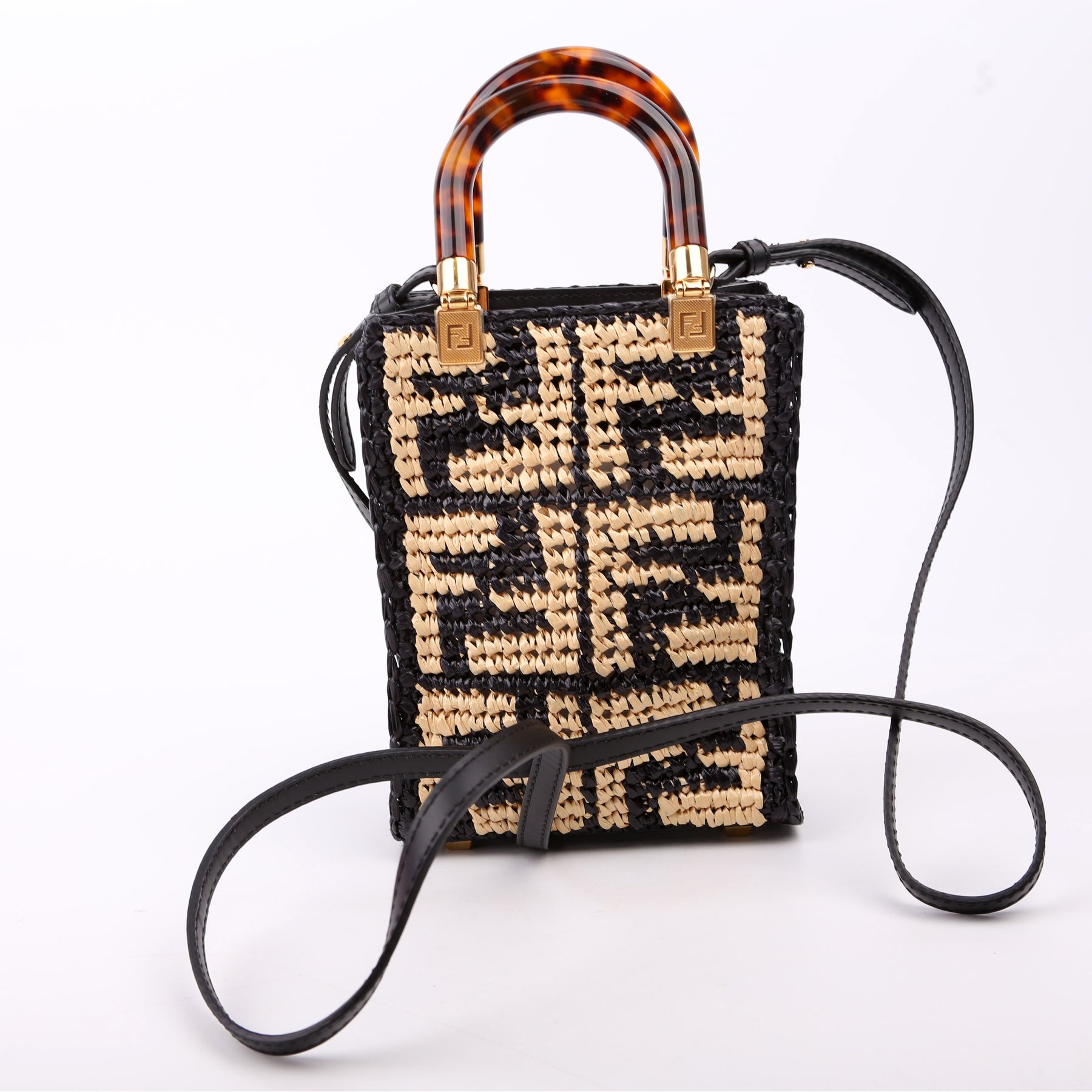 This pre-owned Fendi Raffia FF Mini Sunshine Shopper is guaranteed 100% authentic.