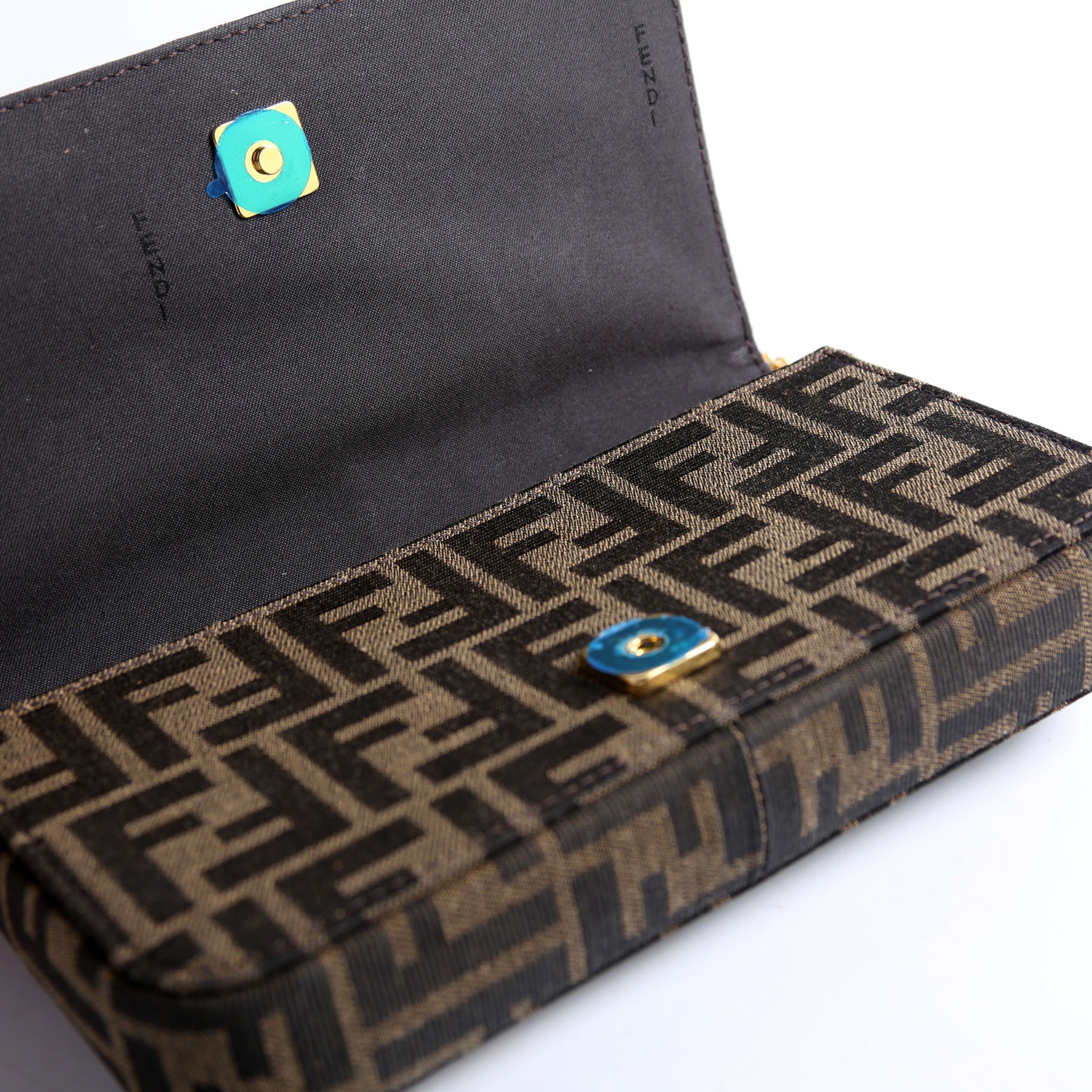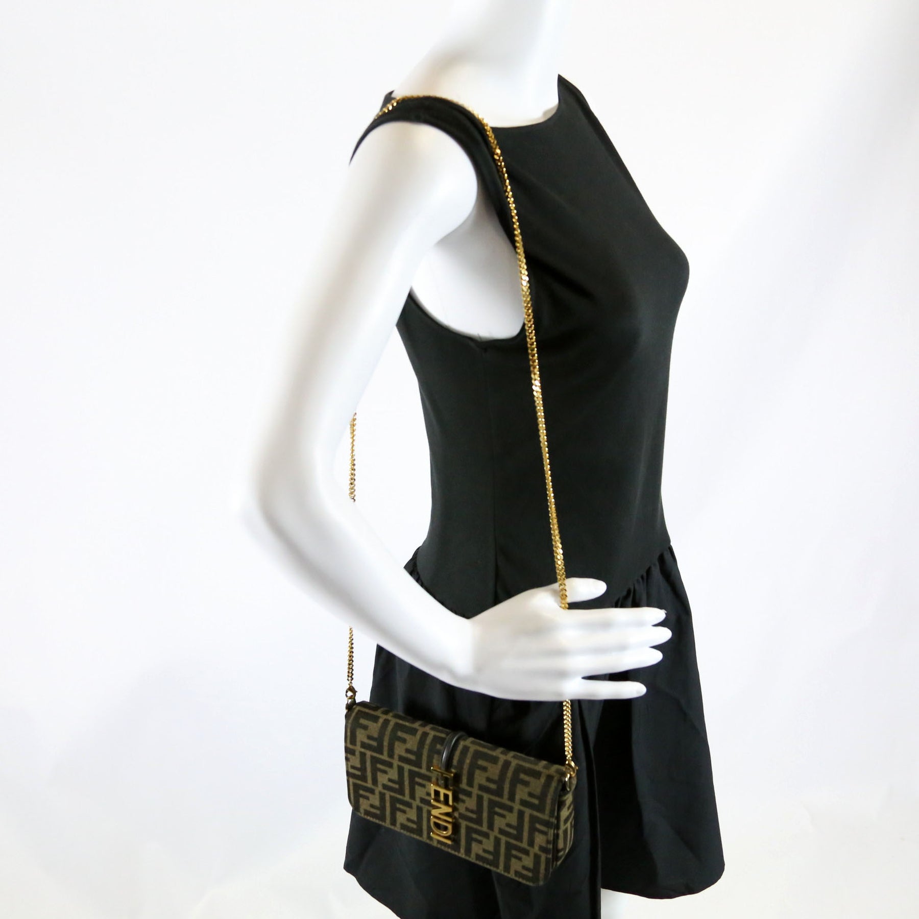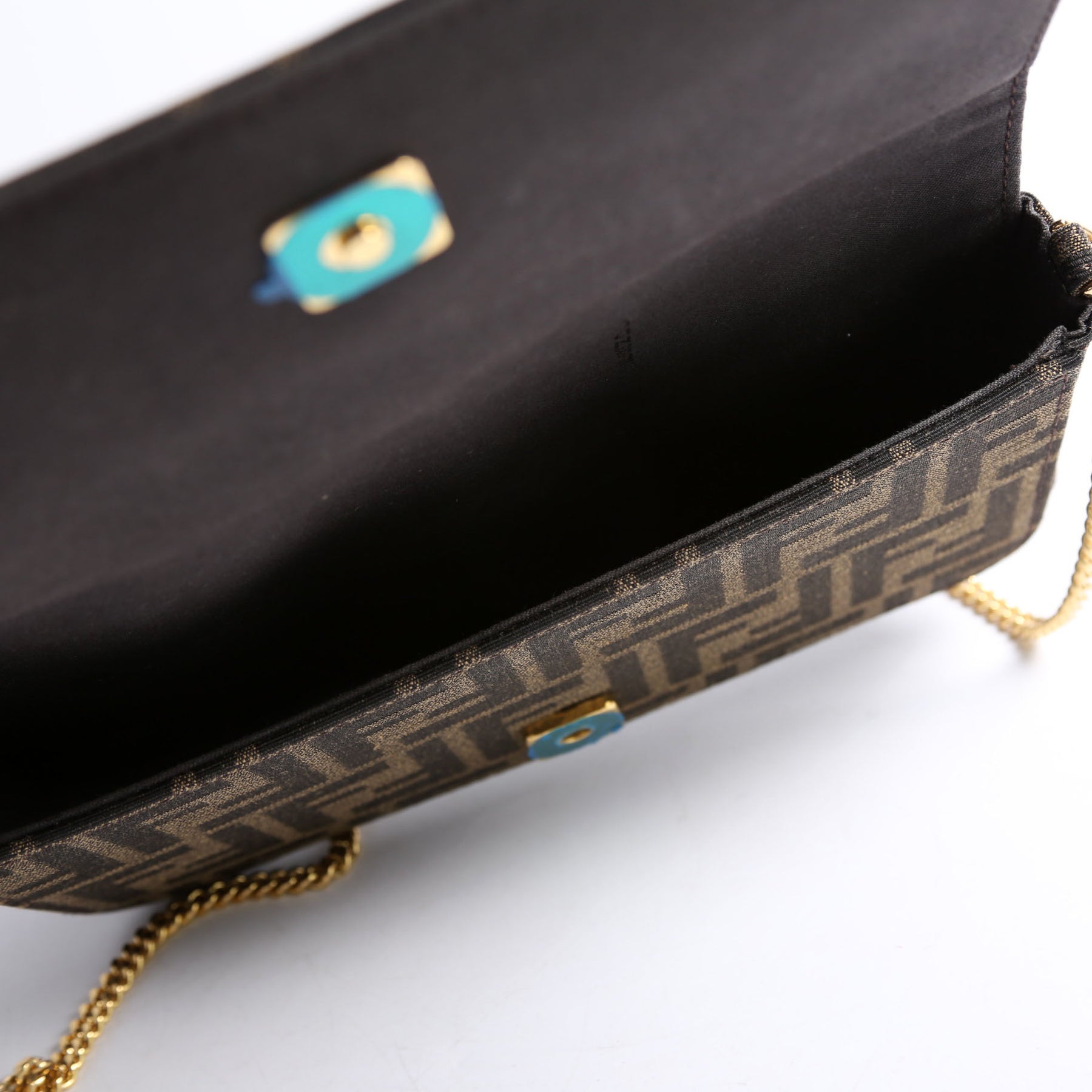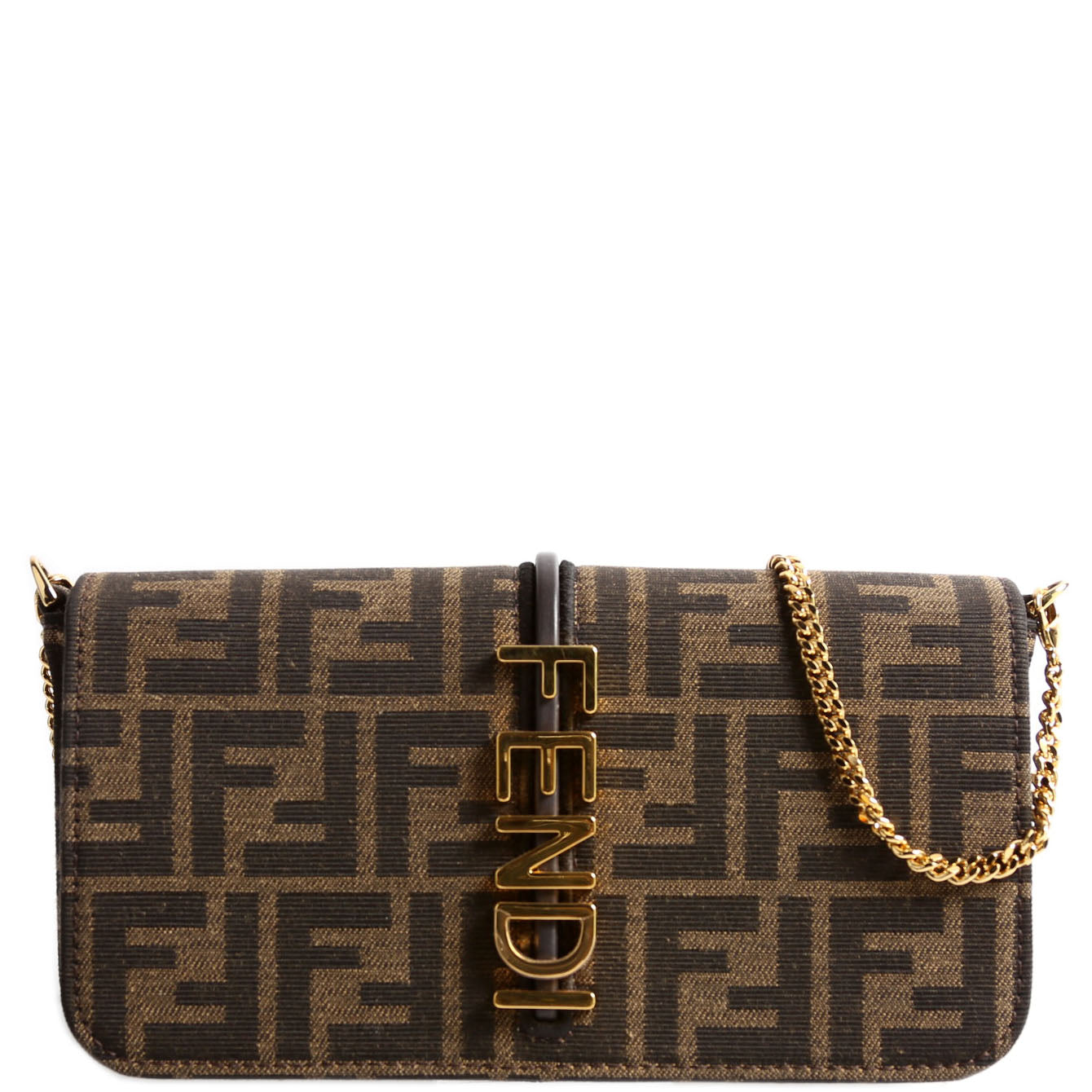 This pre-owned Fendi FF Jacquard Fendigraphy Wallet On Chain is guaranteed 100% authentic.