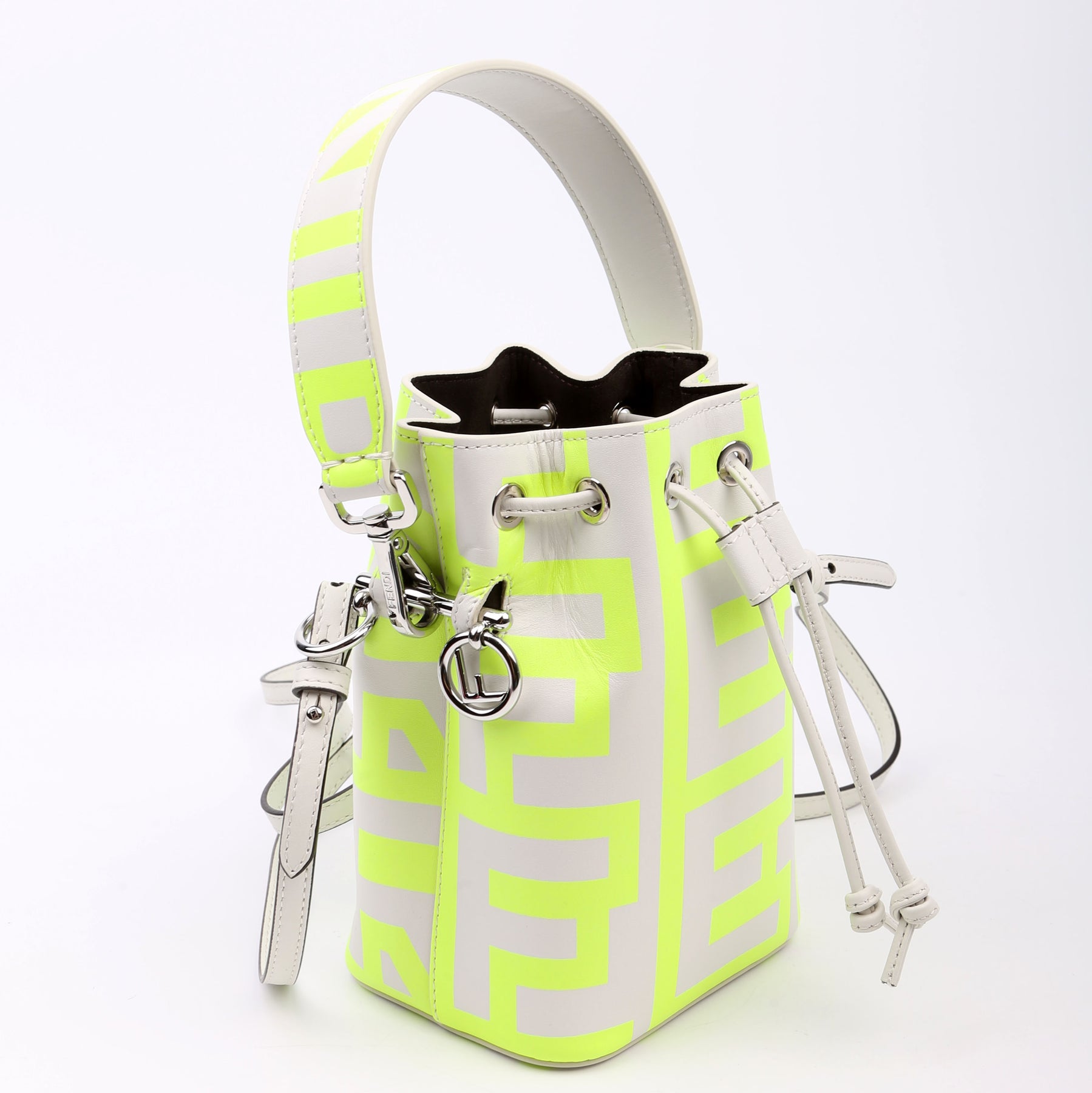 This pre-owned Fendi x Mar Jacobs Mon Tresor Mini Bucket  is guaranteed 100% authentic. The exterior is in the classic Fendi Canvas/Leather.