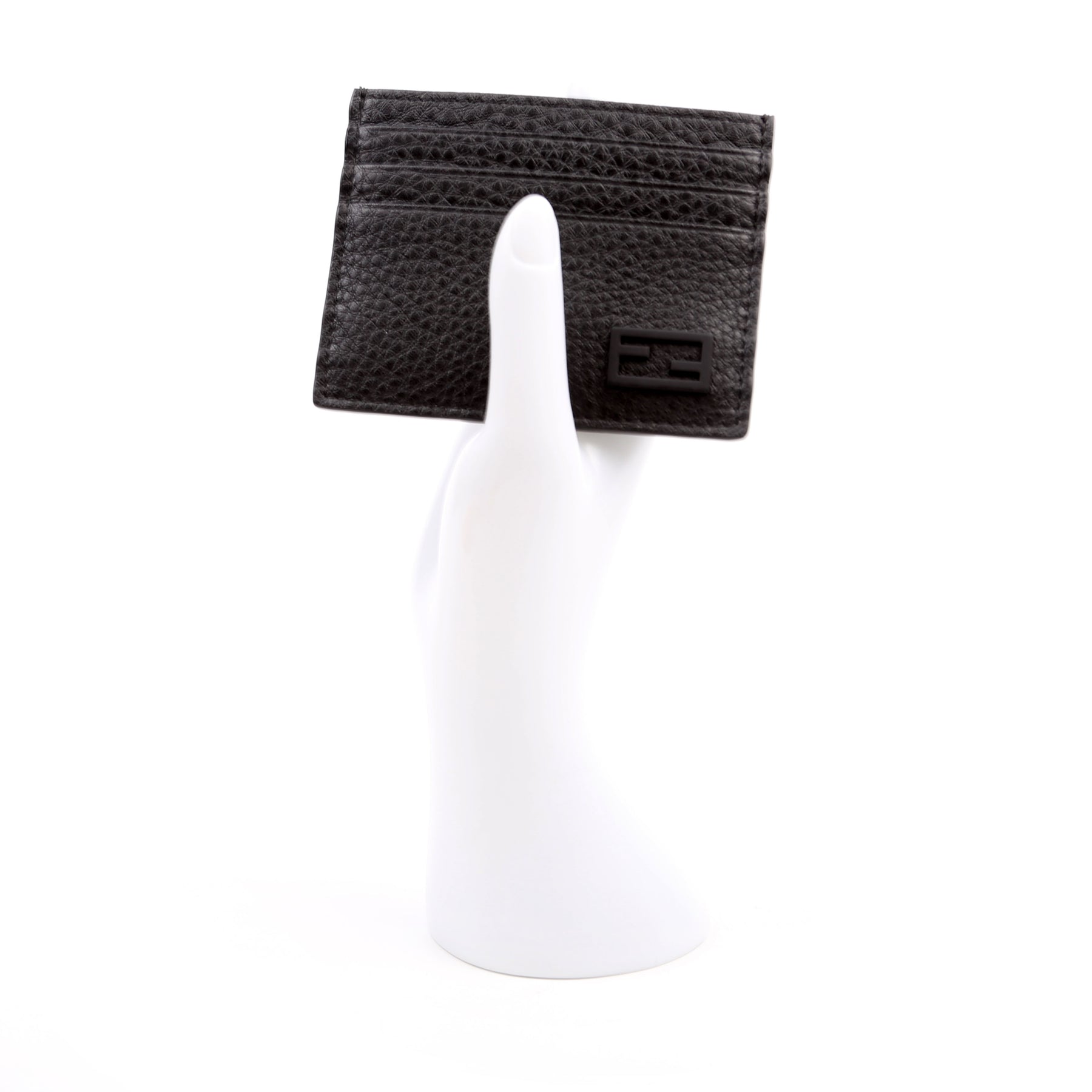 FF Grained Leather Baguette Card Holder Black