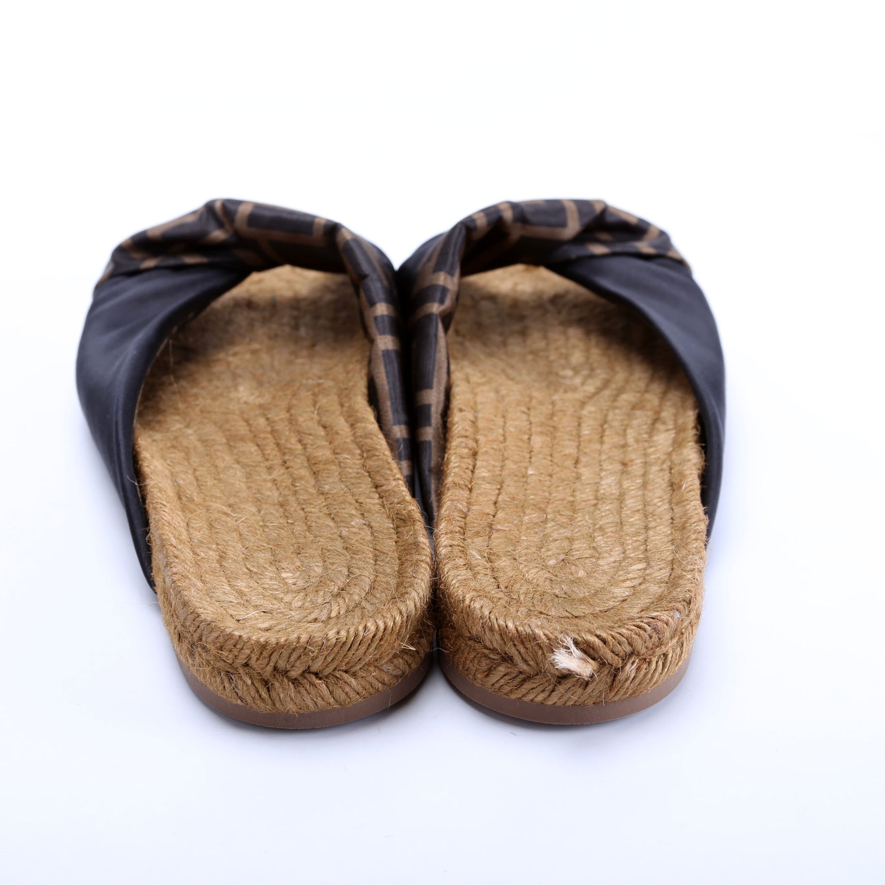 Satin FF Twist Espadrille Slide Size 37 Brown/Black