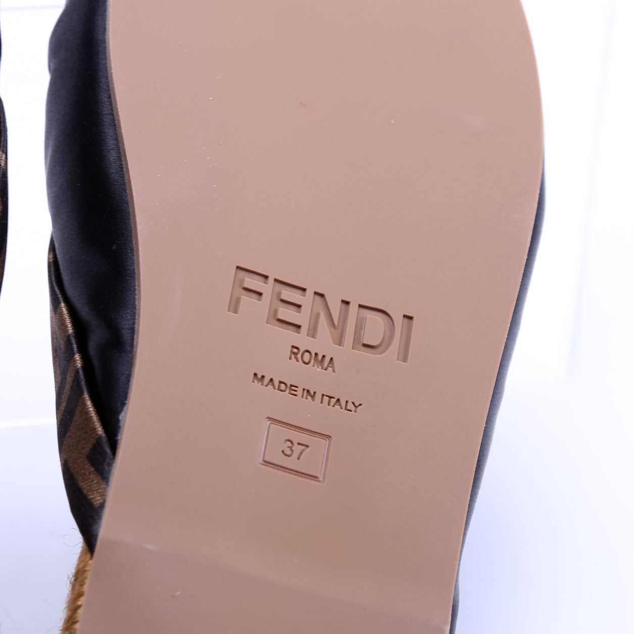 These pre-owned Fendi Satin FF Twist Espadrille Slides are guaranteed 100% authentic.