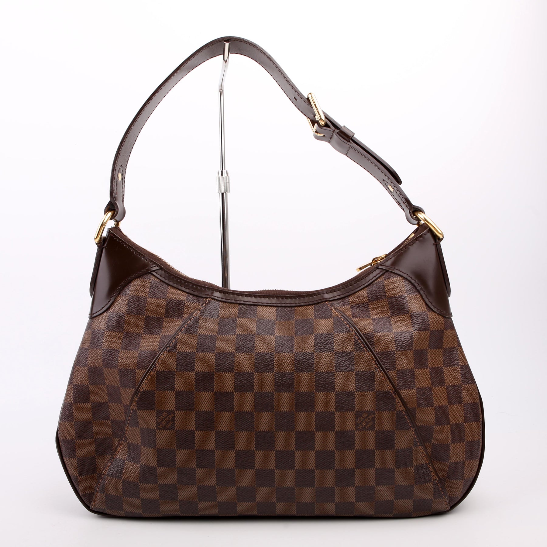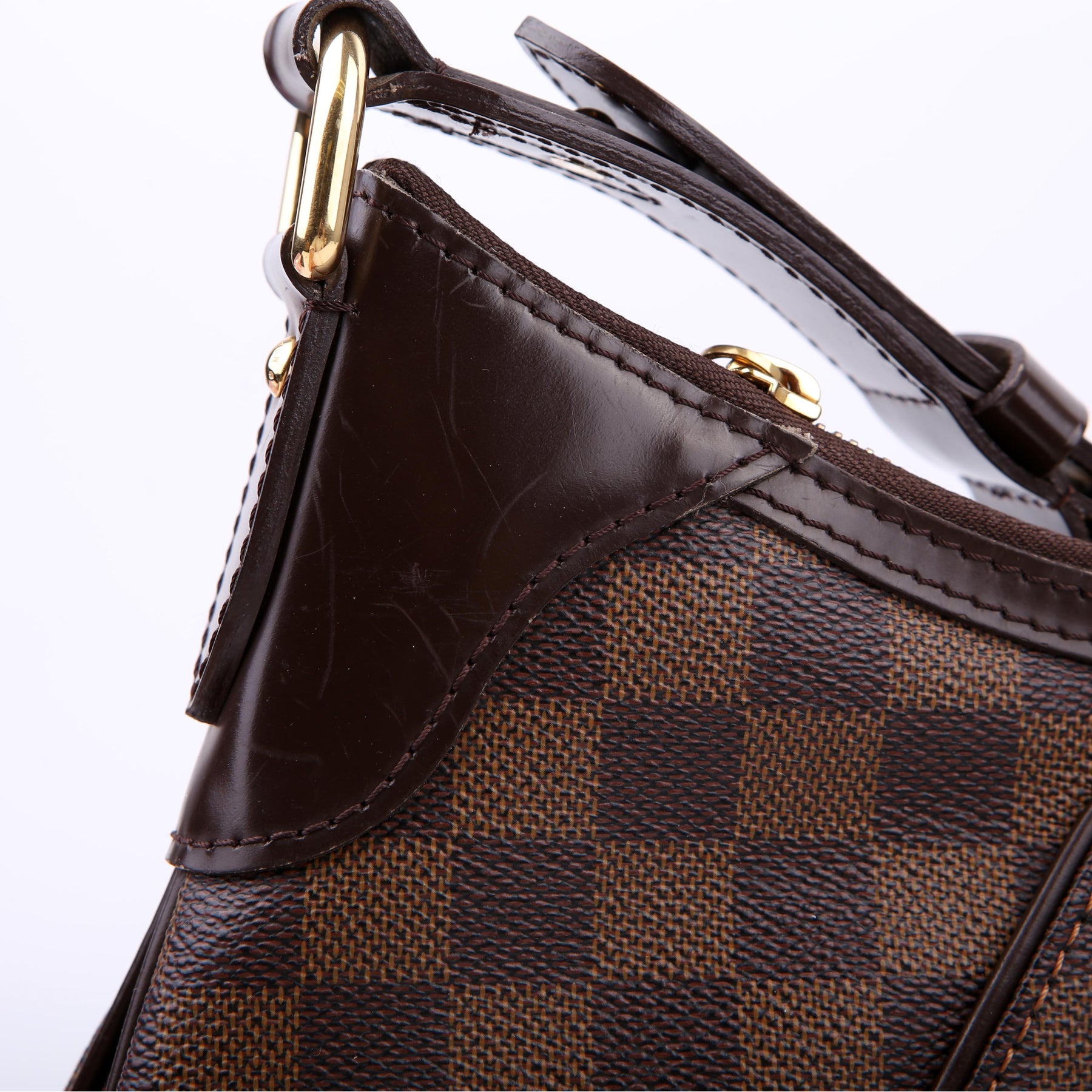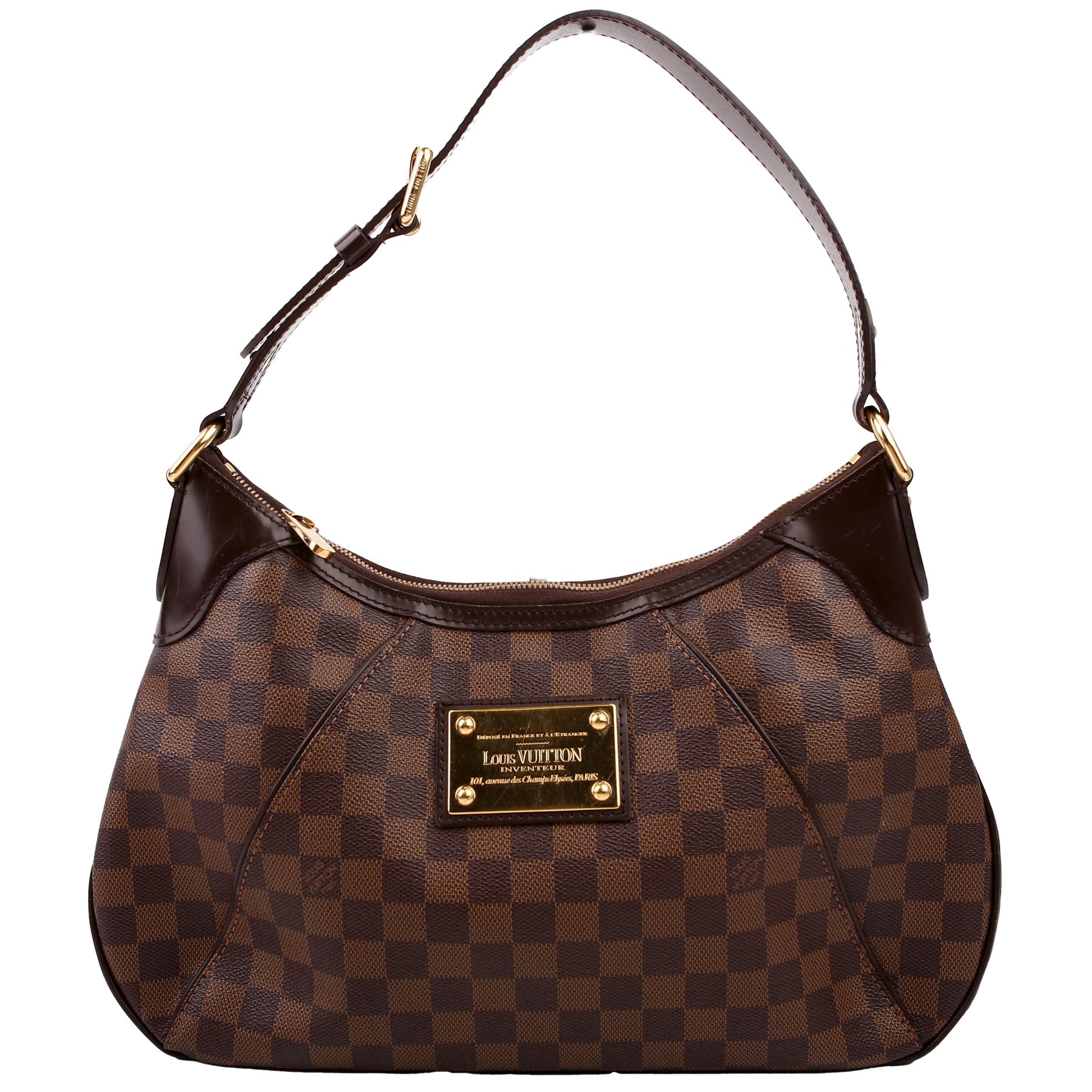 This pre-owned Louis Vuitton Thames GM is guaranteed 100% authentic. The exterior is in the classic Louis Vuitton Damier Ebene coated canvas.