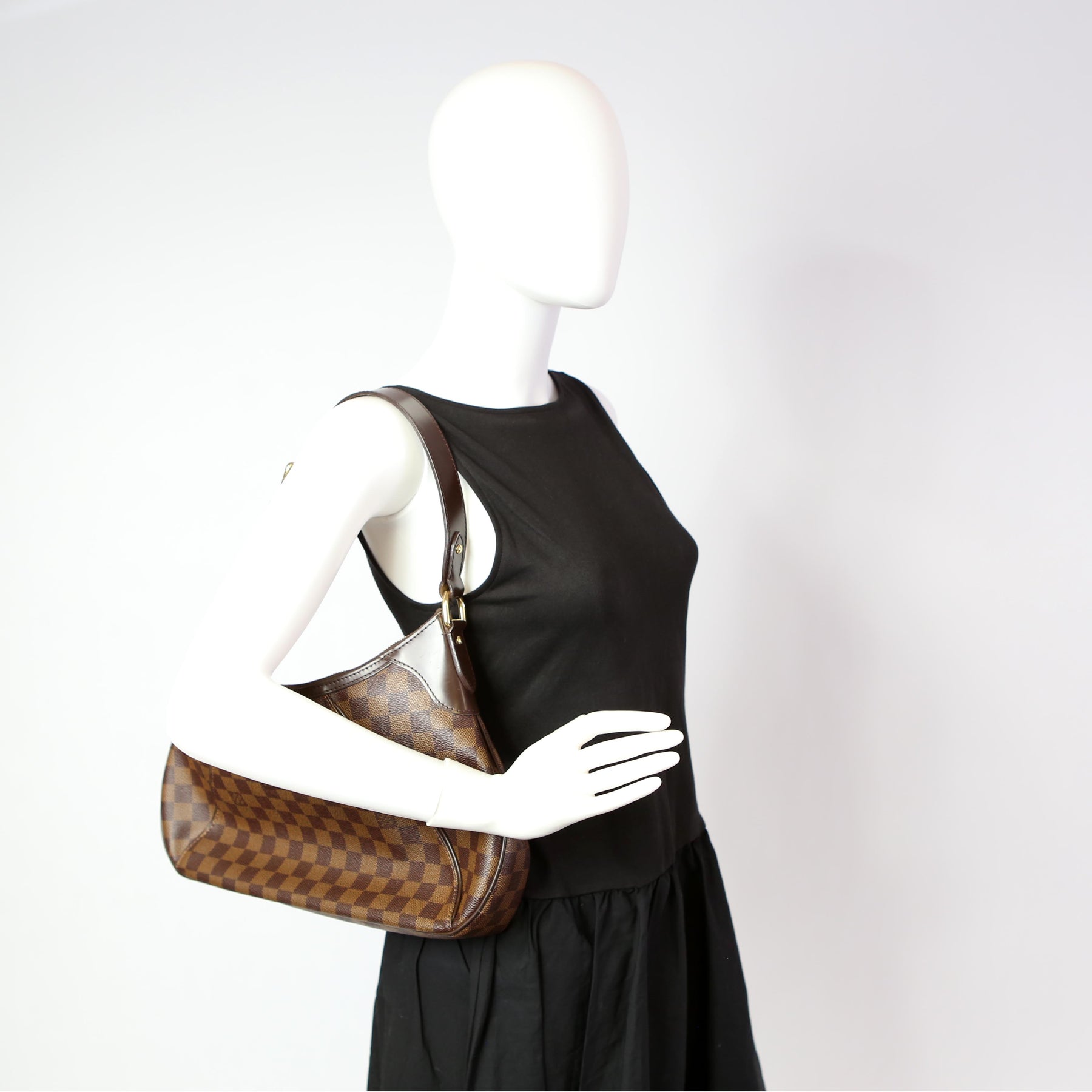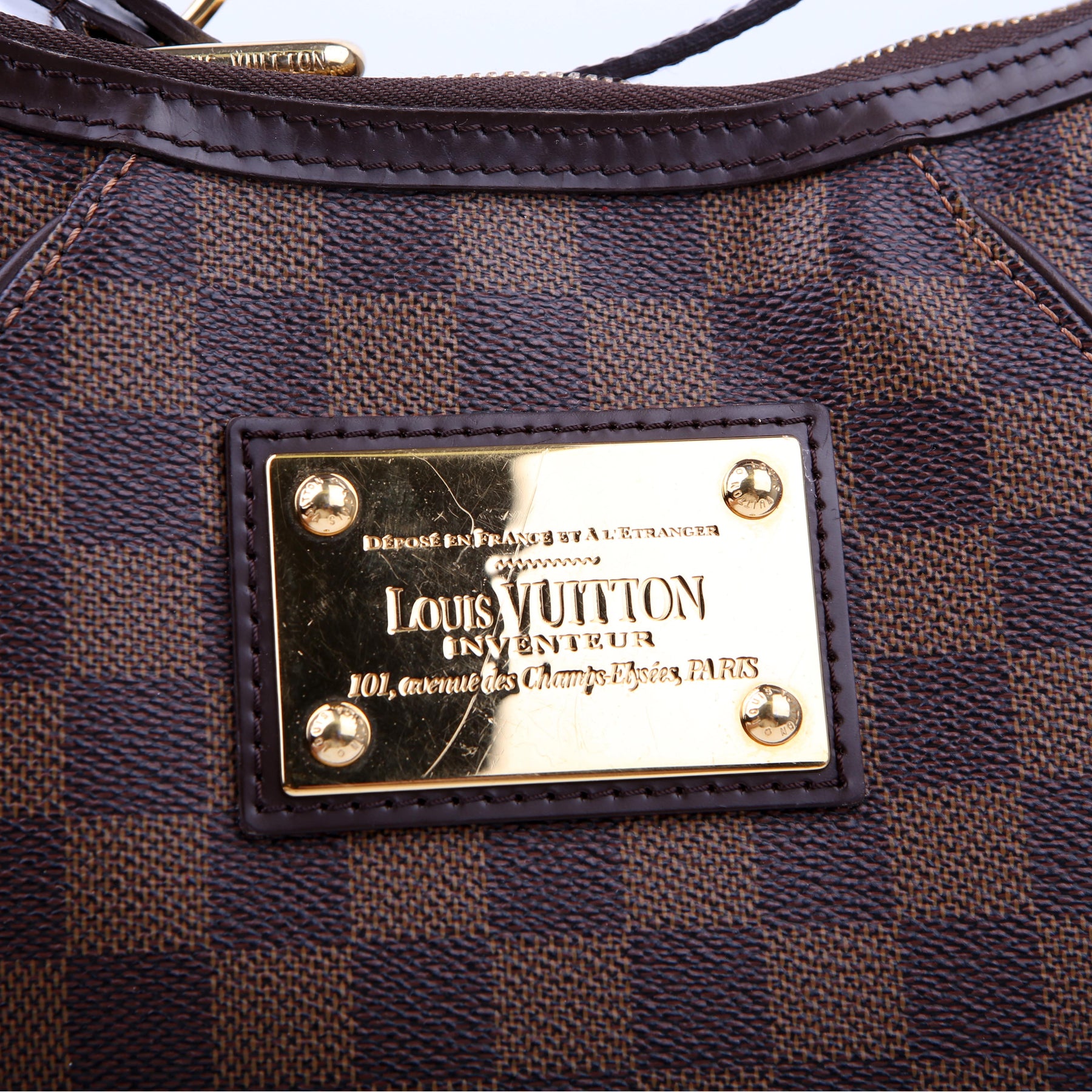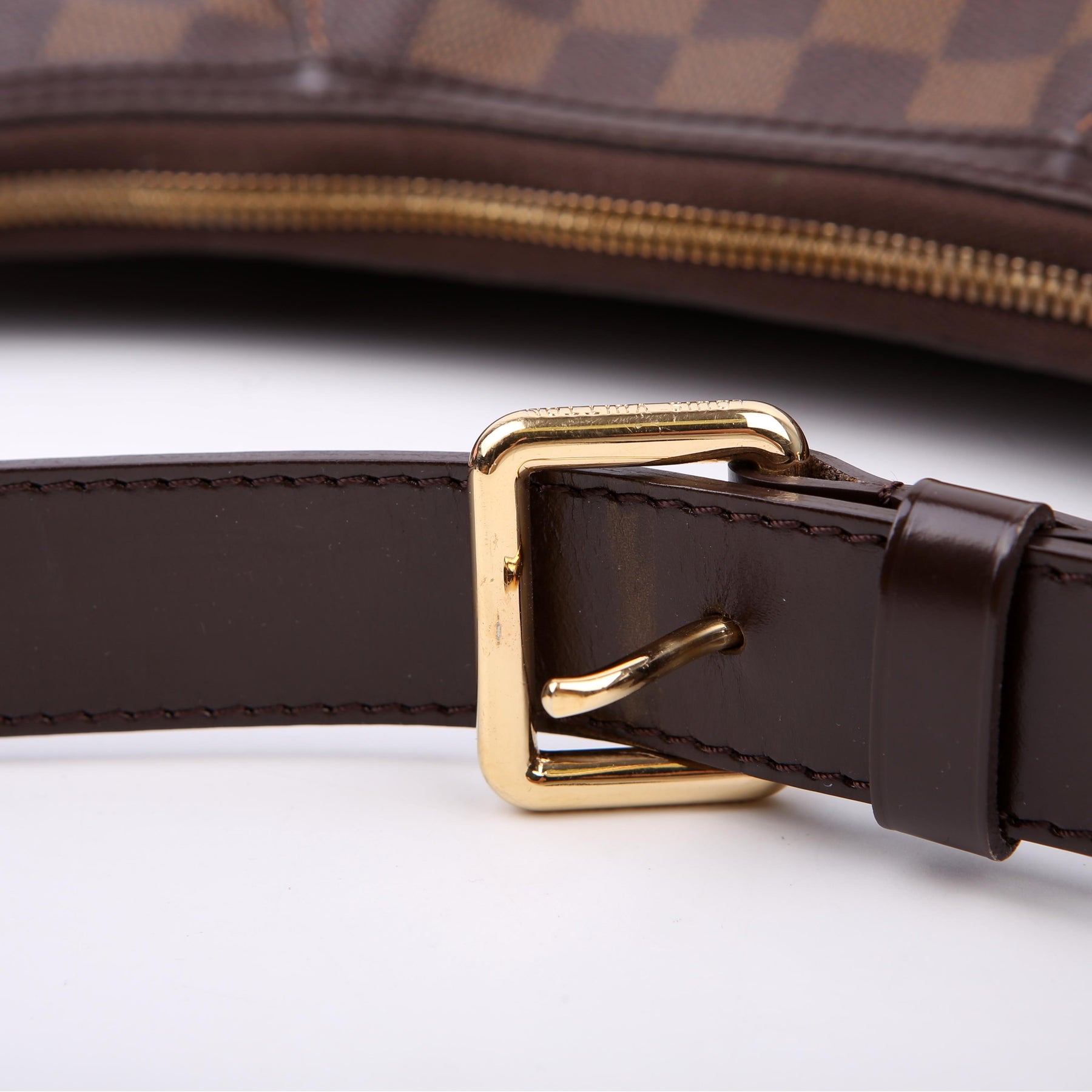 This pre-owned Louis Vuitton Thames GM is guaranteed 100% authentic. The exterior is in the classic Louis Vuitton Damier Ebene coated canvas.