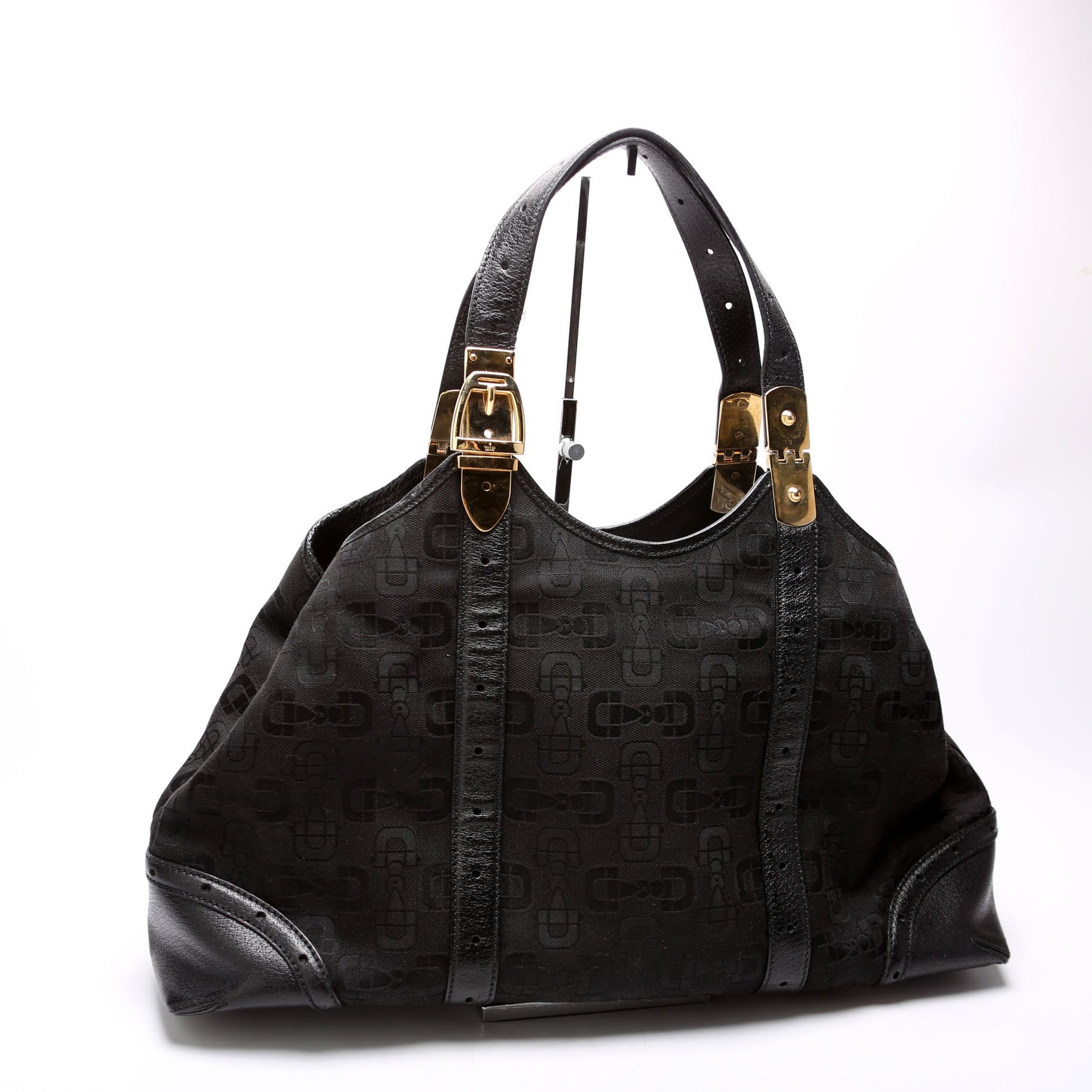 This pre-owned Gucci Horsebit Canvas Creole Hobo is guaranteed 100% authentic. The exterior is in the classic Gucci Horsebit canvas.