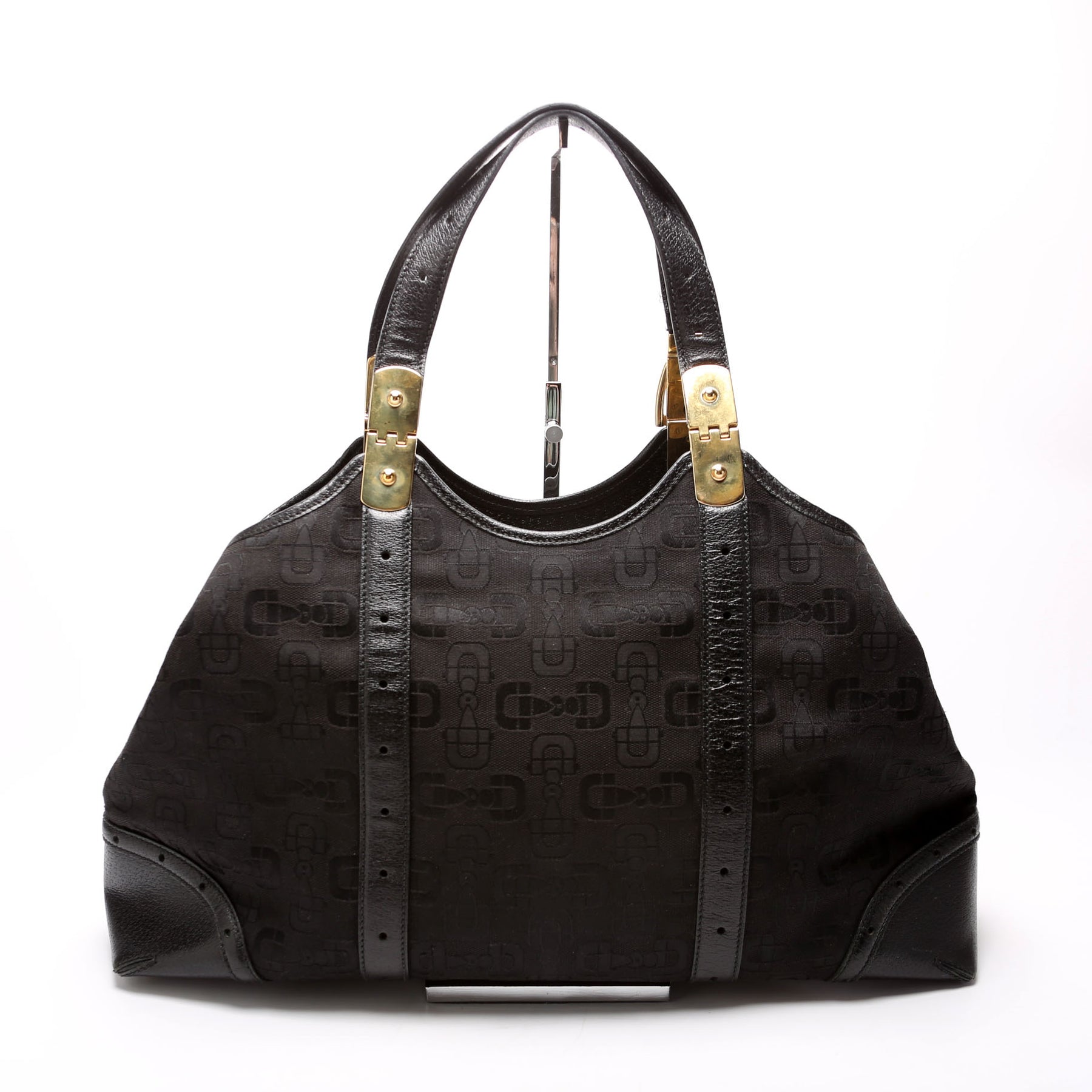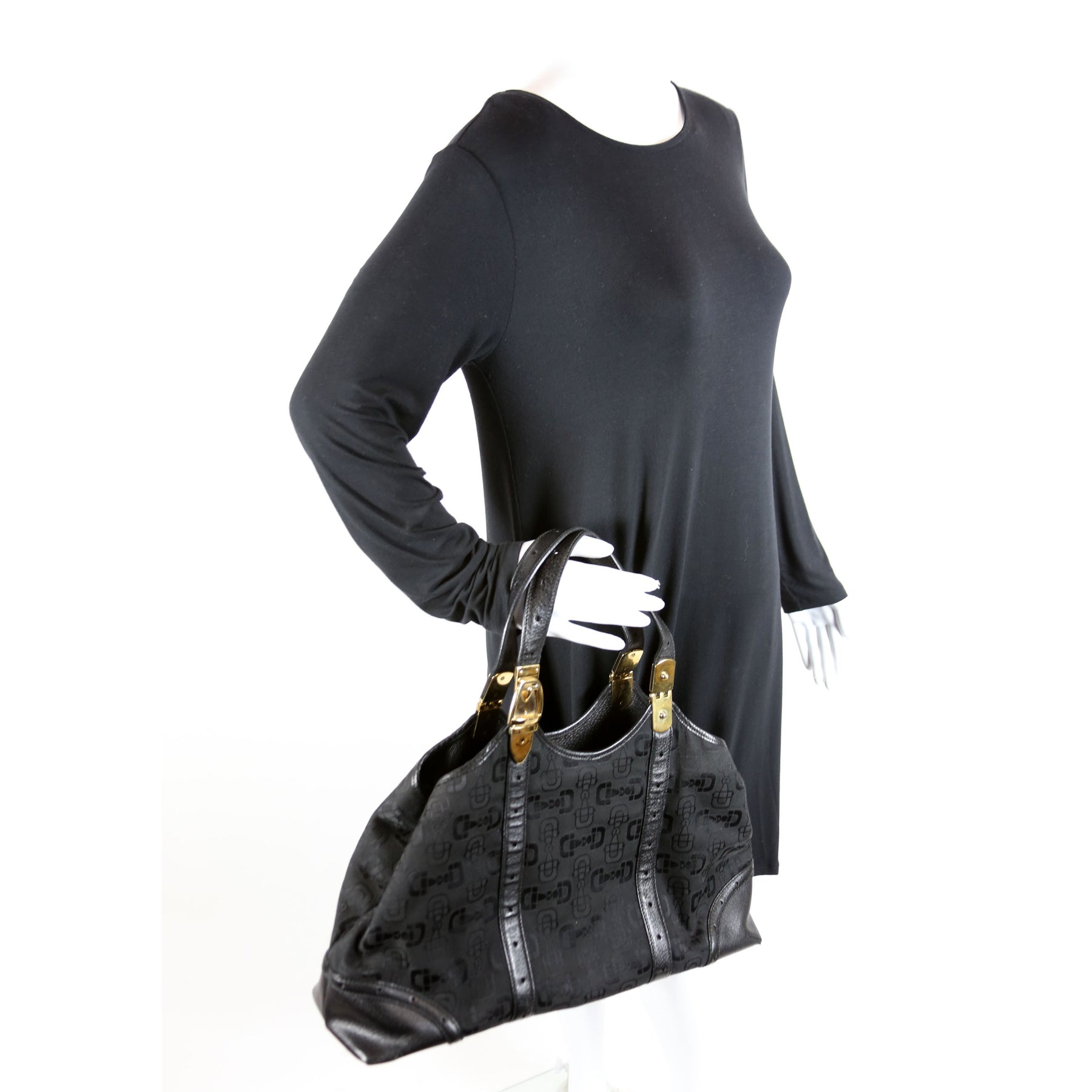 145769 Horsebit Canvas/Leather Shoulder Bag Black