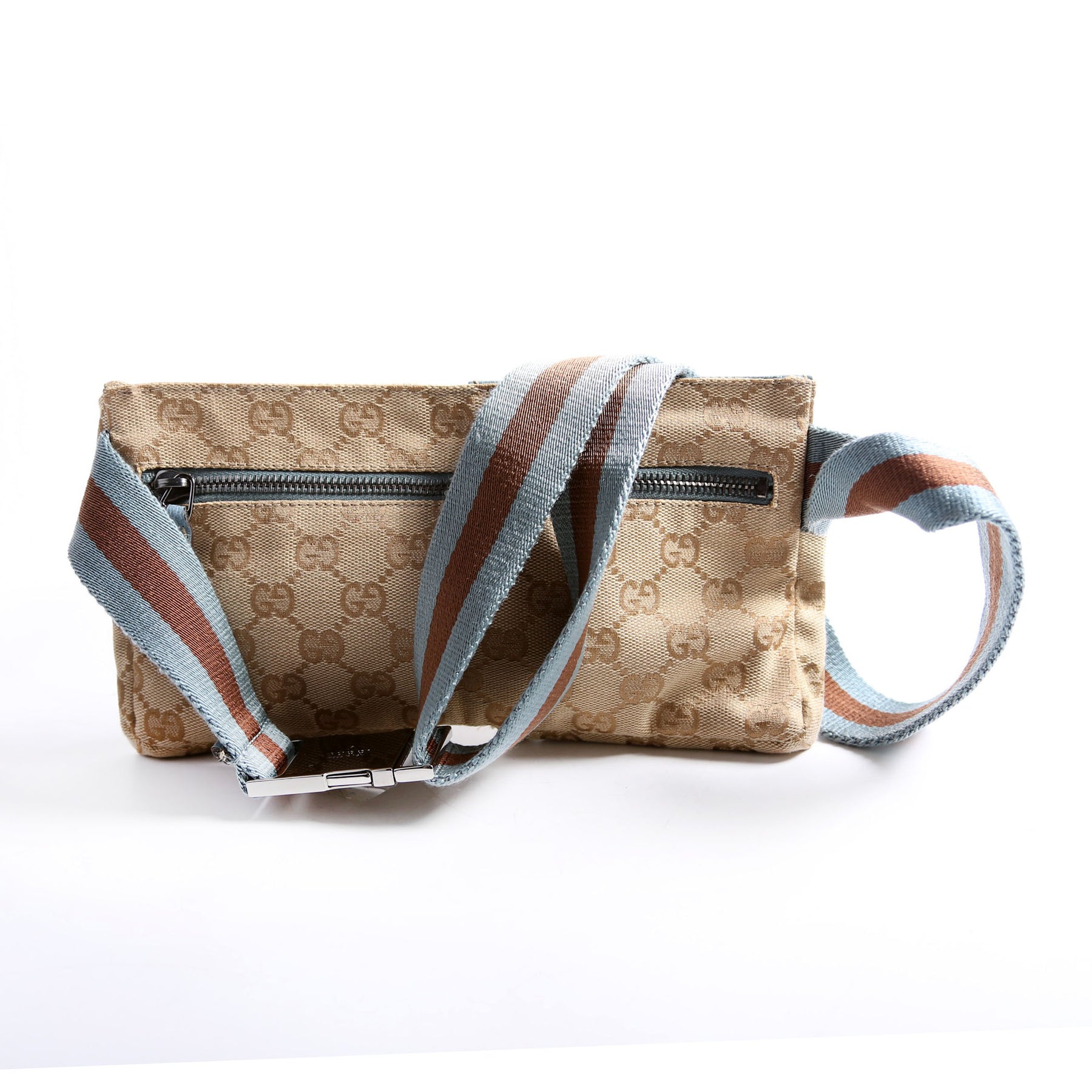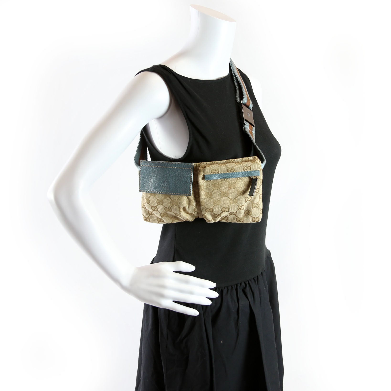 This pre-owned Gucci Mini Waist Bag is guaranteed 100% authentic. The exterior is in the classic Gucci GG Canvas