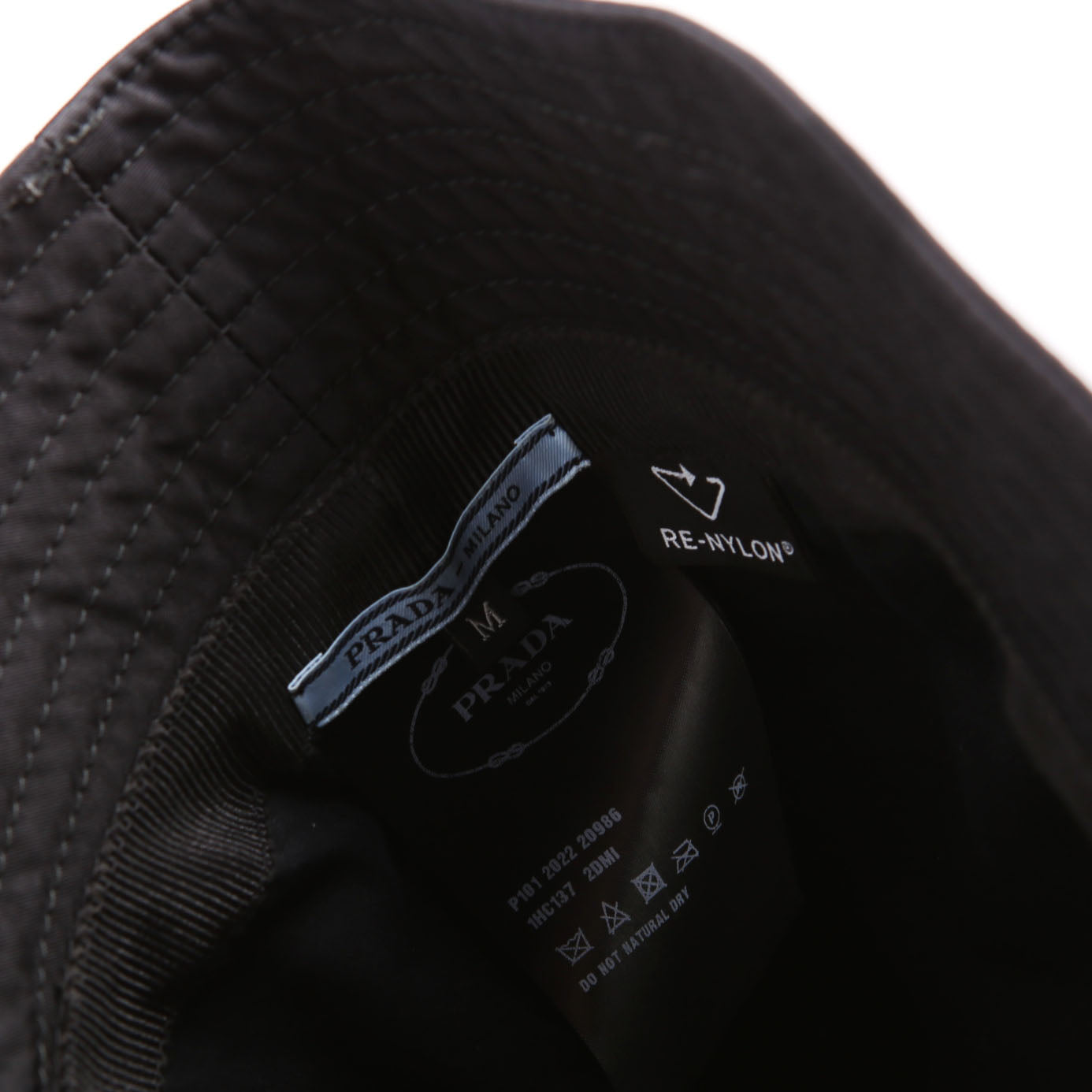 This pre-owned Prada Re-Nylon Triangle Logo Bucket Hat is guaranteed 100% authentic.