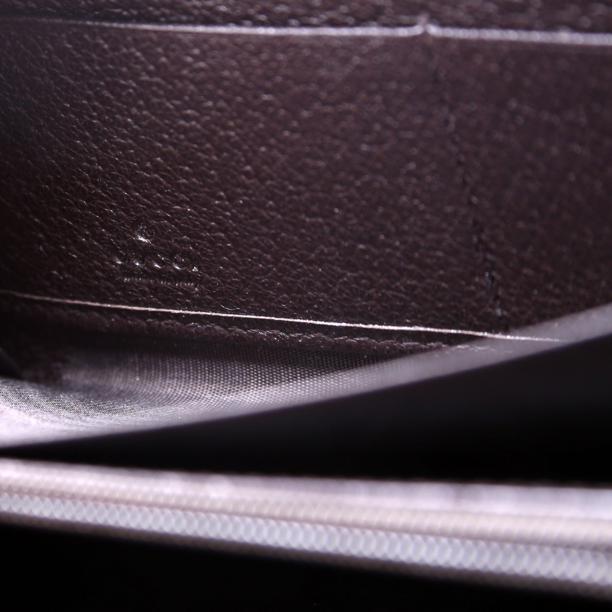 Interior: The interior is clean and free of rips or tears. The interior features three bill slots, twelve card slots, and one zip closure coin pouch.