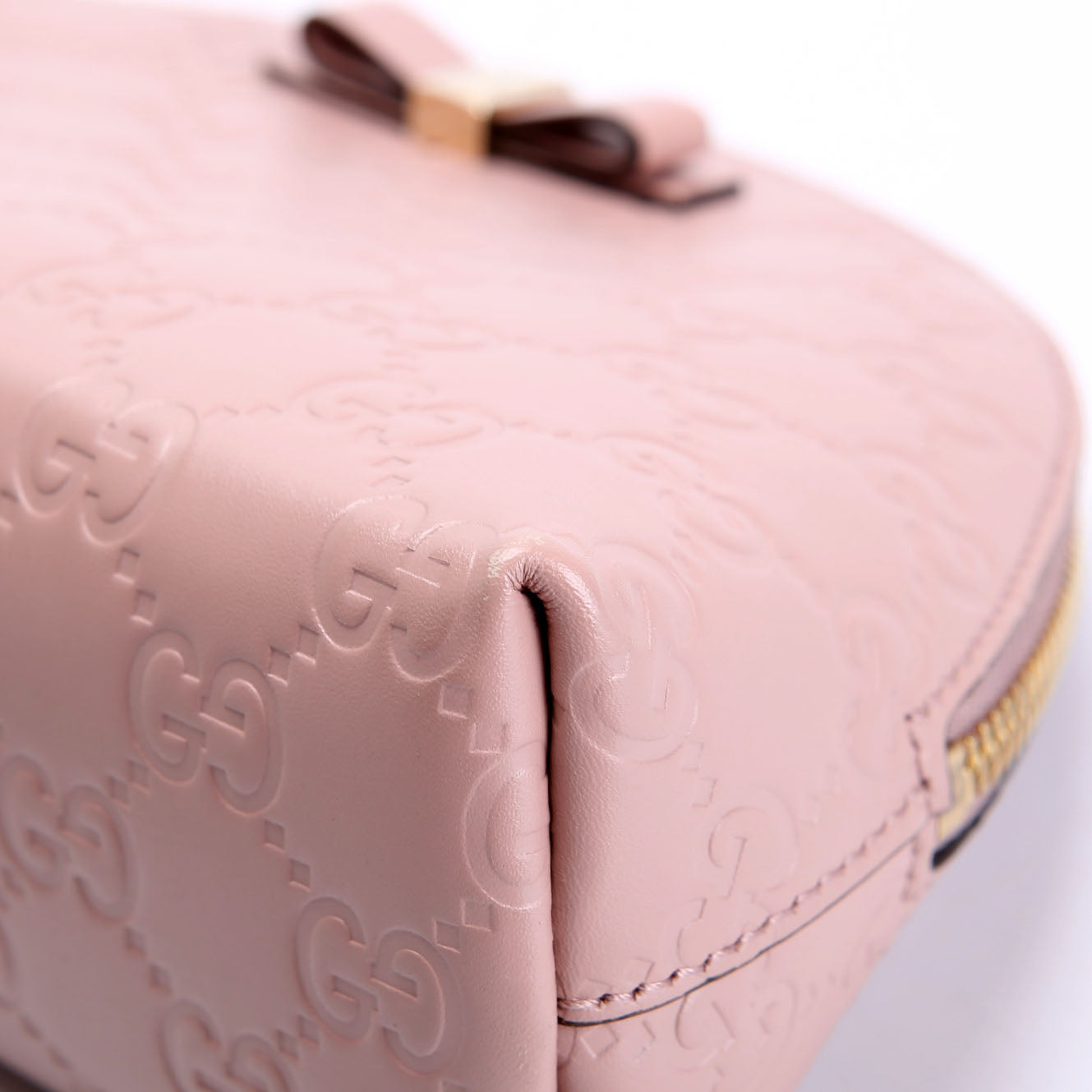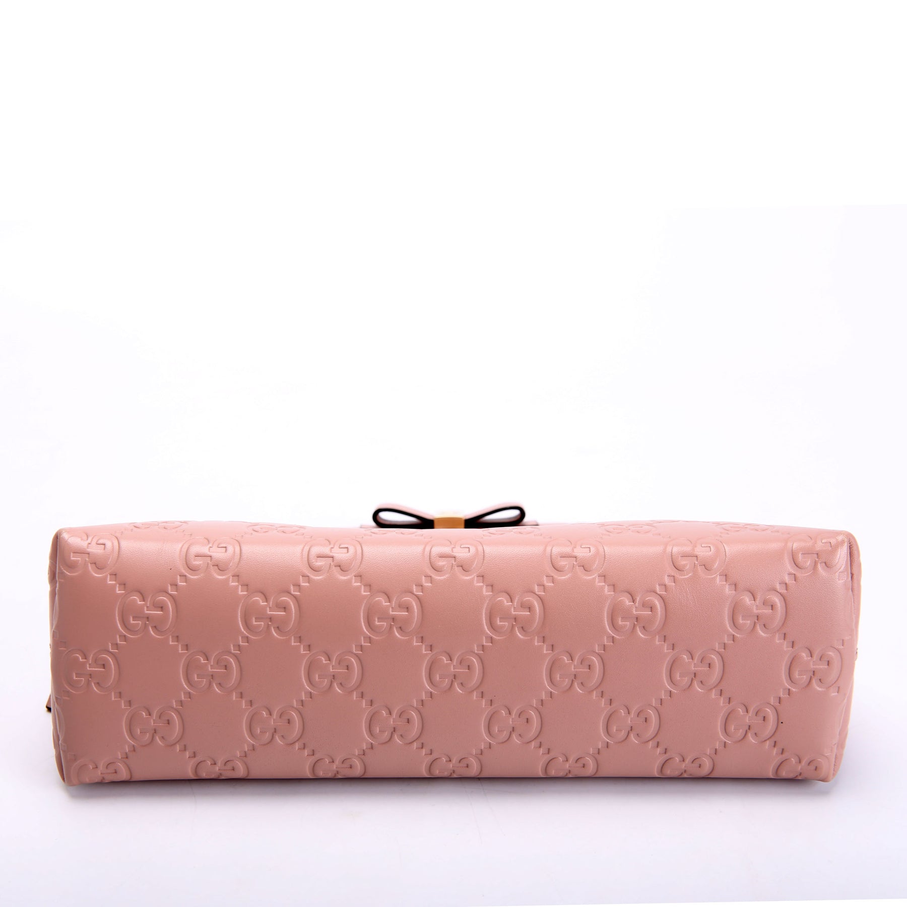 This pre-owned Gucci Cosmetic Pouch is guaranteed 100% authentic. The exterior is in the classic Gucci Guccissima leather.