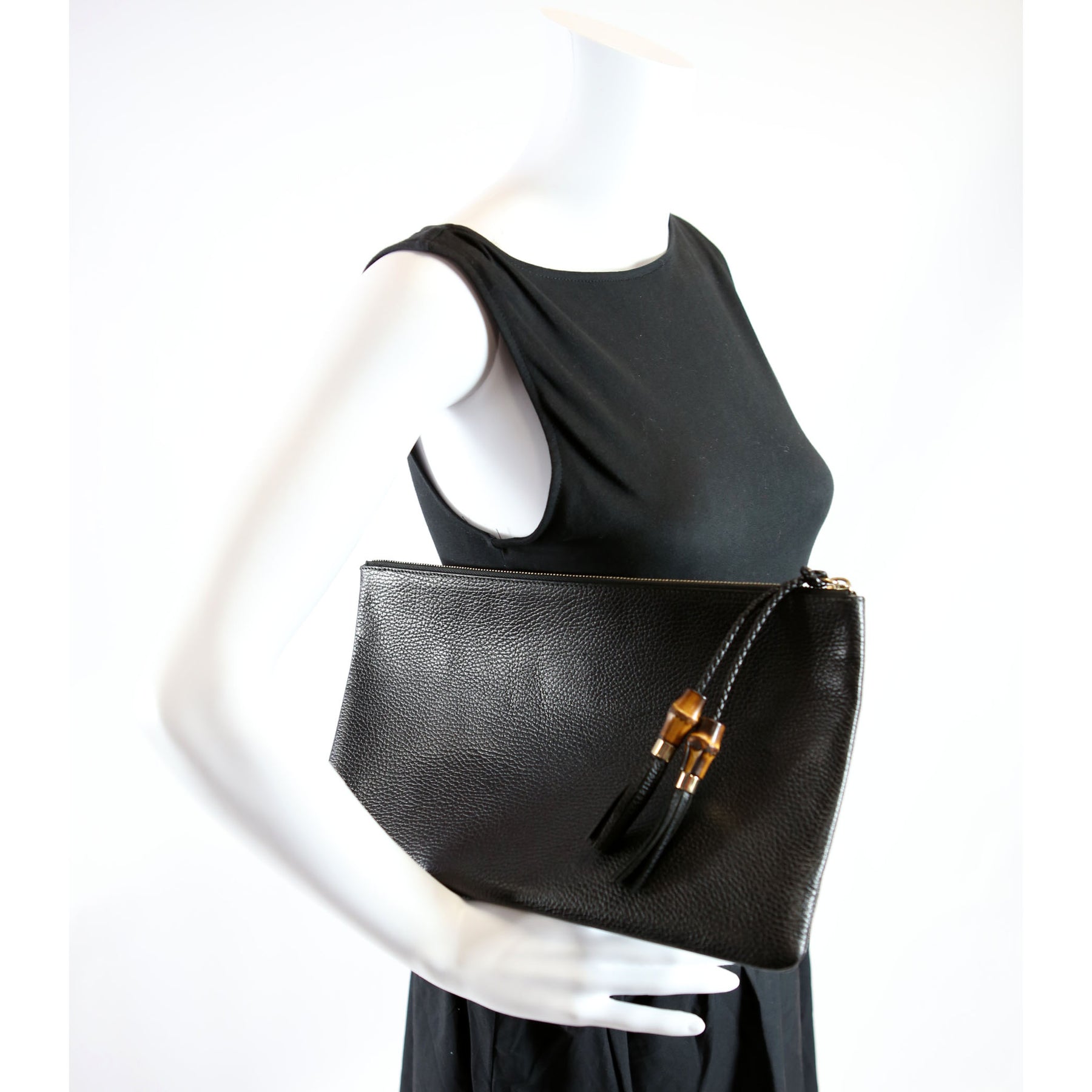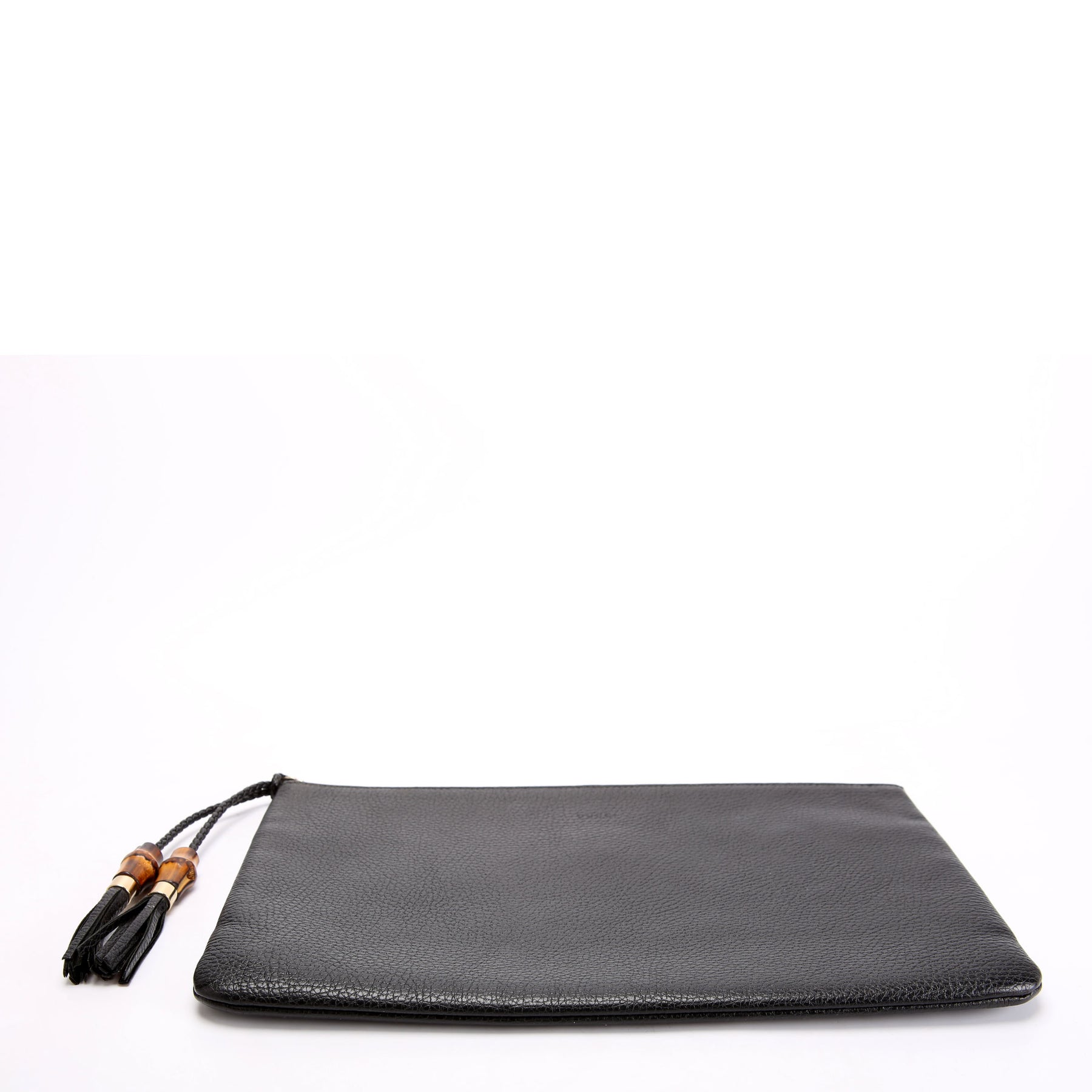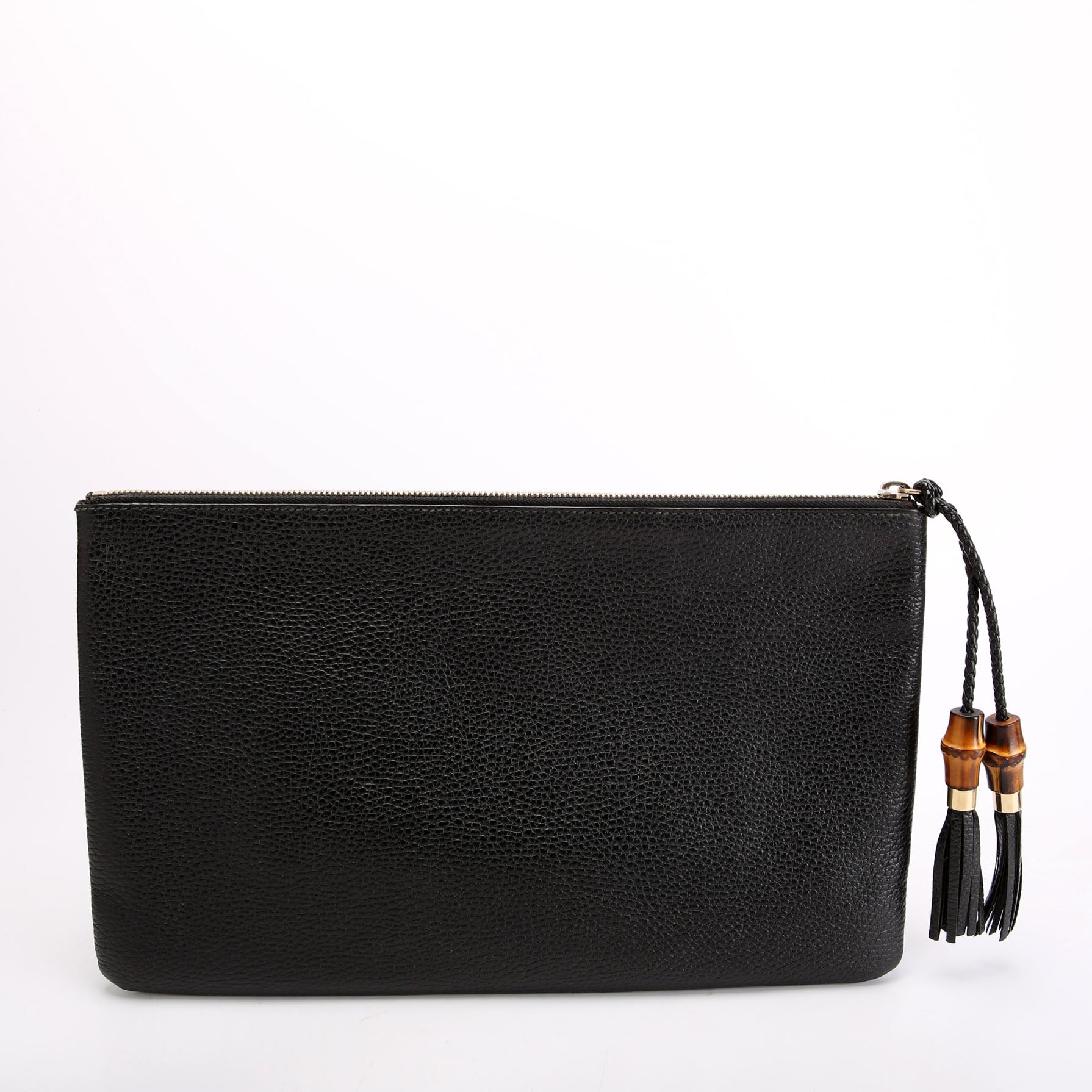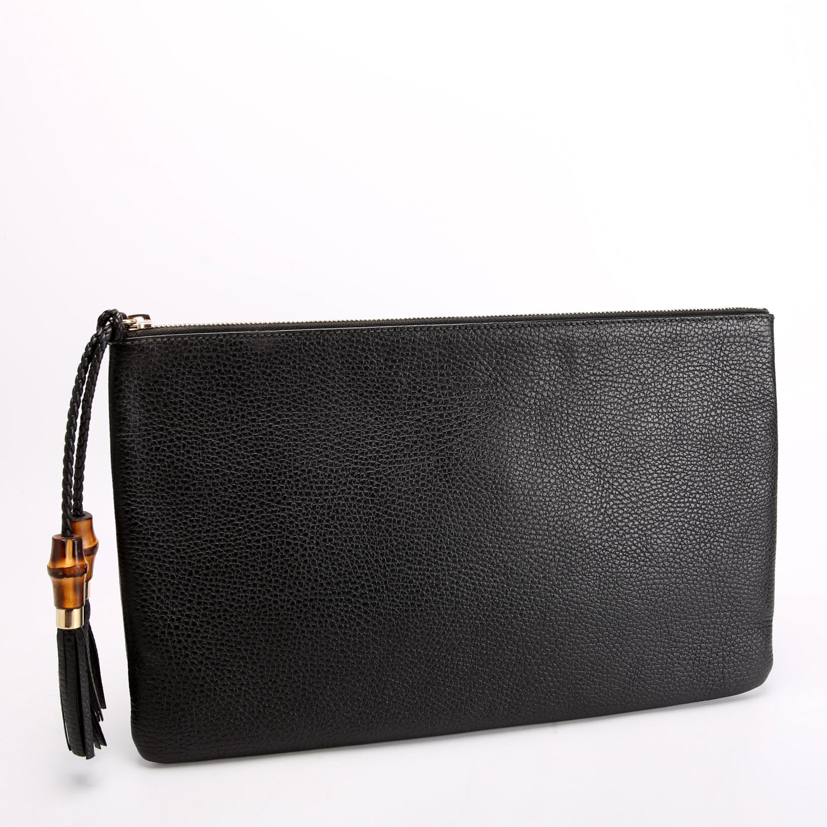 This pre-owned Gucci Bamboo Leather Clutch is guaranteed 100% authentic.