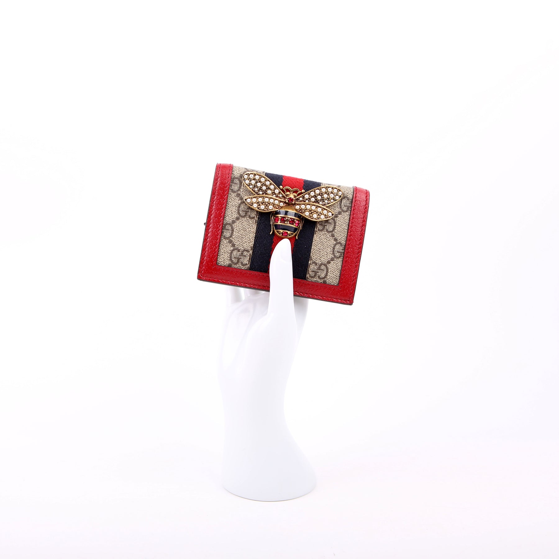 This pre-owned Gucci Queen Margaret Card Case is guaranteed 100% authentic.