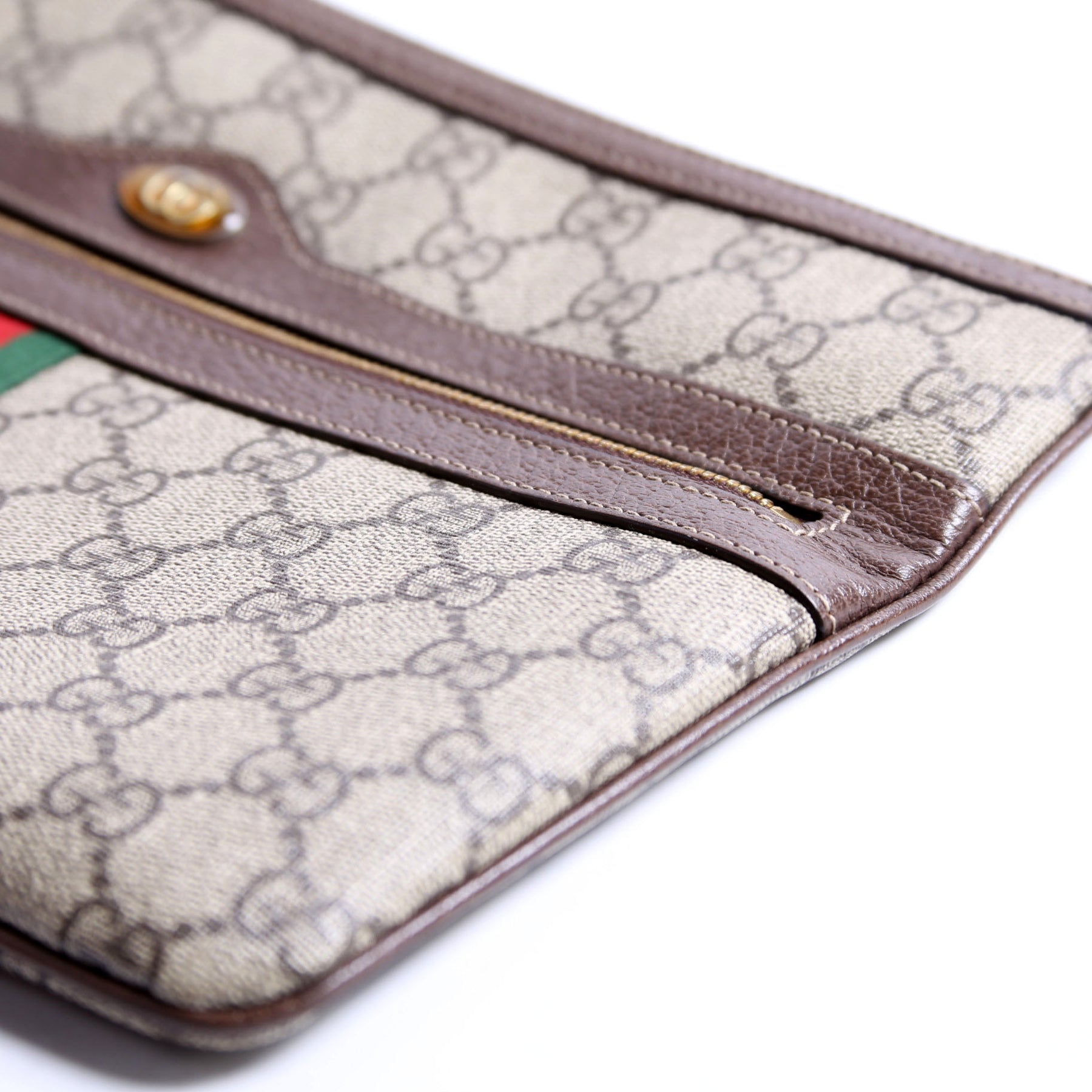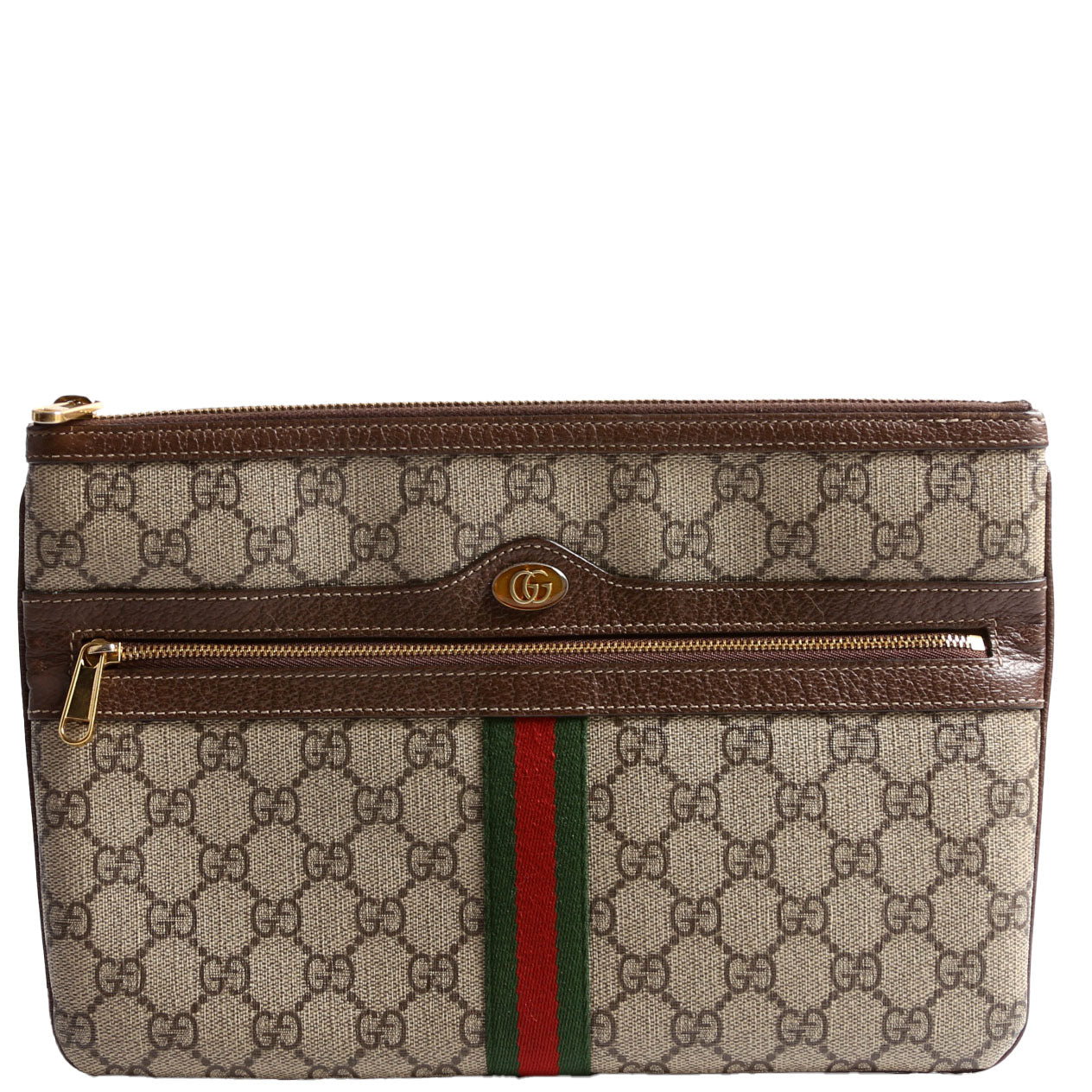 This pre-owned Gucci GG Supreme Ophidia Pouch is guaranteed 100% authentic. The exterior is in the classic Gucci GG Supreme coated canvas.