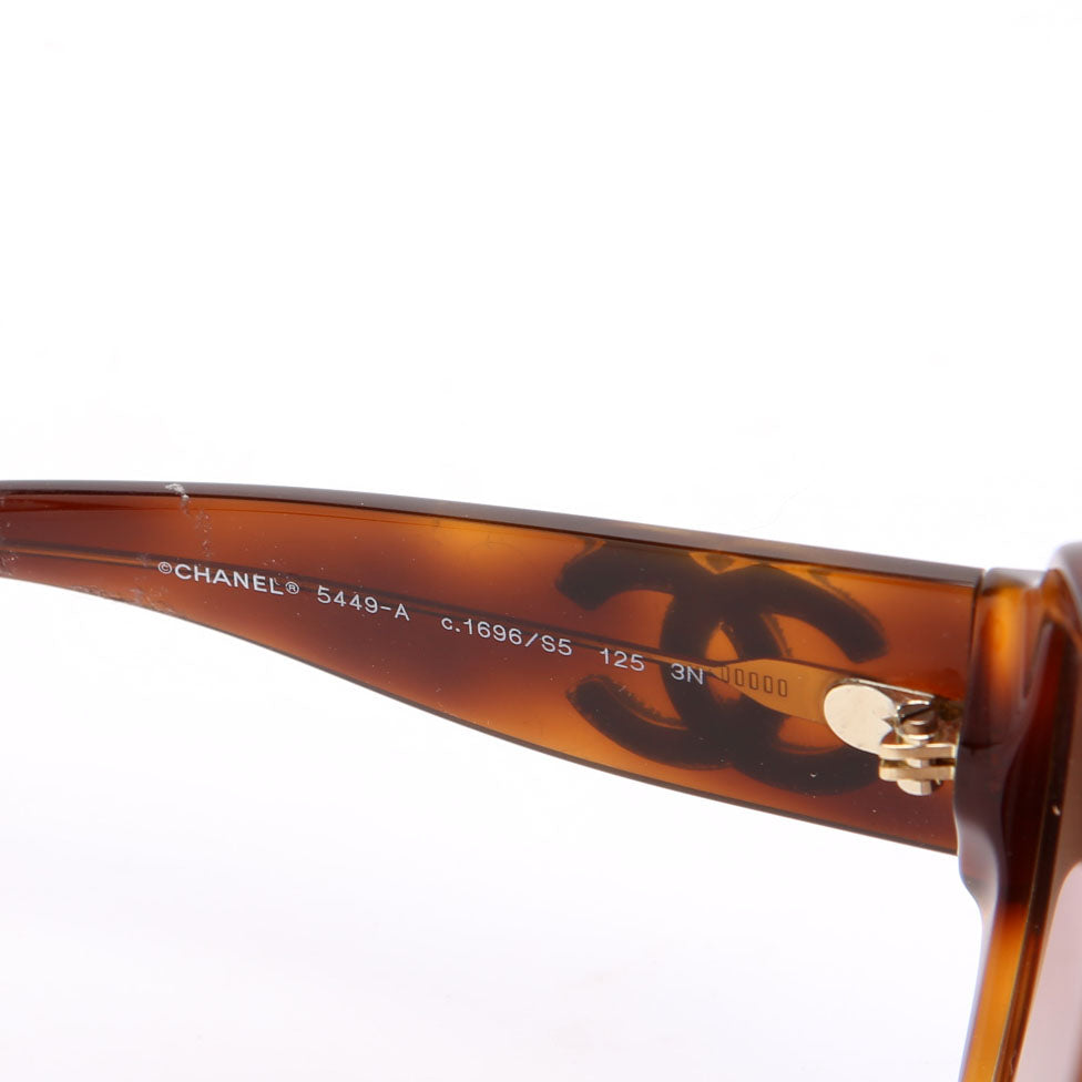 This pre-owned Chanel 5449-A CC Shield Tortoise Sunglasses are guaranteed 100% authentic.