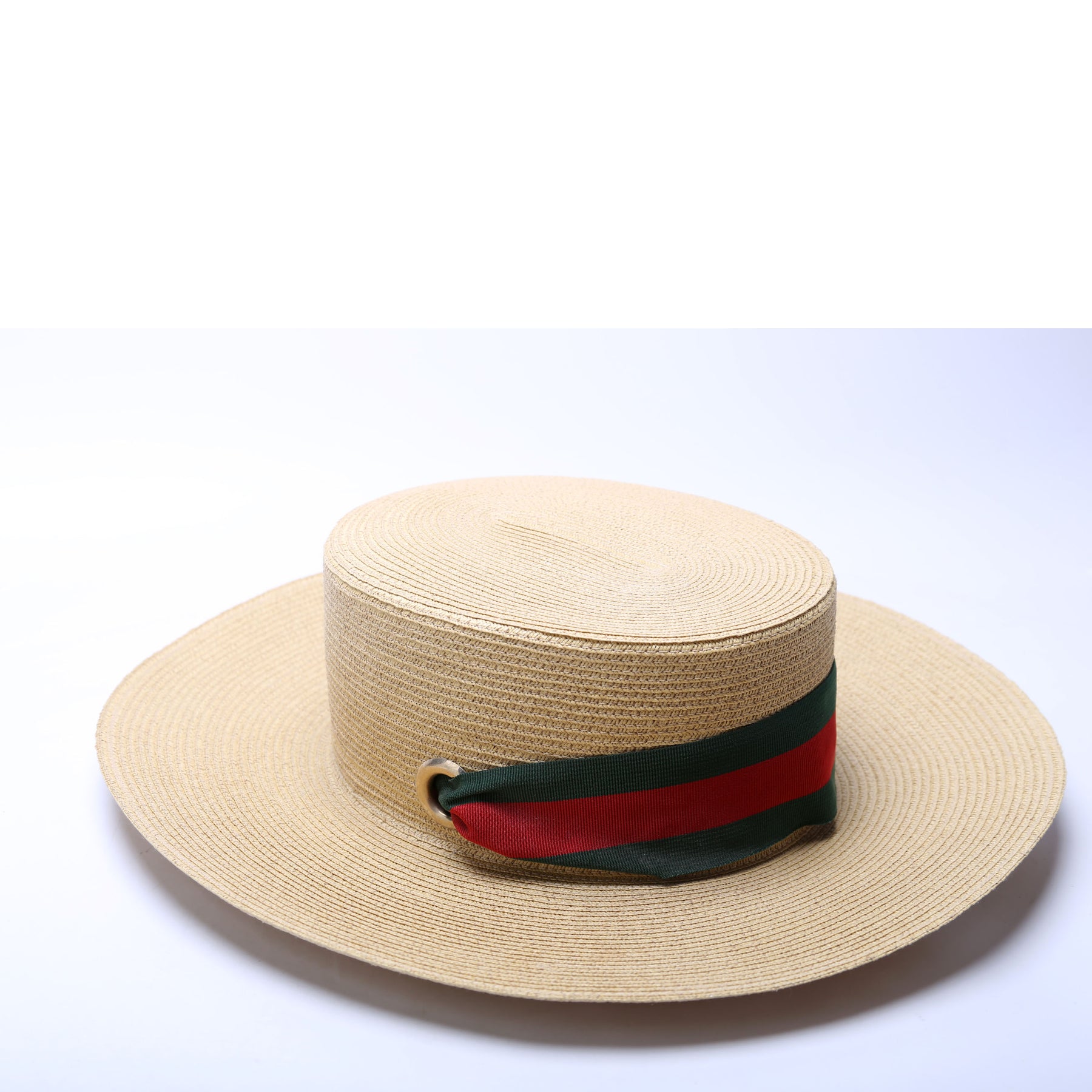 This pre-owned Gucci Striped Straw Wide Brim Hat is guaranteed 100% authentic.