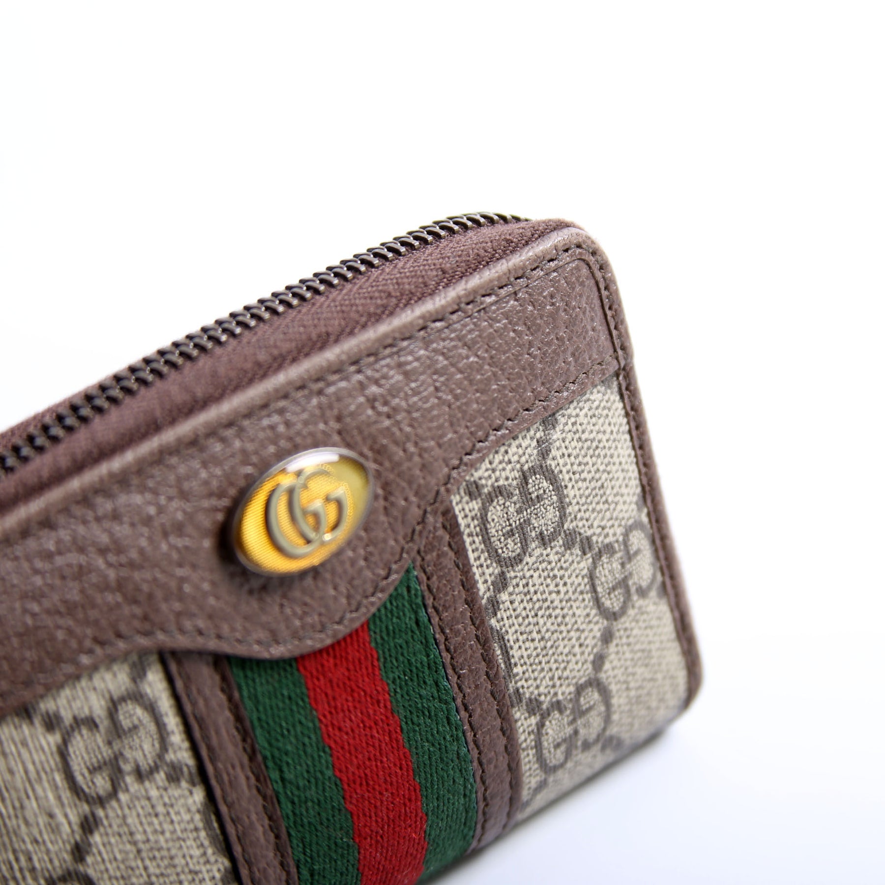 This pre-owned Gucci GG Supreme Zip Around Card Case is guaranteed 100% authentic.