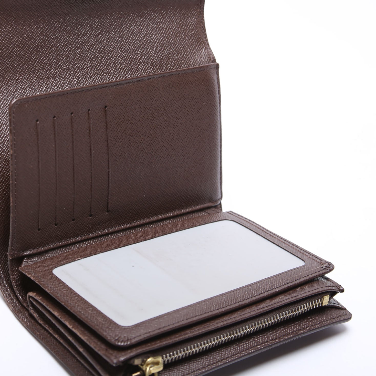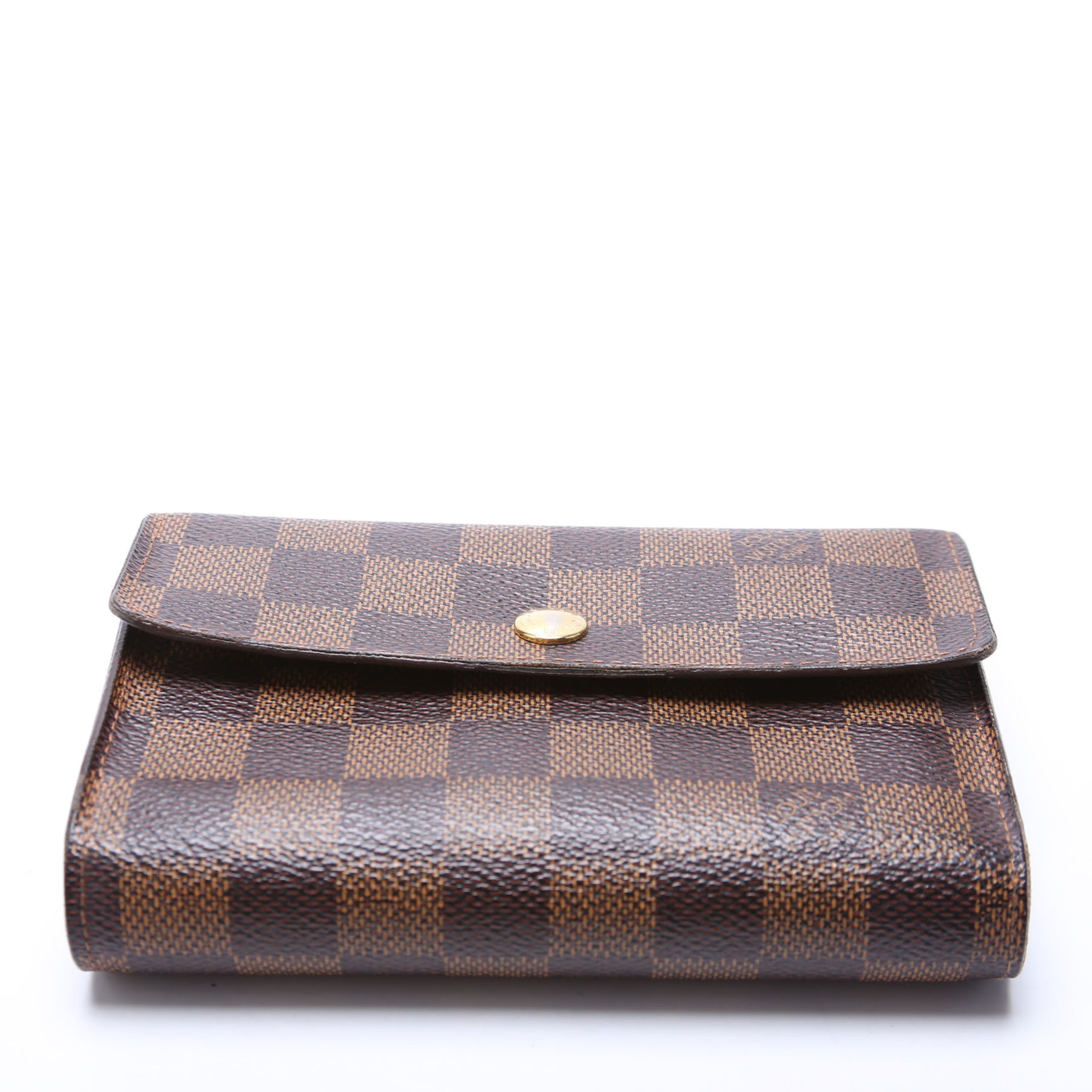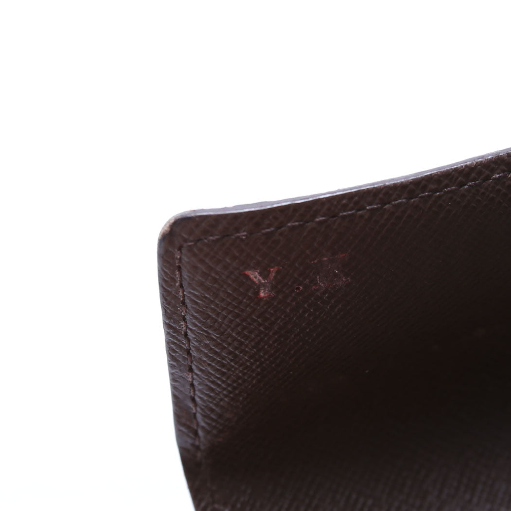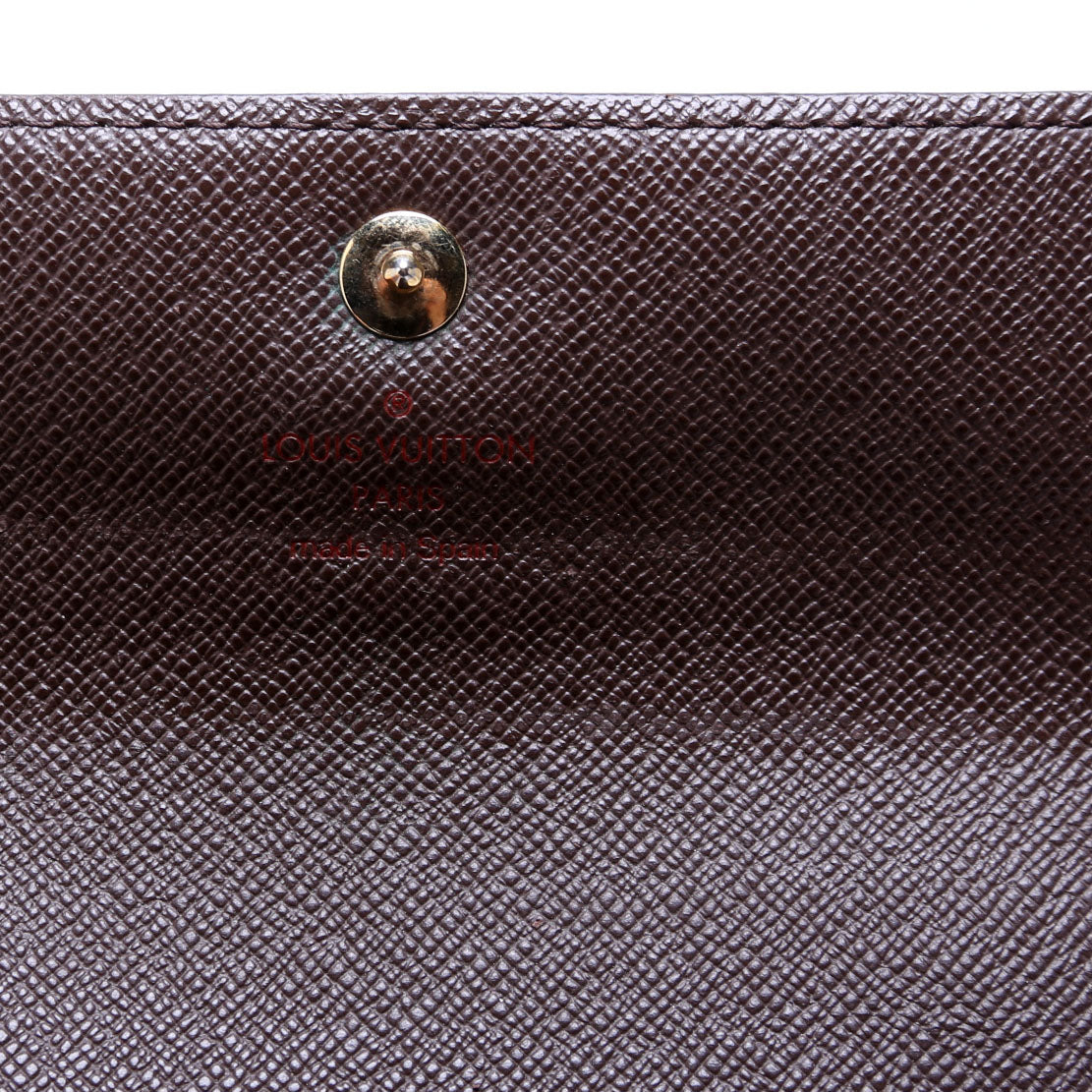 This pre-owned Louis Vuitton Alexandra Wallet is guaranteed 100% authentic. The exterior is in the classic Louis Vuitton Damier Ebene coated canvas.