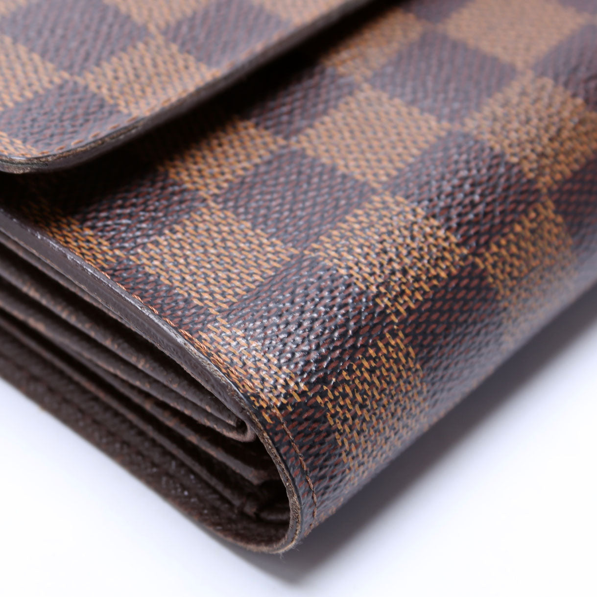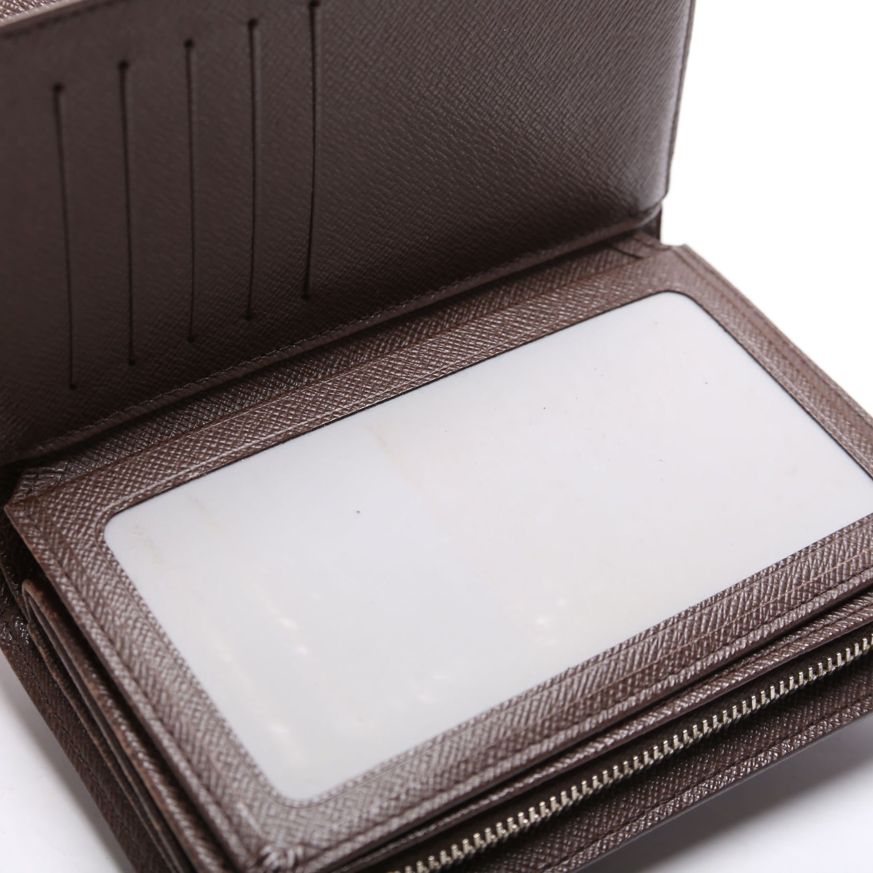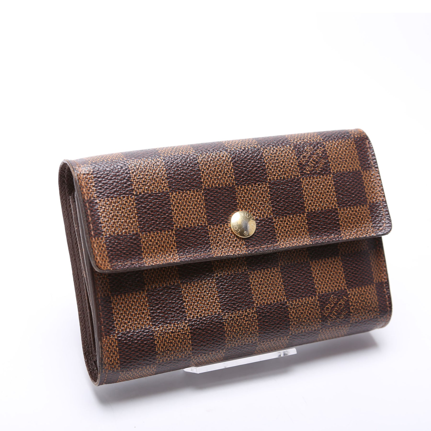 This pre-owned Louis Vuitton Alexandra Wallet is guaranteed 100% authentic. The exterior is in the classic Louis Vuitton Damier Ebene coated canvas.