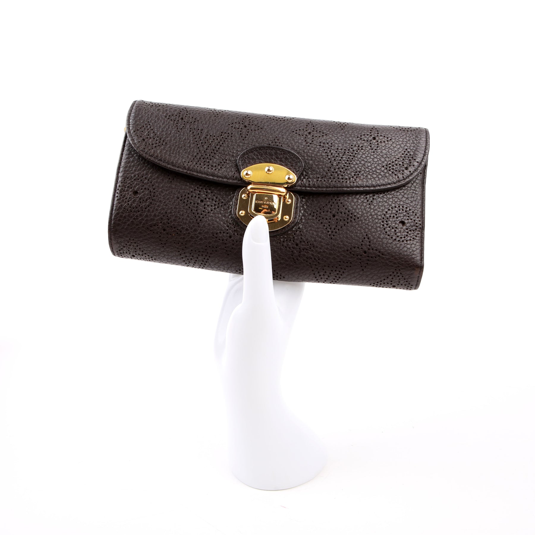 This pre-owned Louis Vuitton Amelia Wallet is guaranteed 100% authentic. The exterior is in the classic Mahina leather.