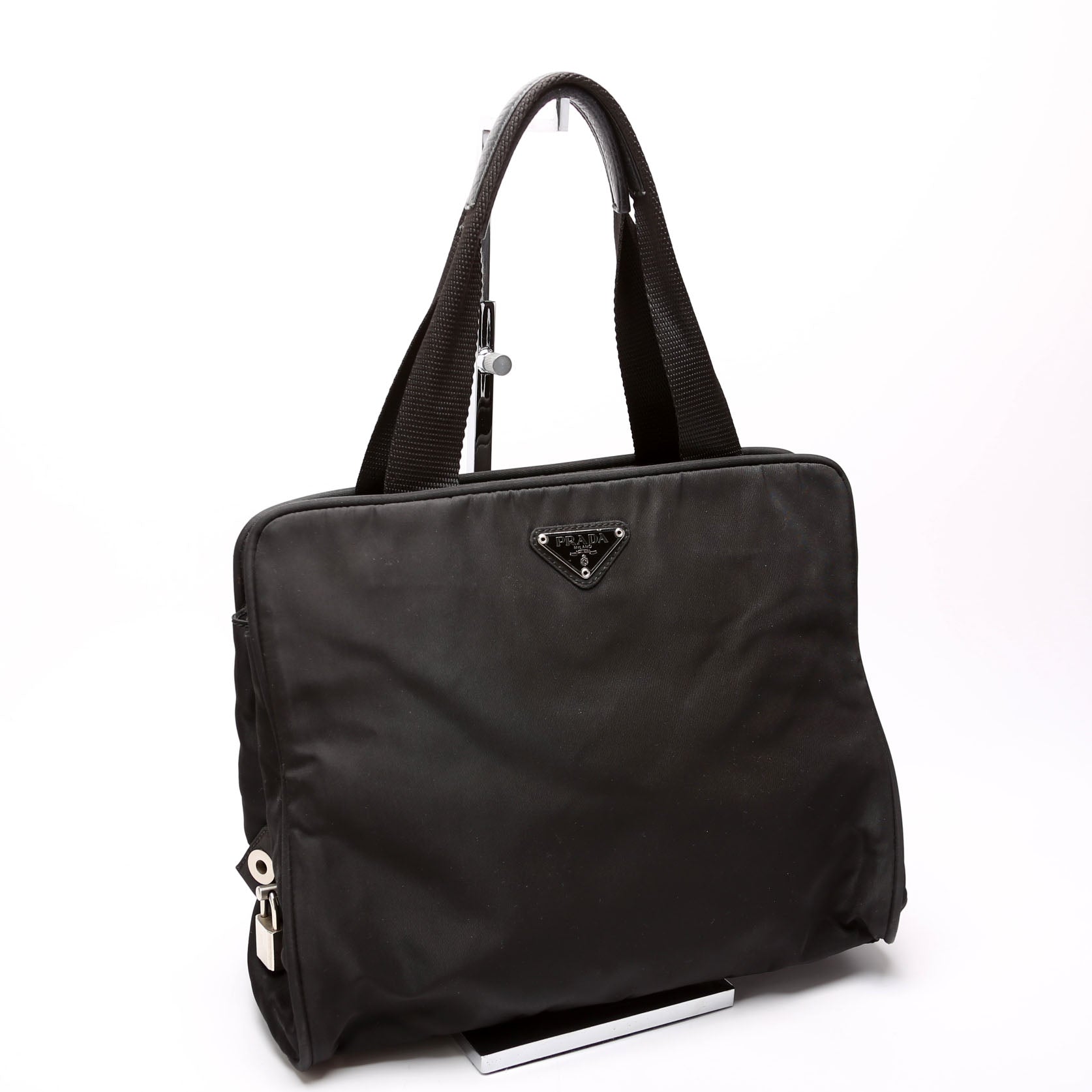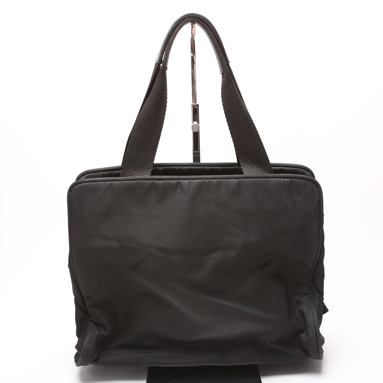 This pre-owned Prada Tessuto Nylon Tote is guaranteed 100% authentic. The exterior is in the classic Prada Nylon exterior.