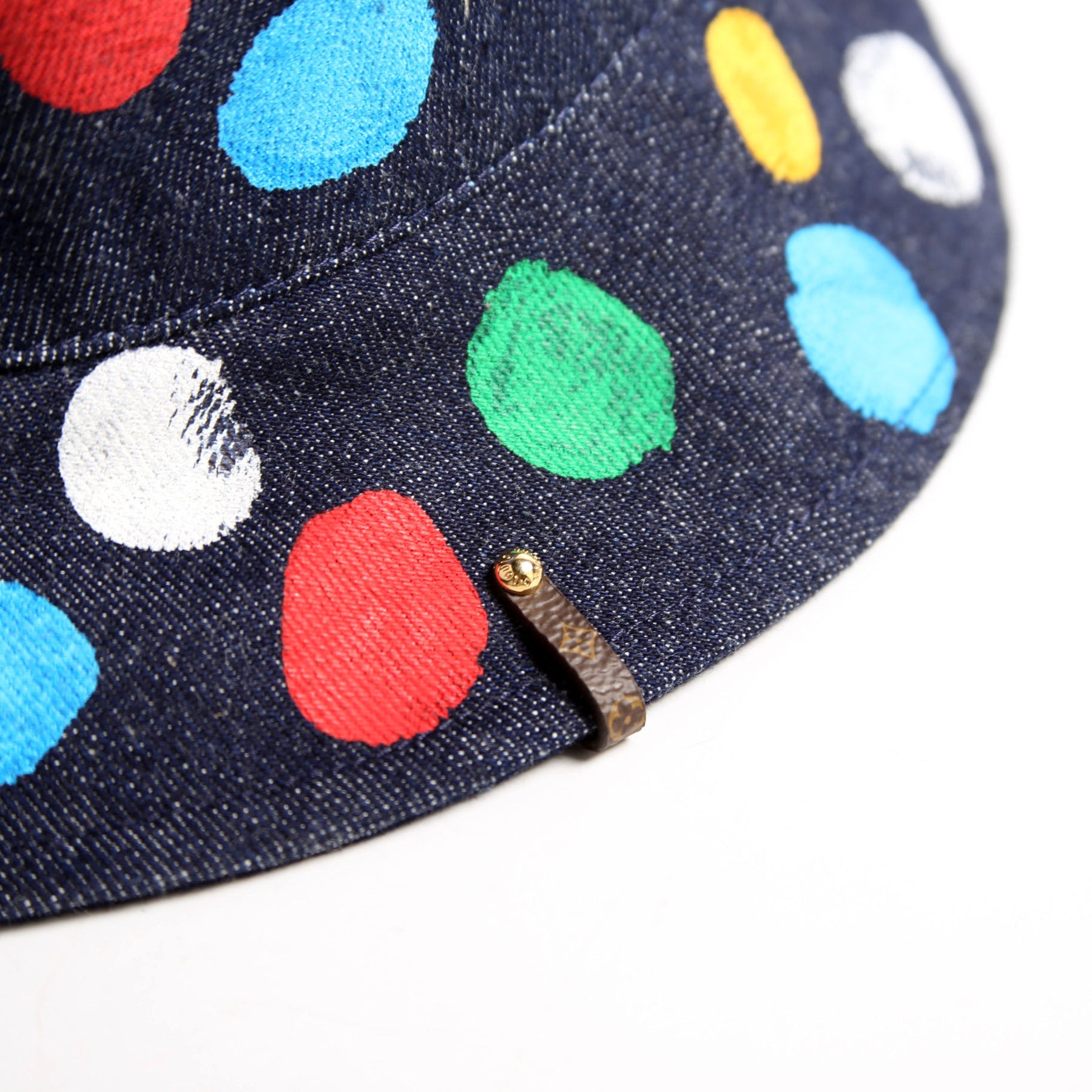 This pre-owned Louis Vuitton Denim Kusama Painted Dots Bucket Hat is guaranteed 100% authentic.