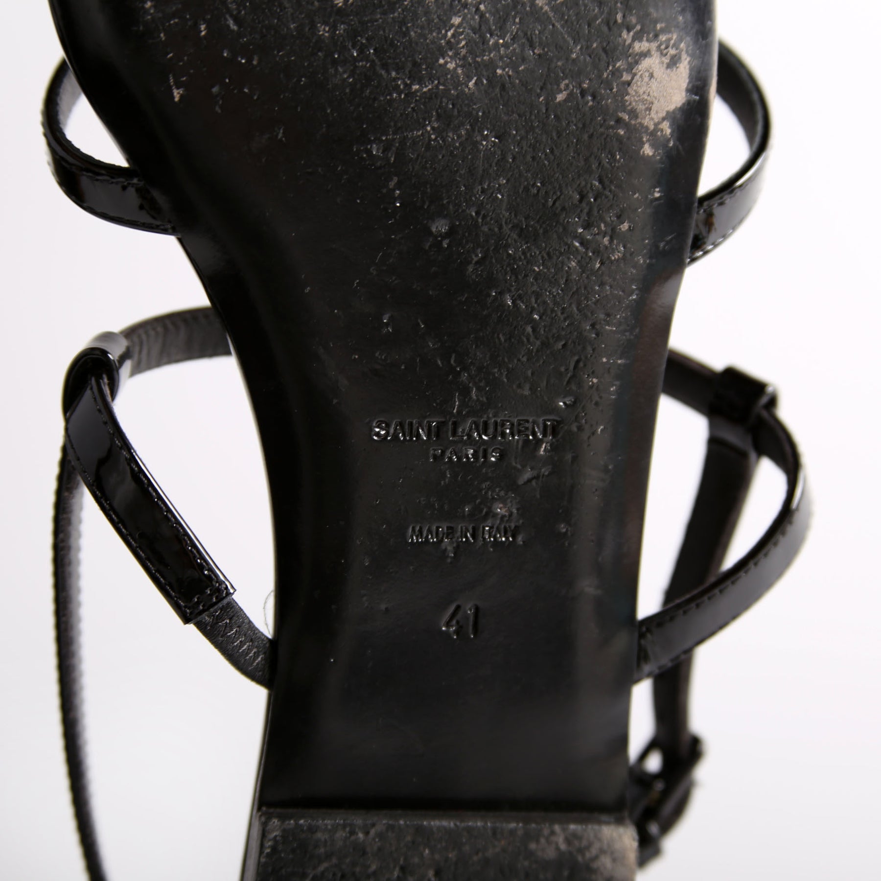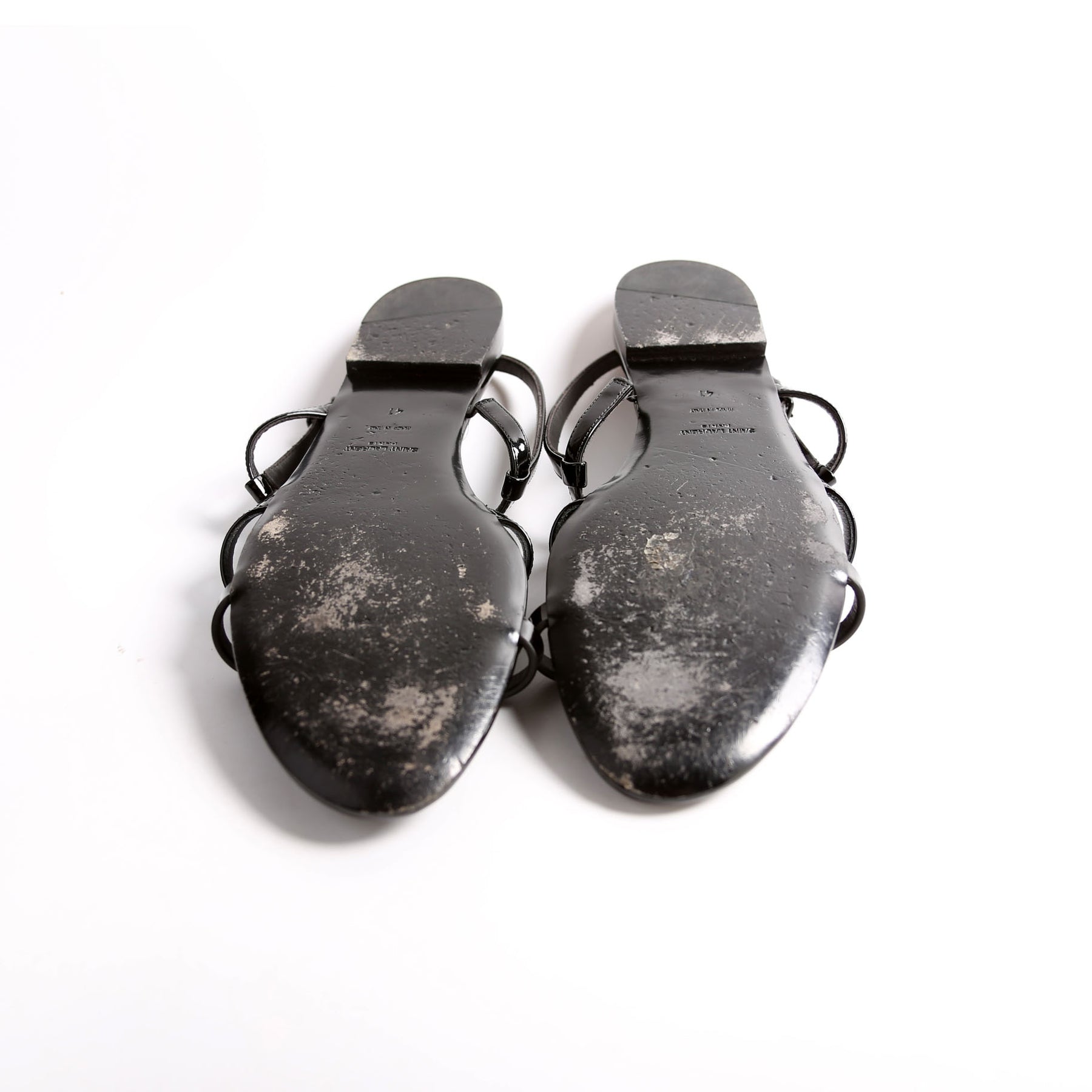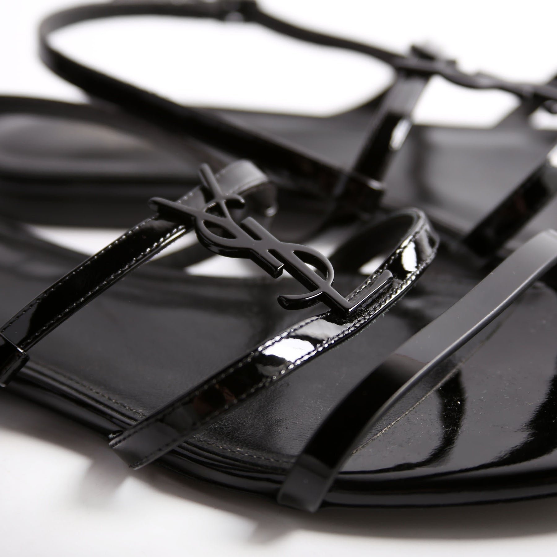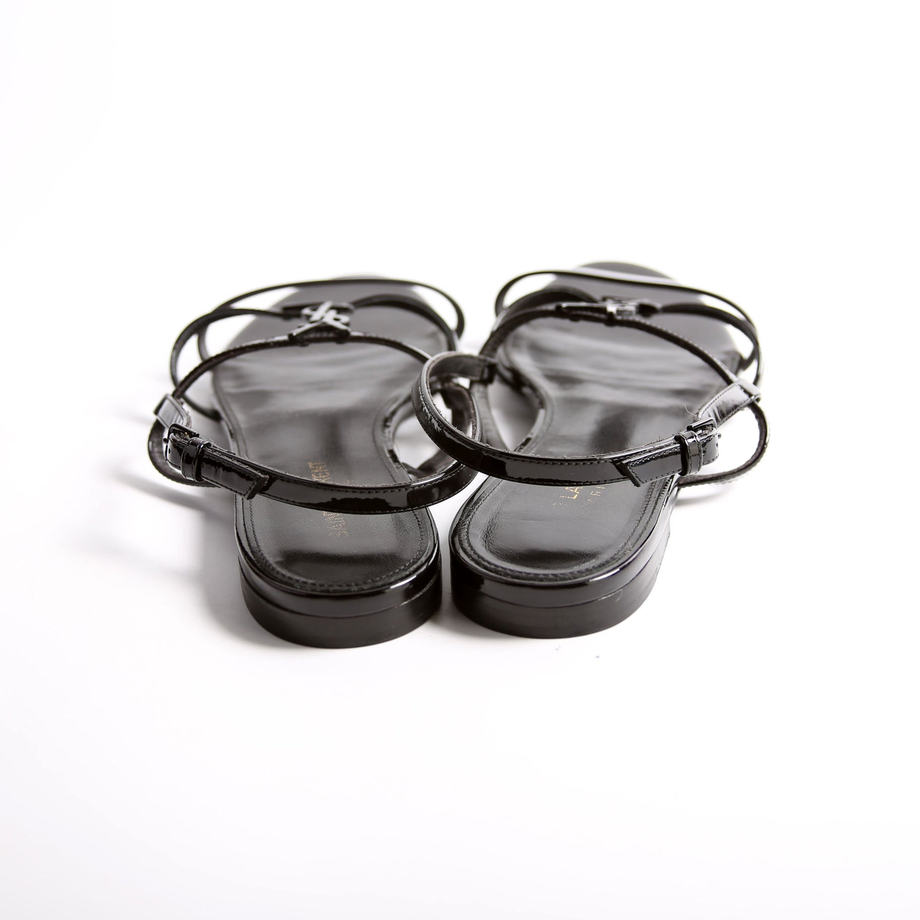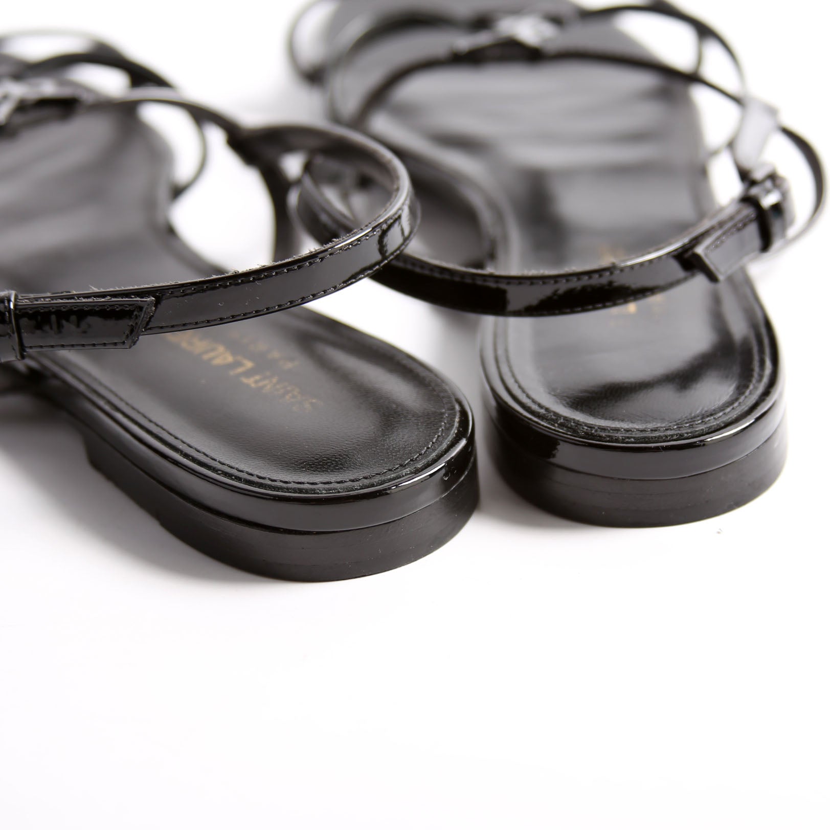 These pre-owned Saint Laurent Cassandre Flat Patent Sandals are guaranteed 100% authentic.