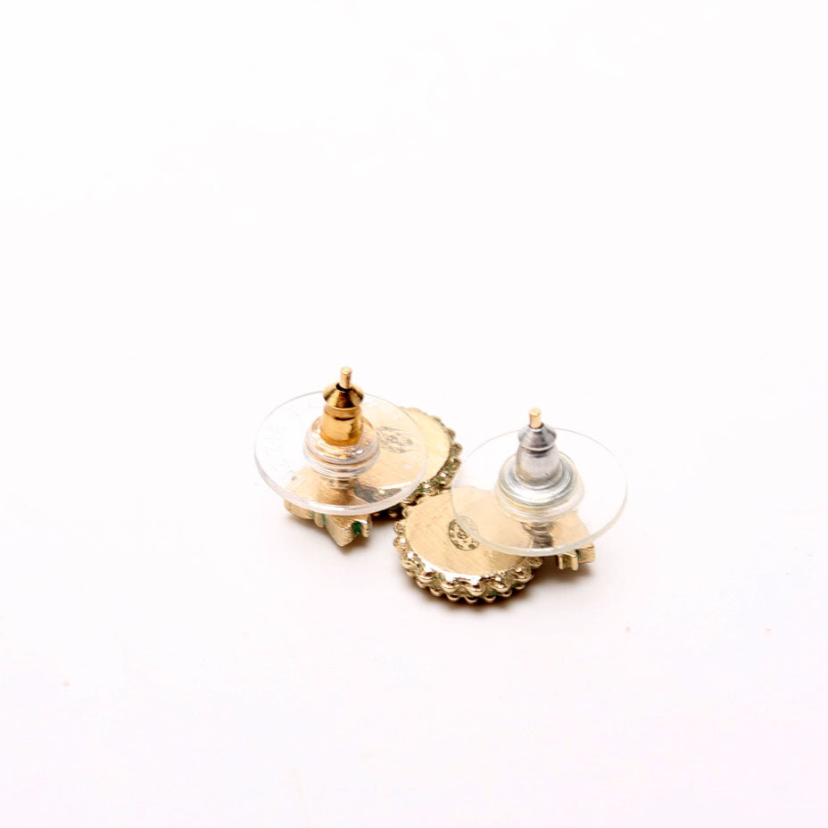 CC Bow Round Stud Earrings Gold/Black