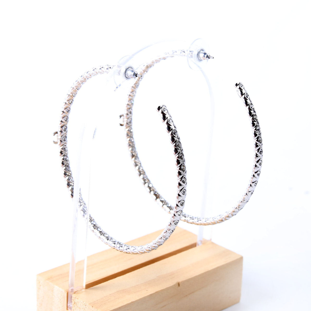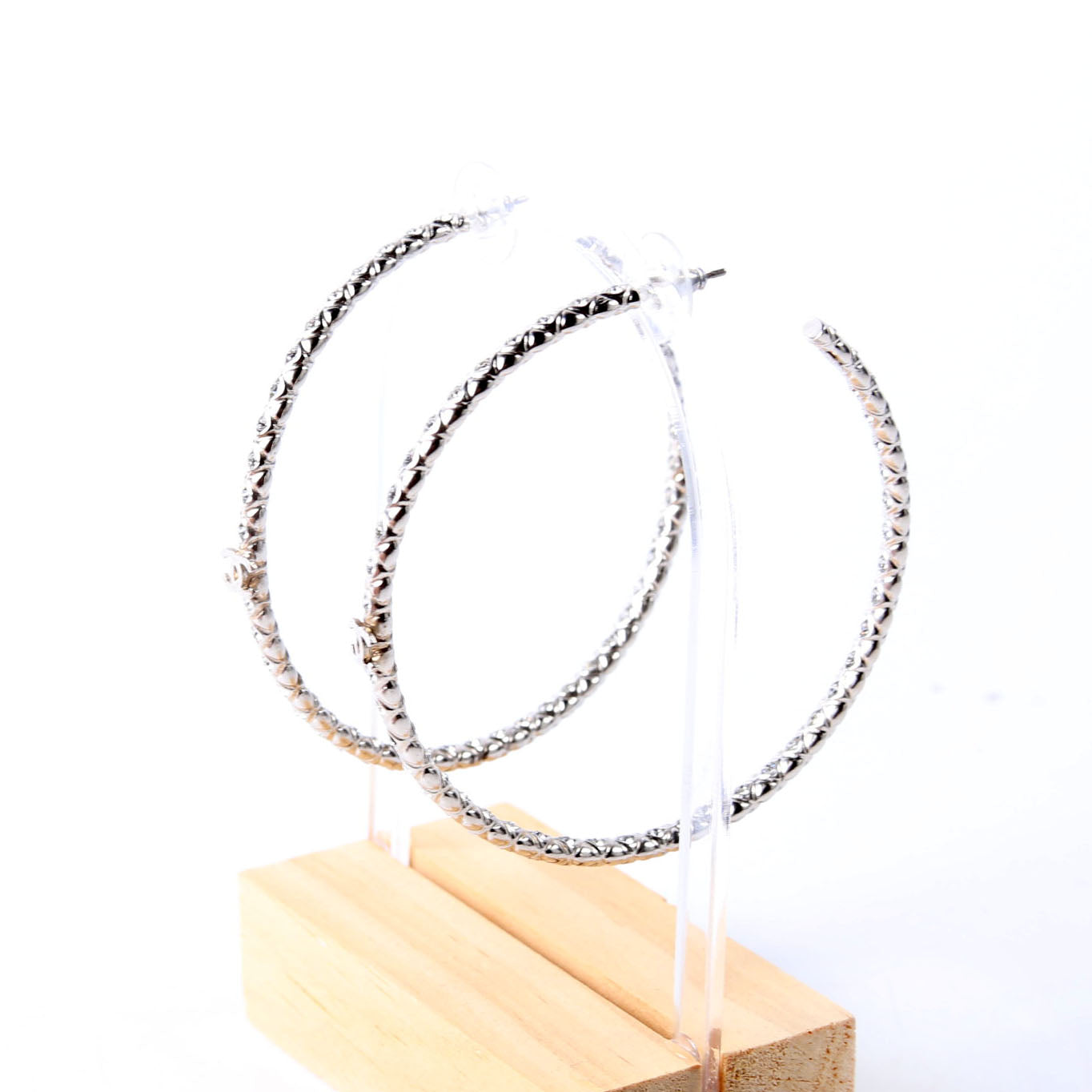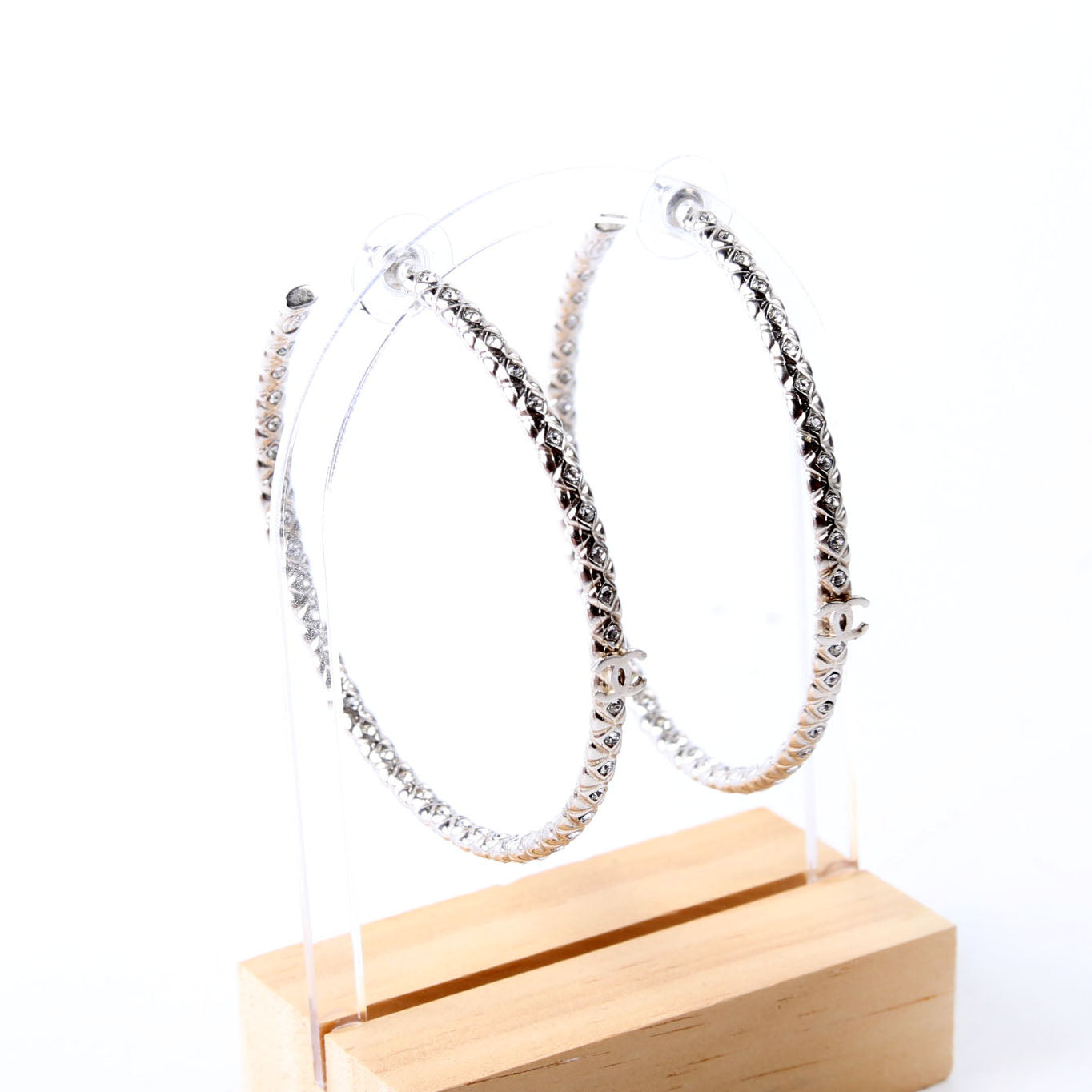 This pre-owned Chanel CC Crystal Large Hoop Earrings is guaranteed 100% authentic.