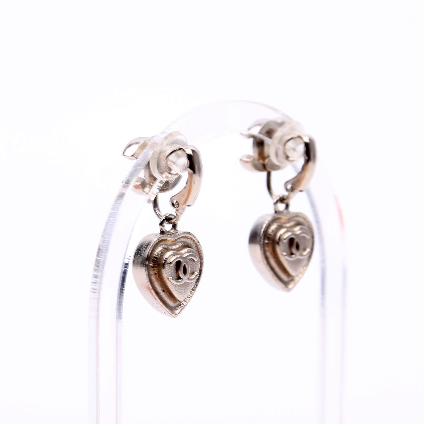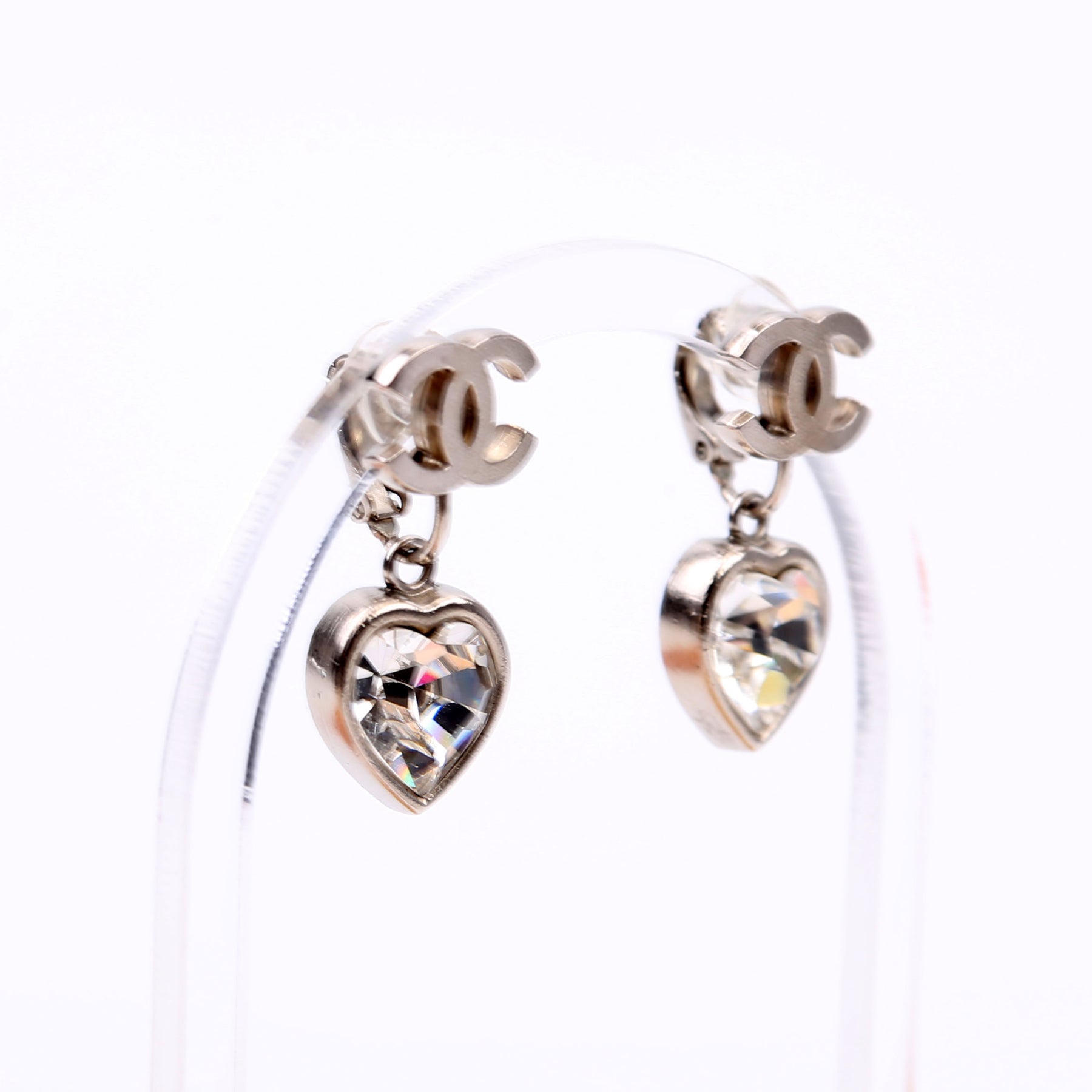 These pre-owned Chanel CC Heart Rhinestone Drop Clip On Earrings are guaranteed 100% authentic.