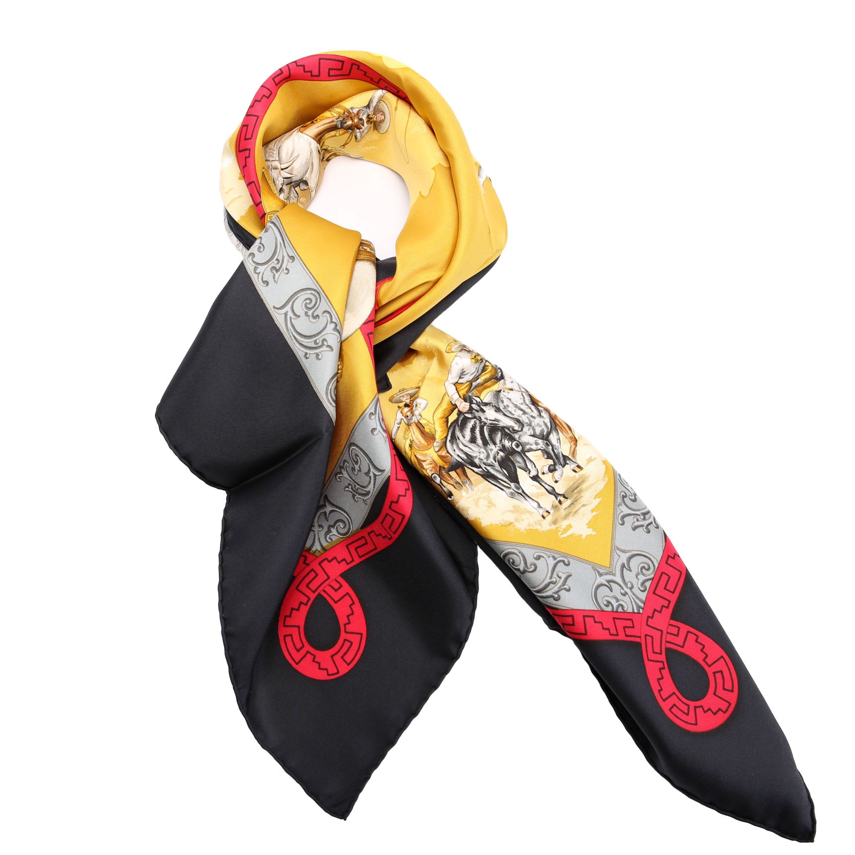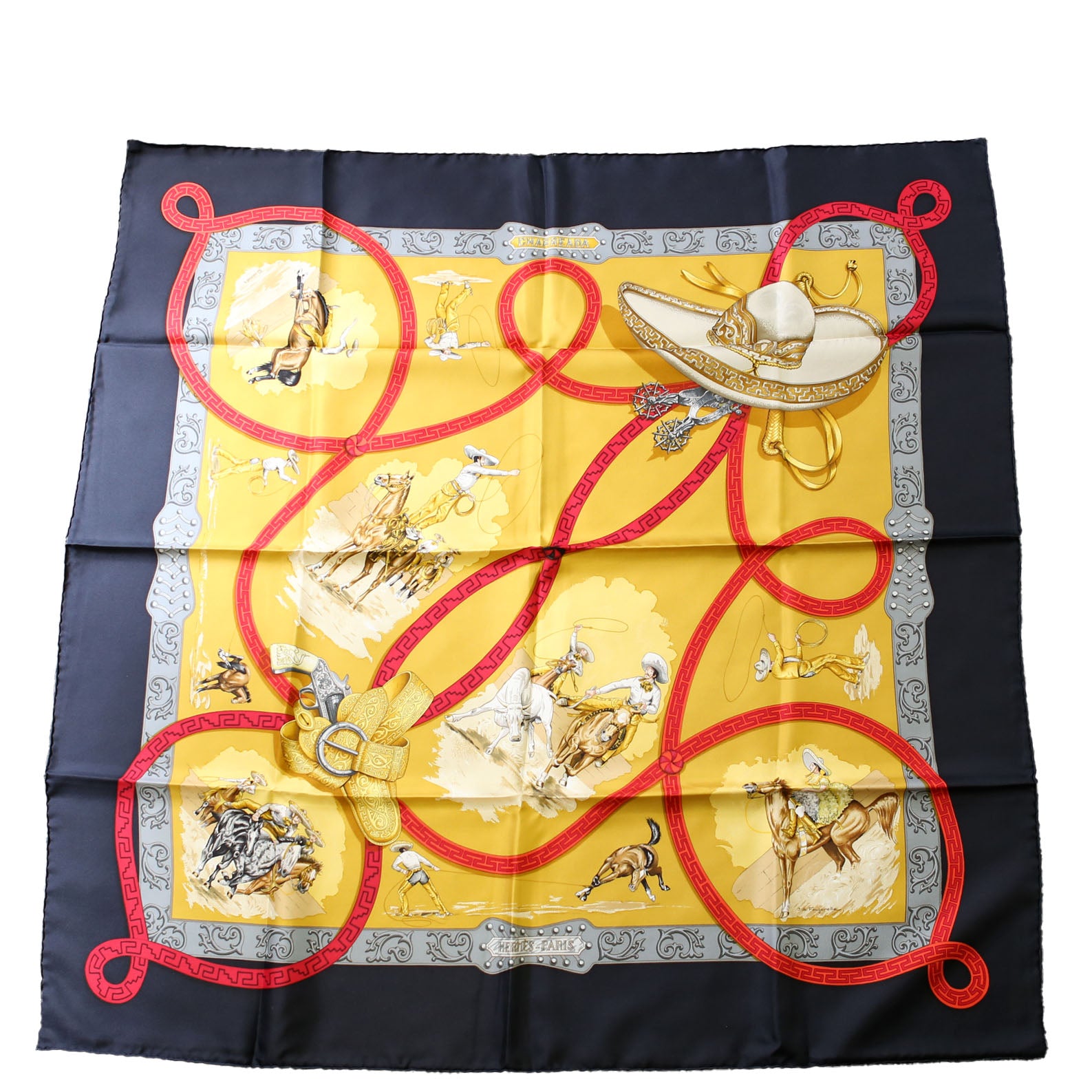 This pre-owned Hermes Charreada 90 Silk Scarf is guaranteed 100% authentic.