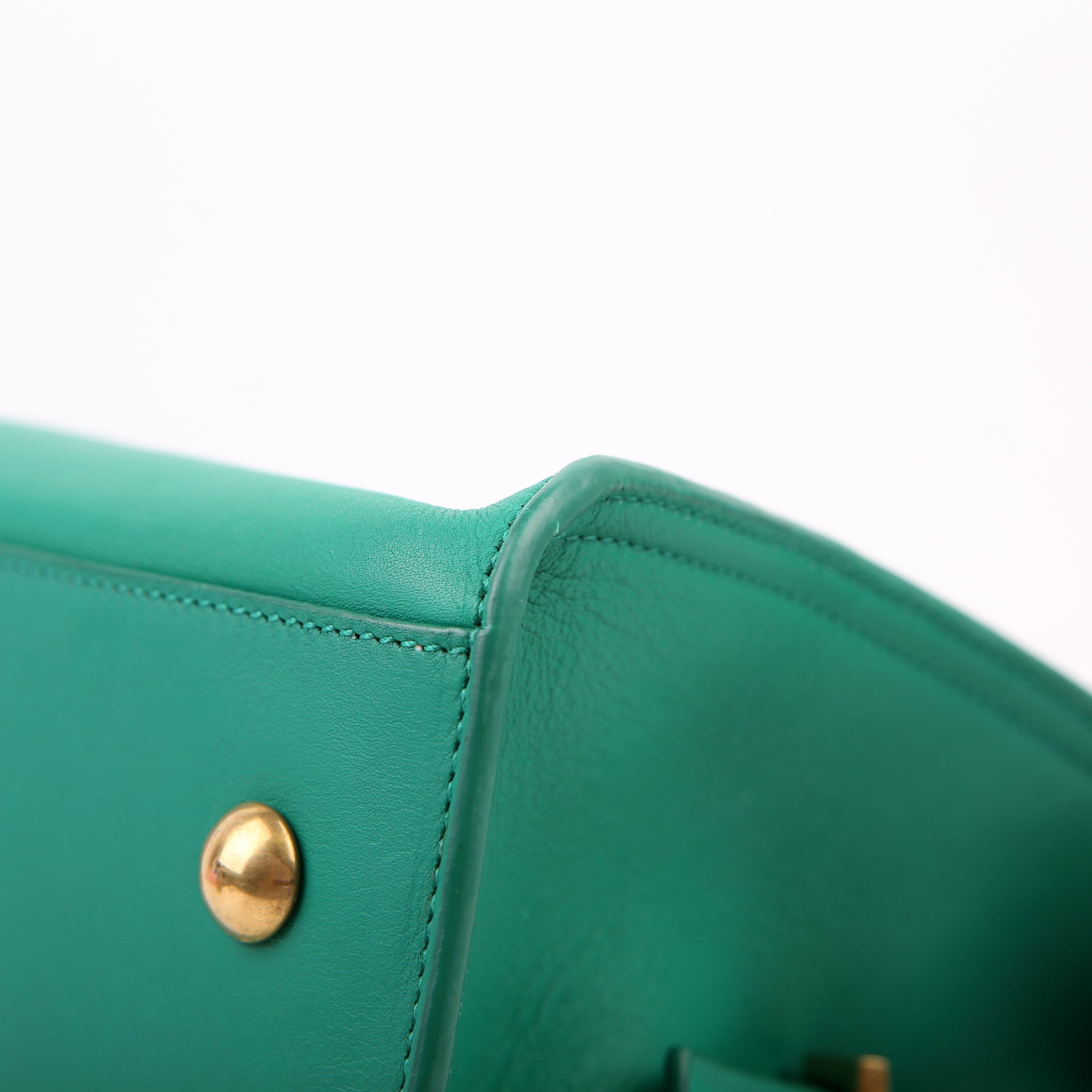 Handle: The leather handles show minor wear along the pipping. The leather tag shows light wear throughout.