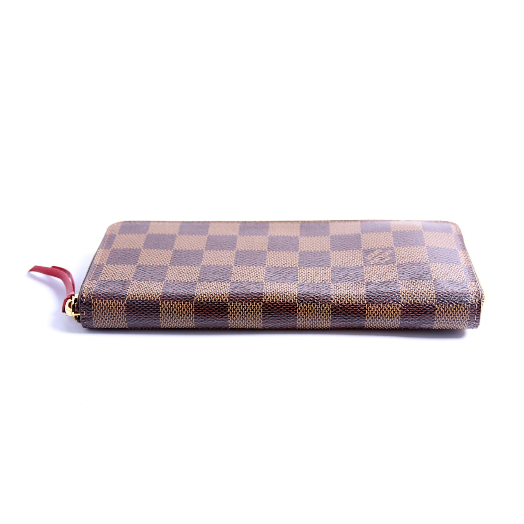 This pre-owned Louis Vuitton Clemence Wallet is guaranteed 100% authentic. The exterior is in the classic Louis Vuitton Damier Ebene coated canvas.