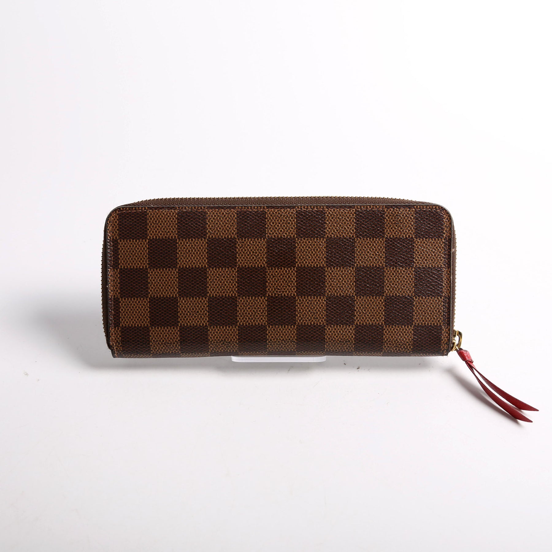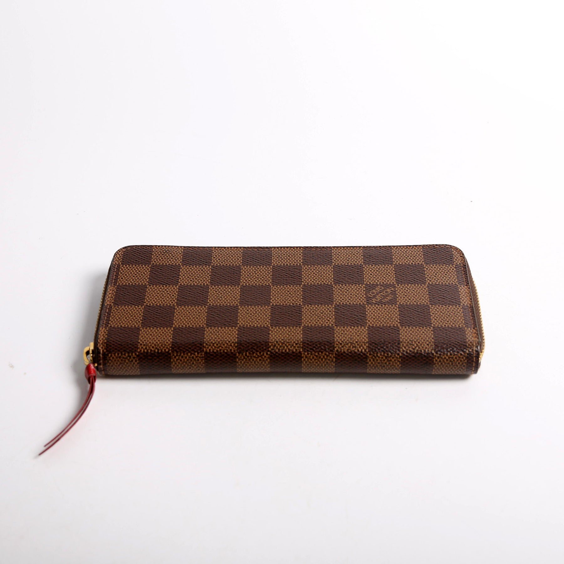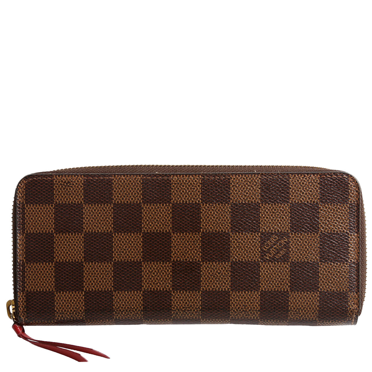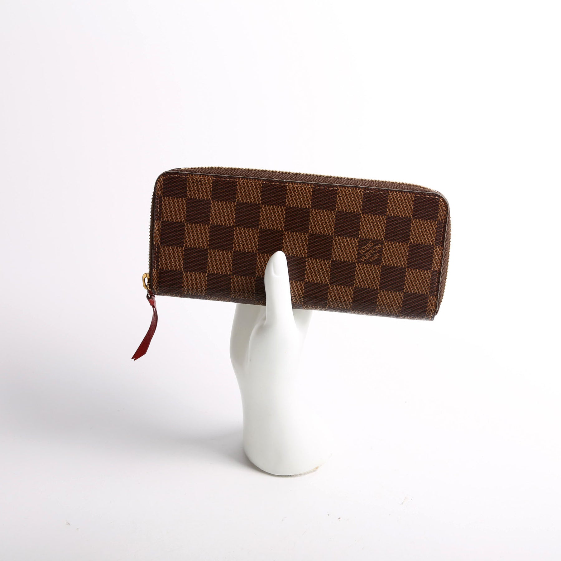 This pre-owned Louis Vuitton Clemence Wallet is guaranteed 100% authentic. The exterior is in the classic Louis Vuitton Damier Ebene coated canvas.