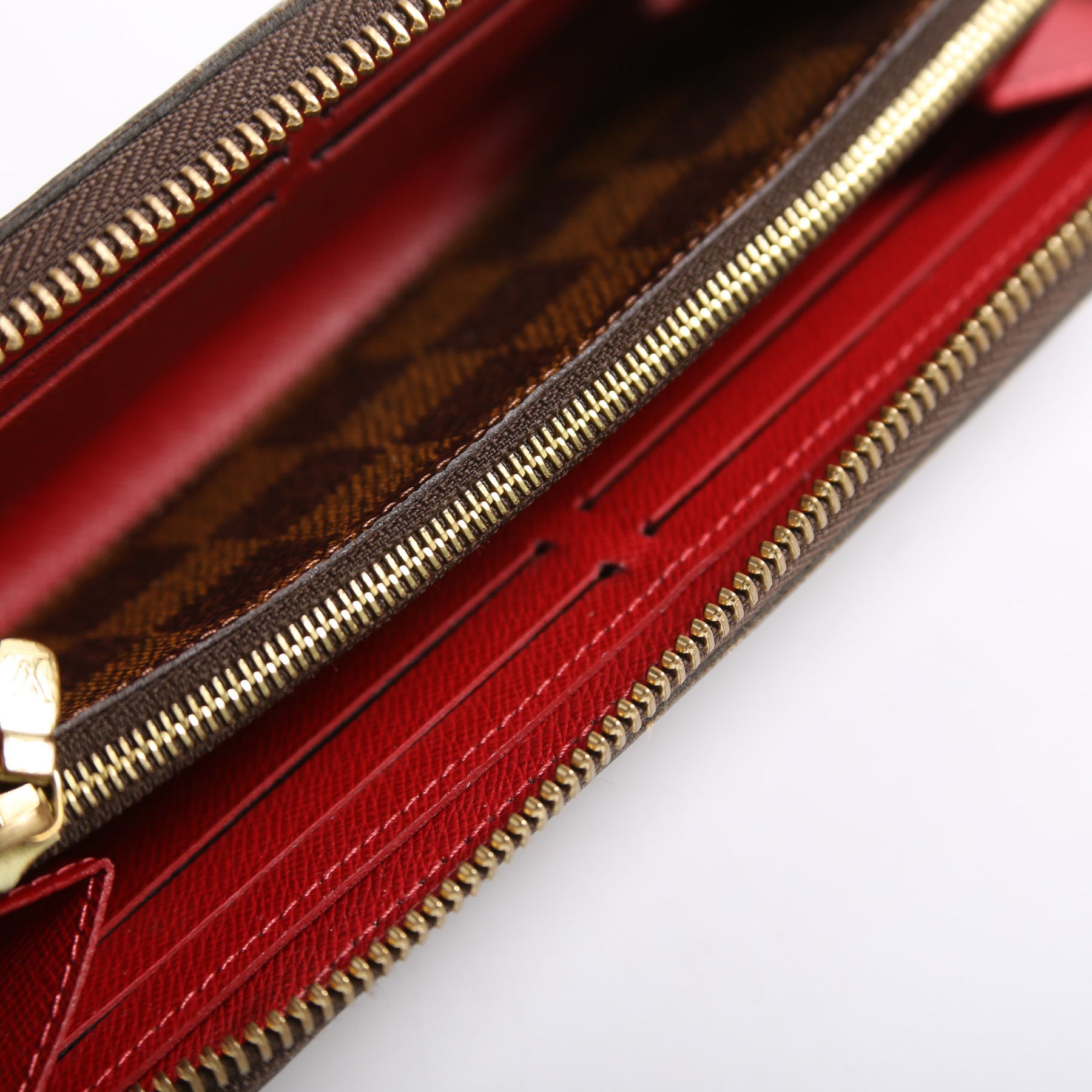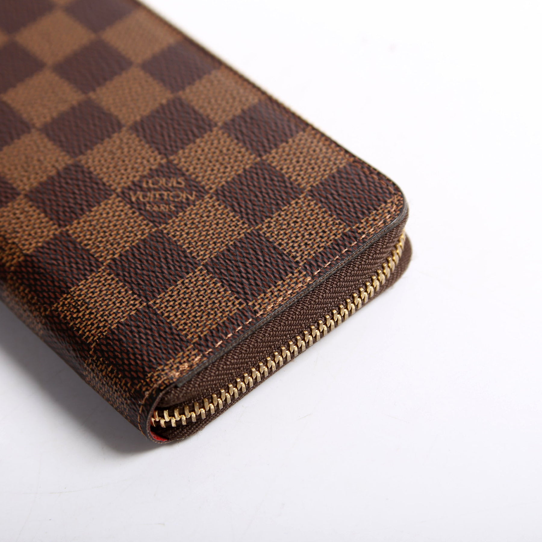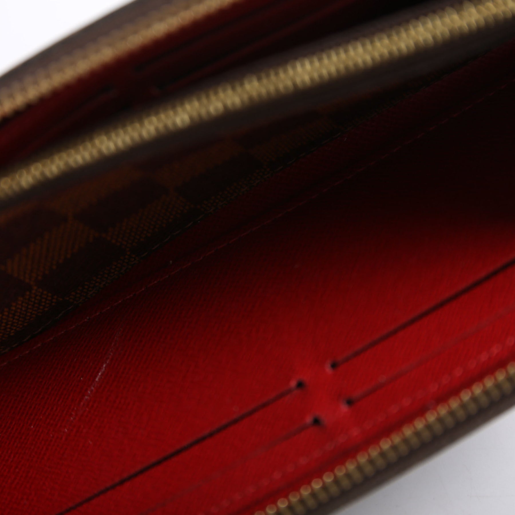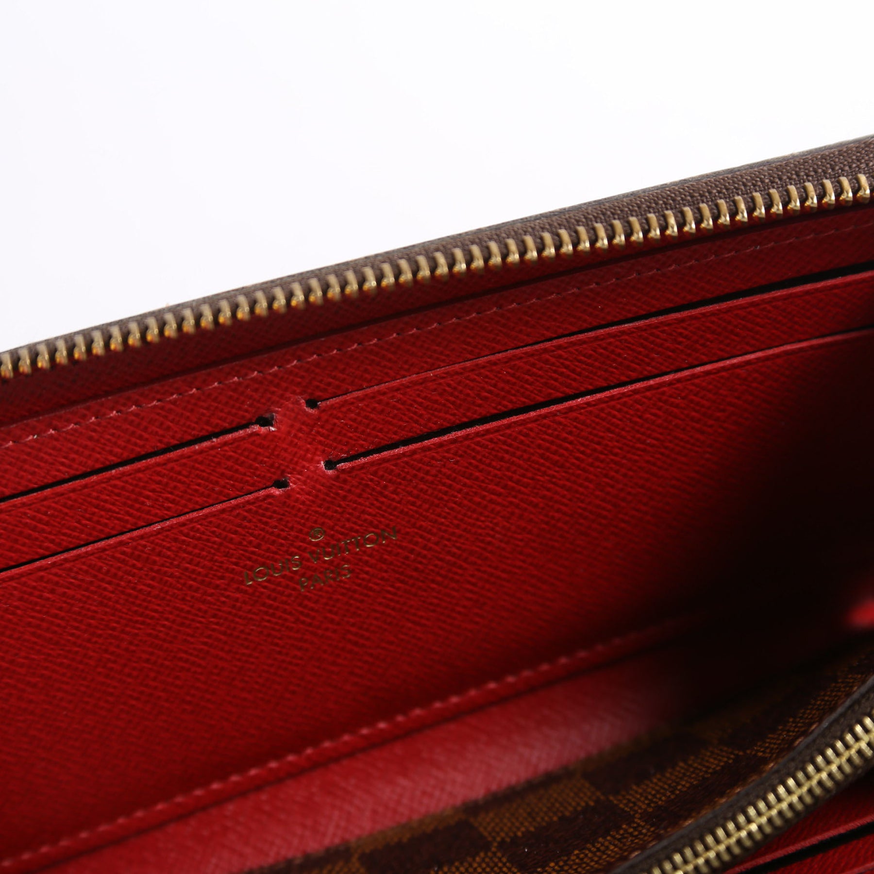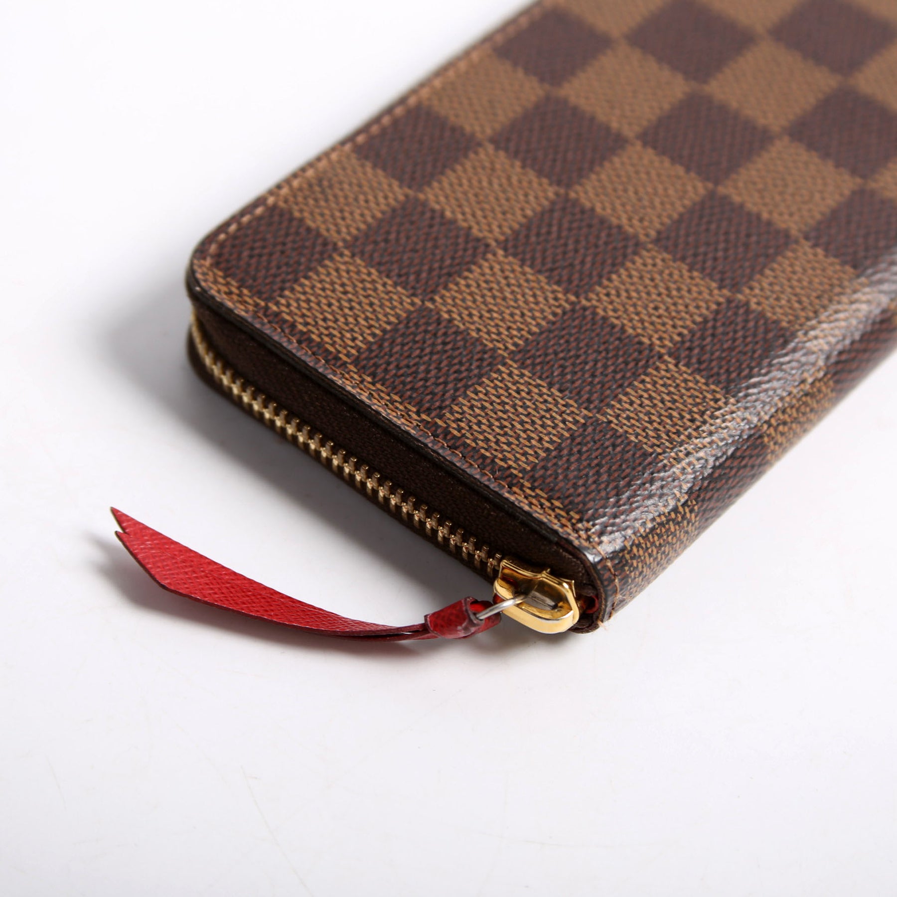 This pre-owned Louis Vuitton Clemence Wallet is guaranteed 100% authentic. The exterior is in the classic Louis Vuitton Damier Ebene coated canvas.