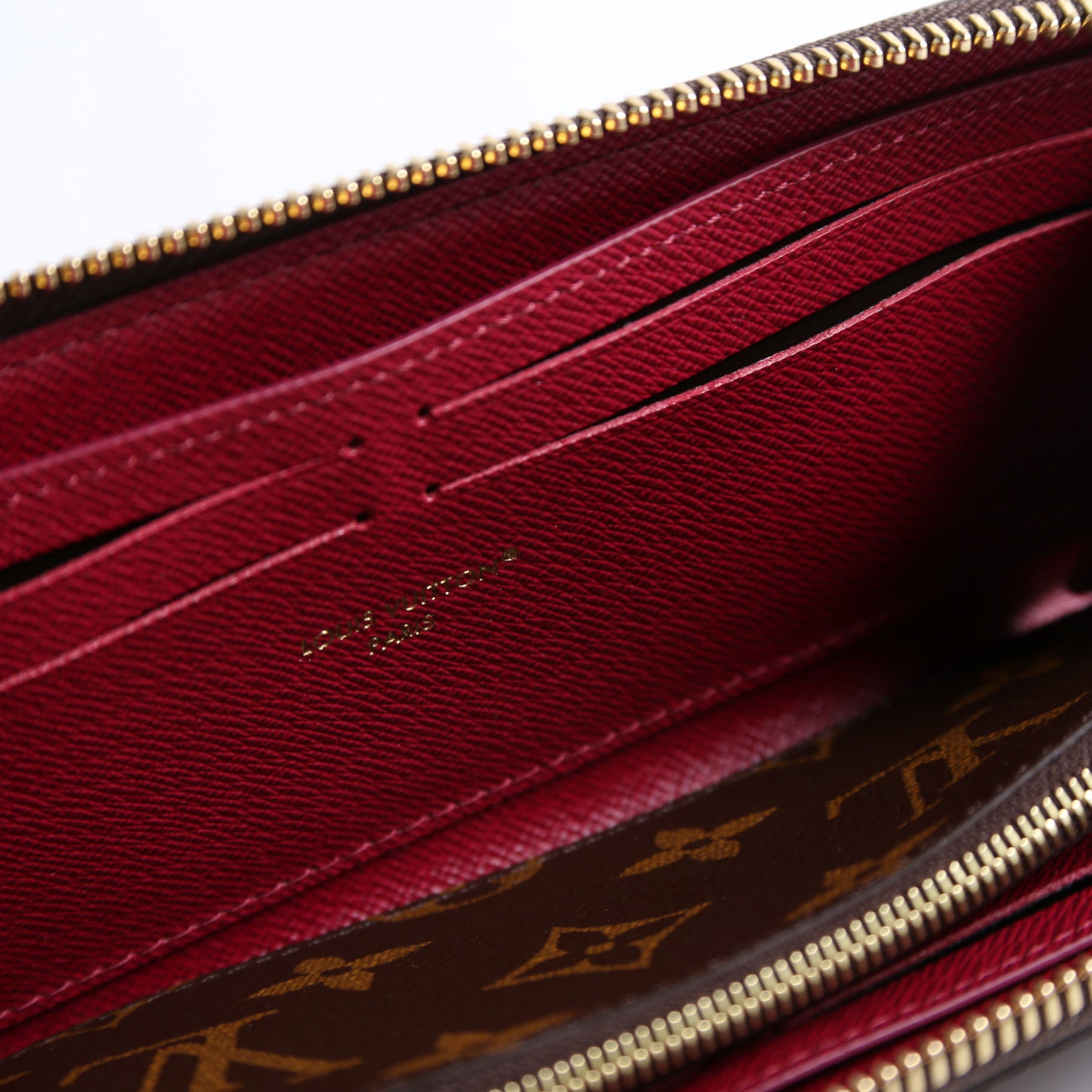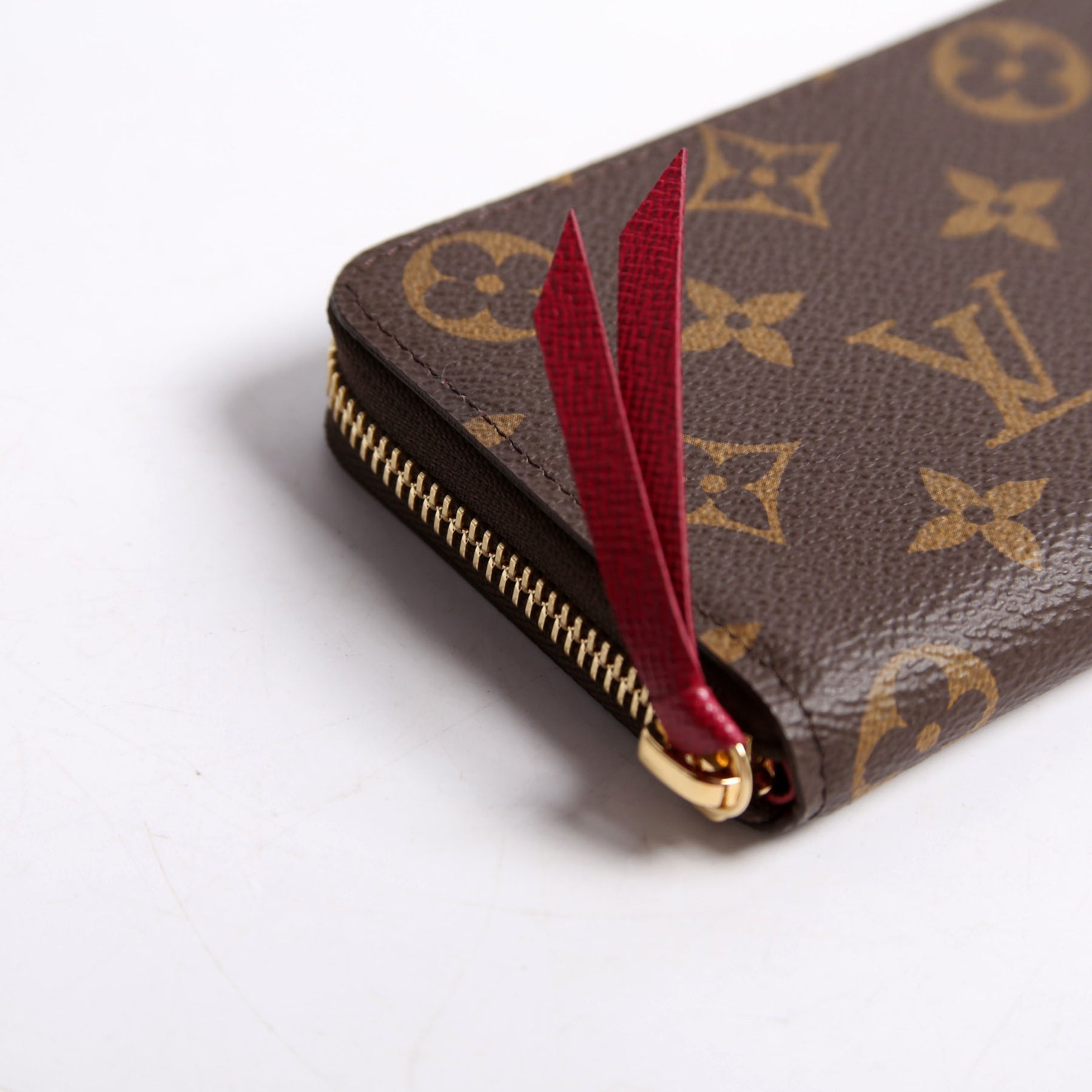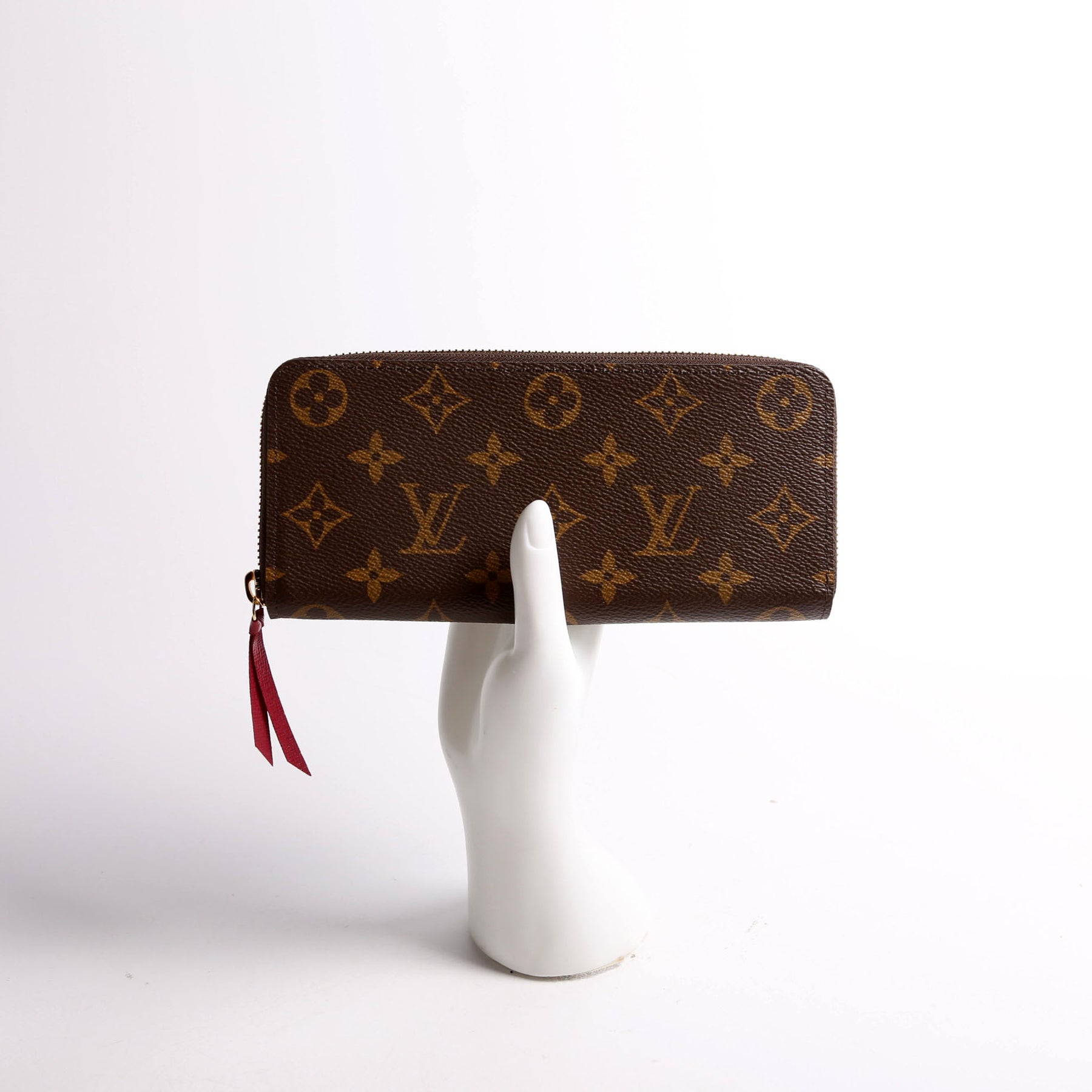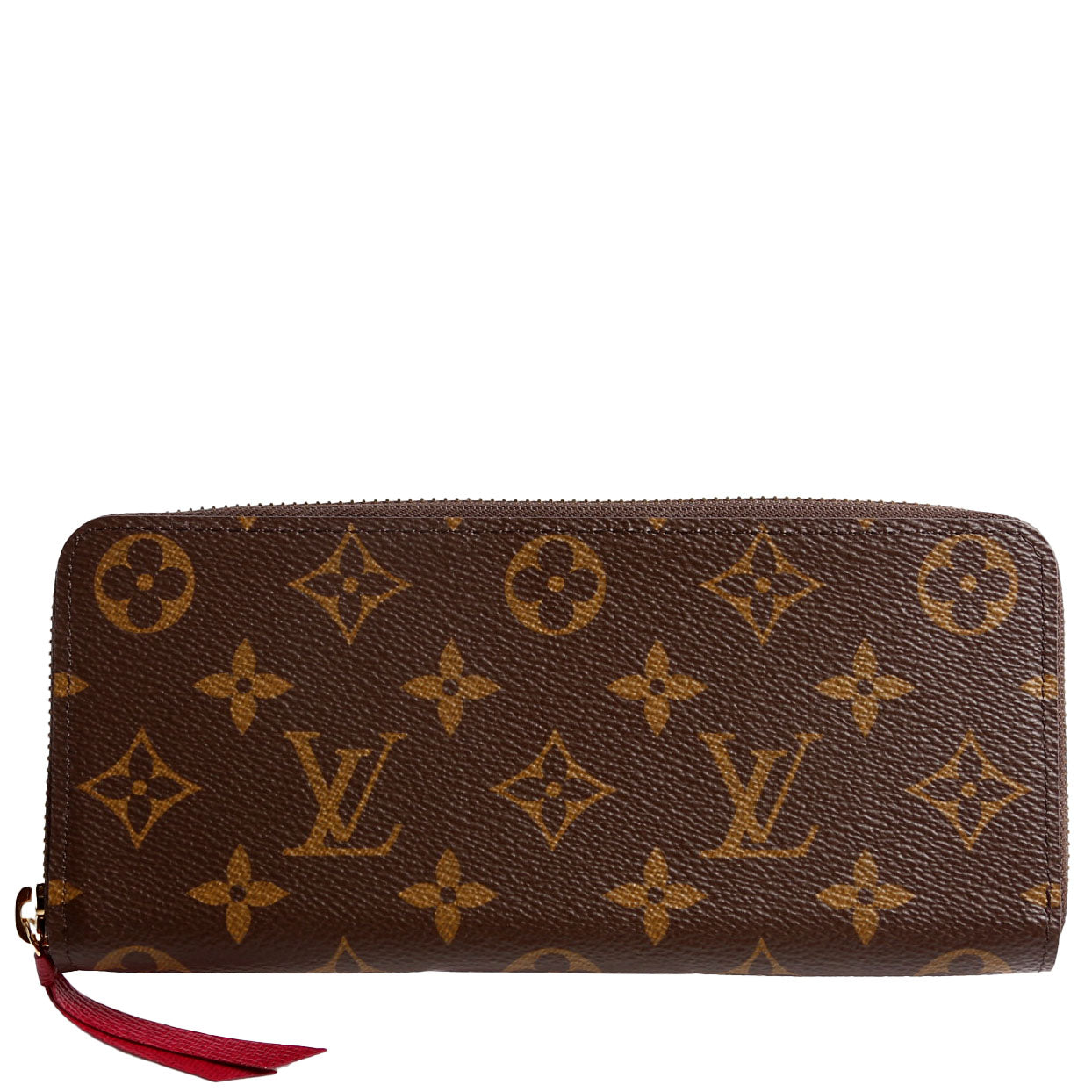 This pre-owned Louis Vuitton Clemence Wallet is guaranteed 100% authentic. The exterior is in the classic Louis Vuitton Monogram coated canvas.
