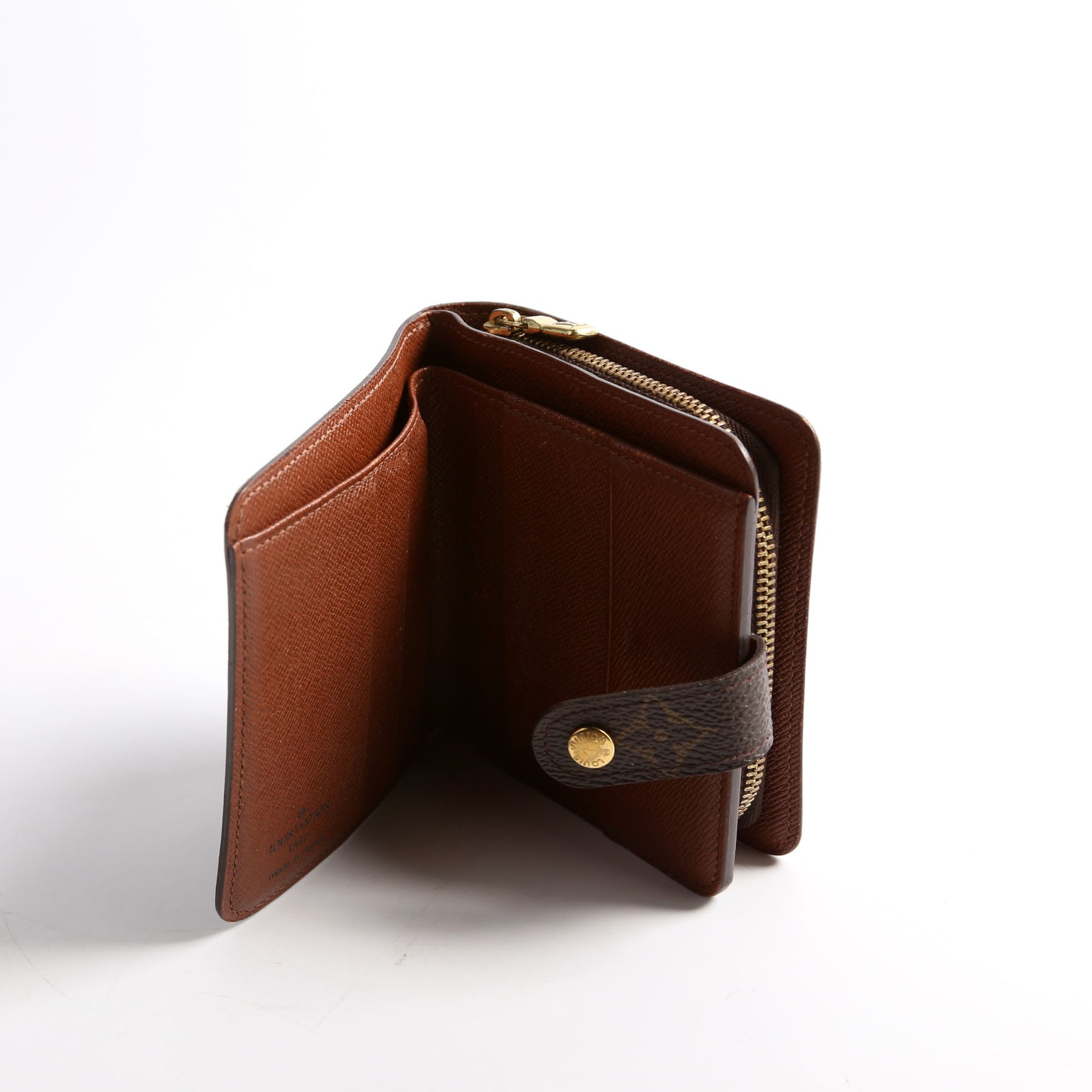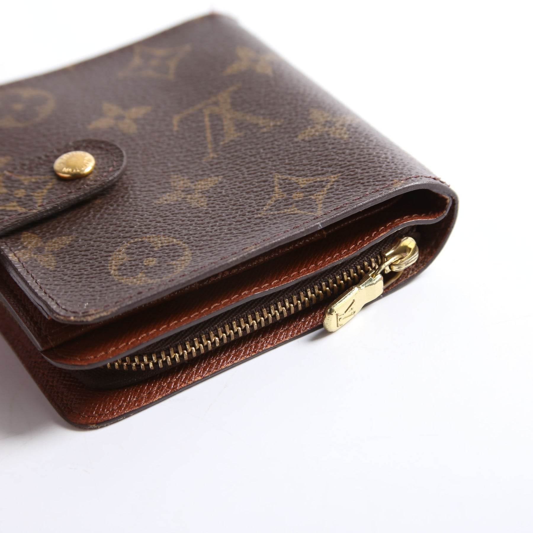 This pre-owned Louis Vuitton Compact Zippe Wallet is guaranteed 100% authentic. The exterior is in the classic Louis Vuitton Monogram coated canvas.