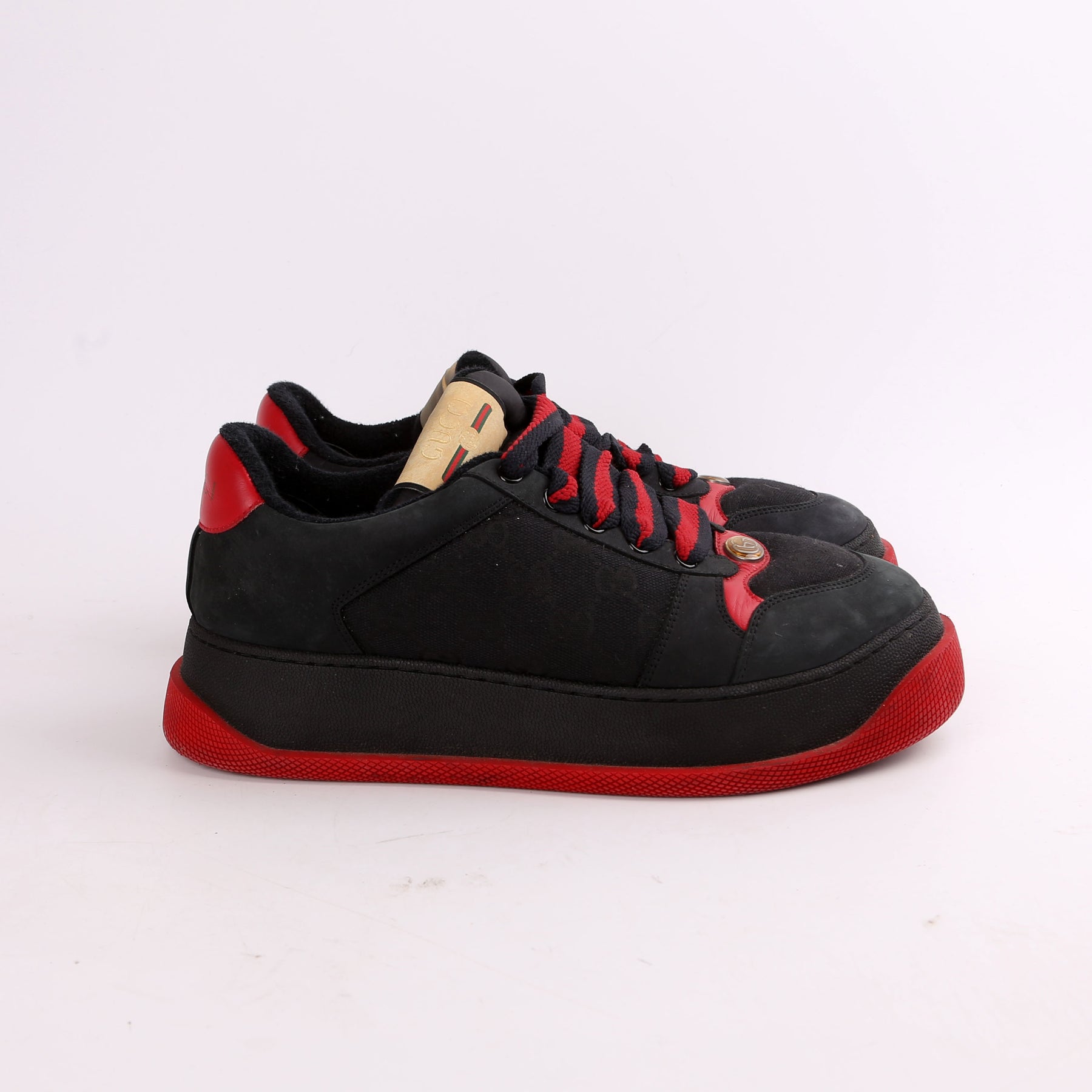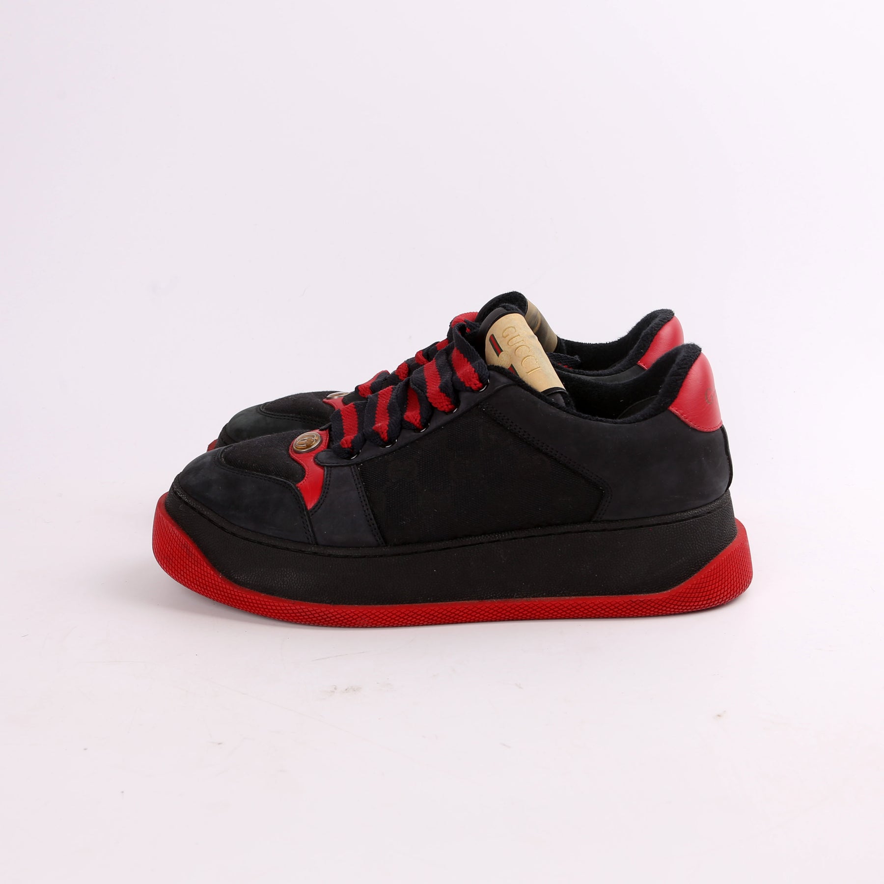 These pre-owned Gucci Tennis Double Screener Sneakers are guaranteed 100% authentic.