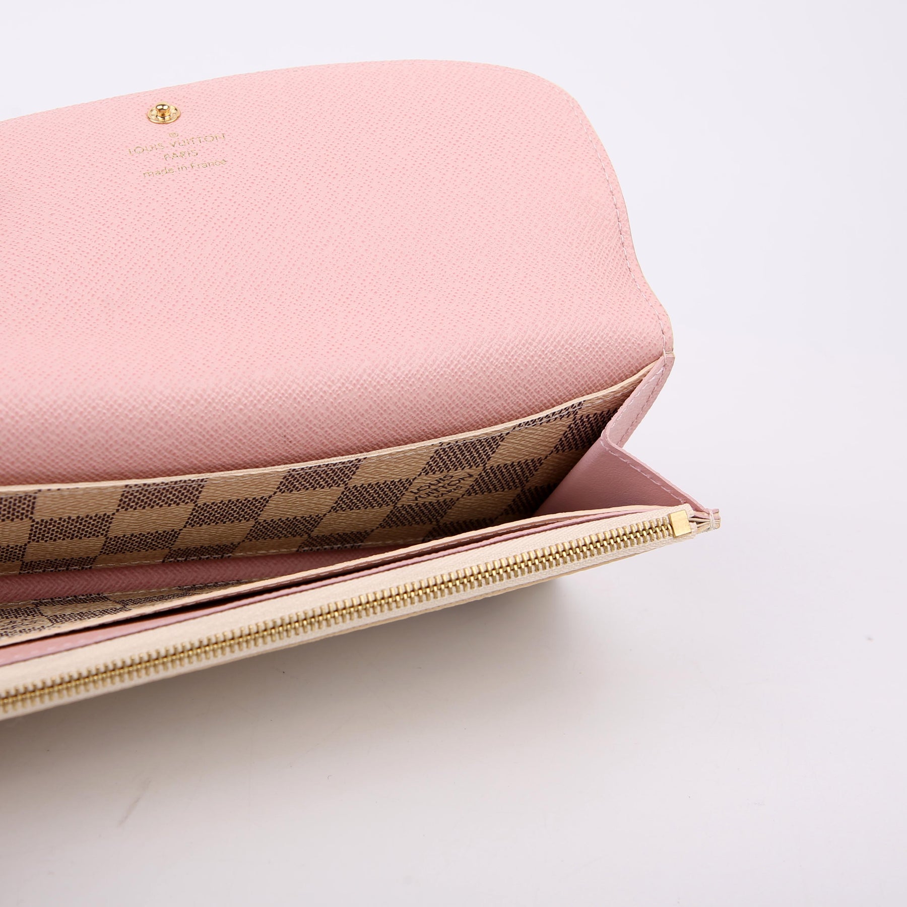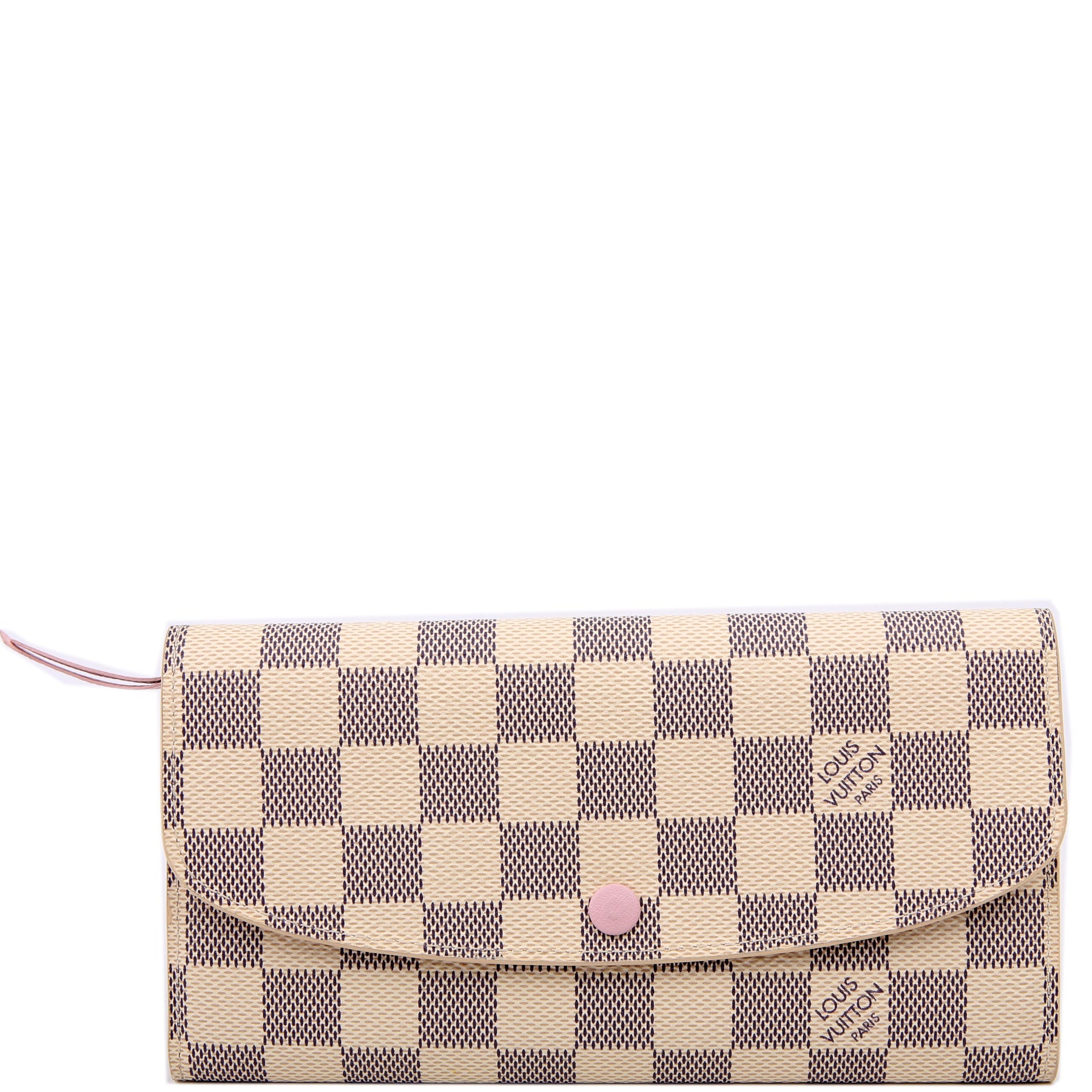 This pre-owned Louis Vuitton Emilie Wallet Newer is guaranteed 100% authentic. The exterior is in the classic Louis Vuitton Damier Azur coated canvas.