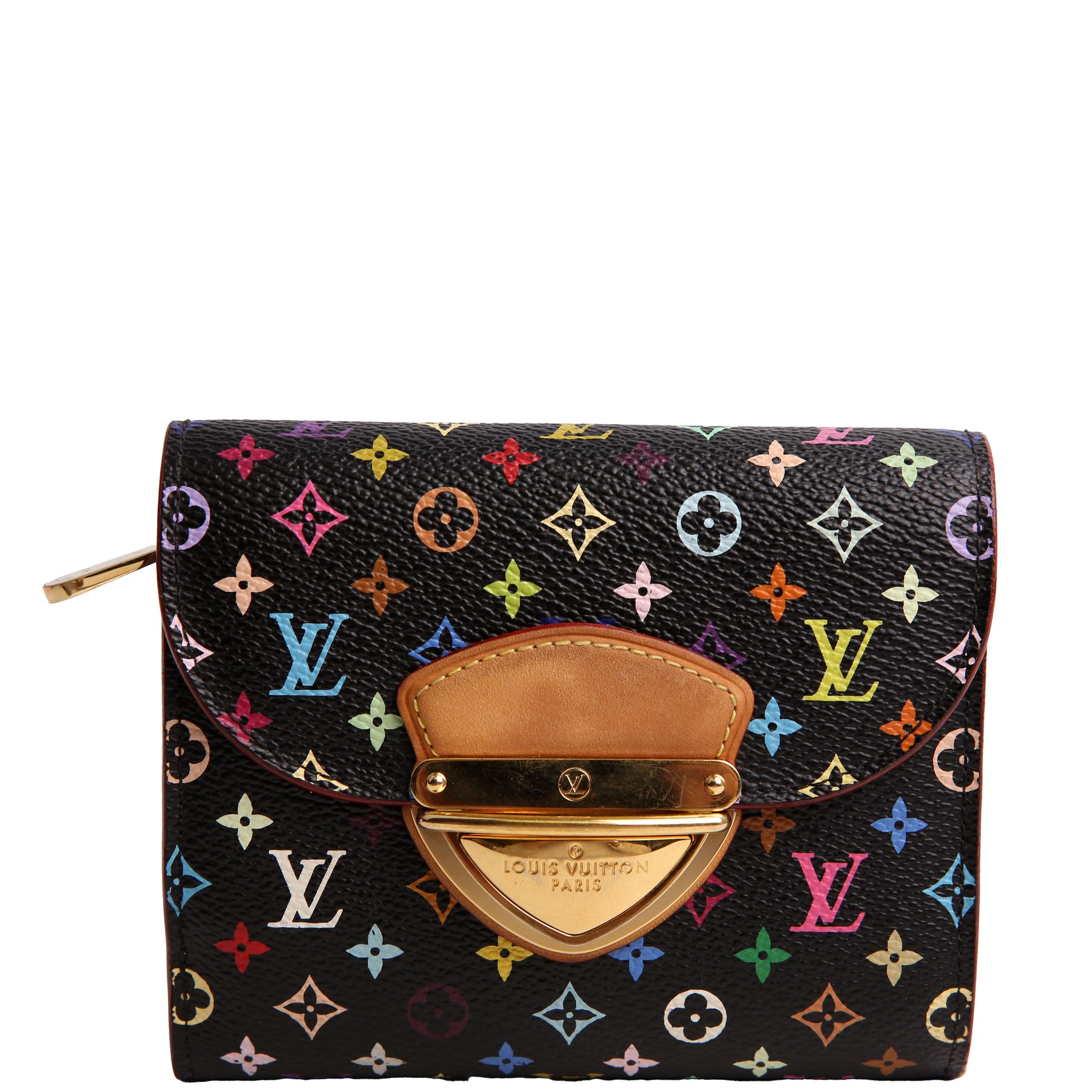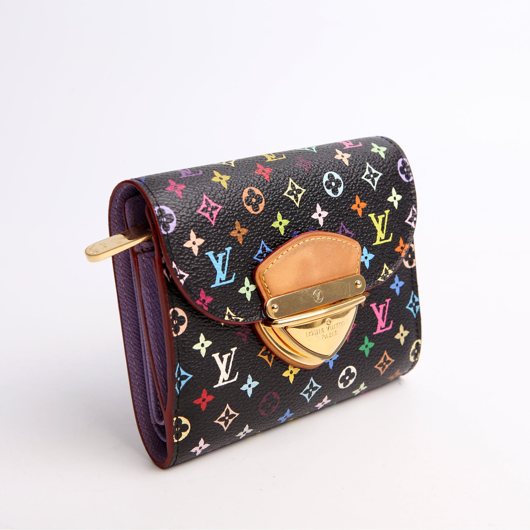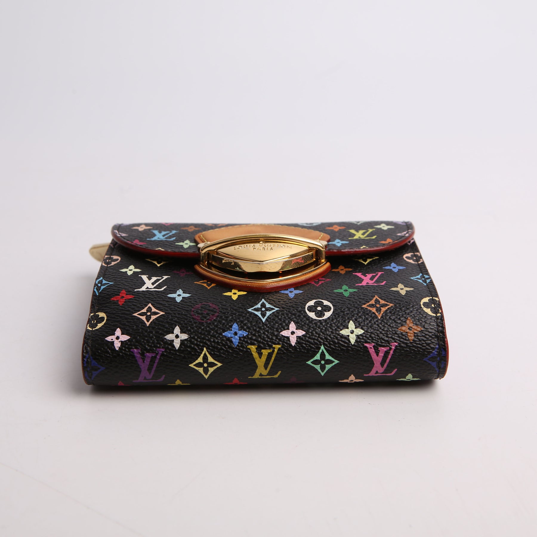 This pre-owned Louis Vuitton Eugenie Compact Wallet is guaranteed 100% authentic. The exterior is in the classic Louis Vuitton Multicolor Monogram coated canvas.