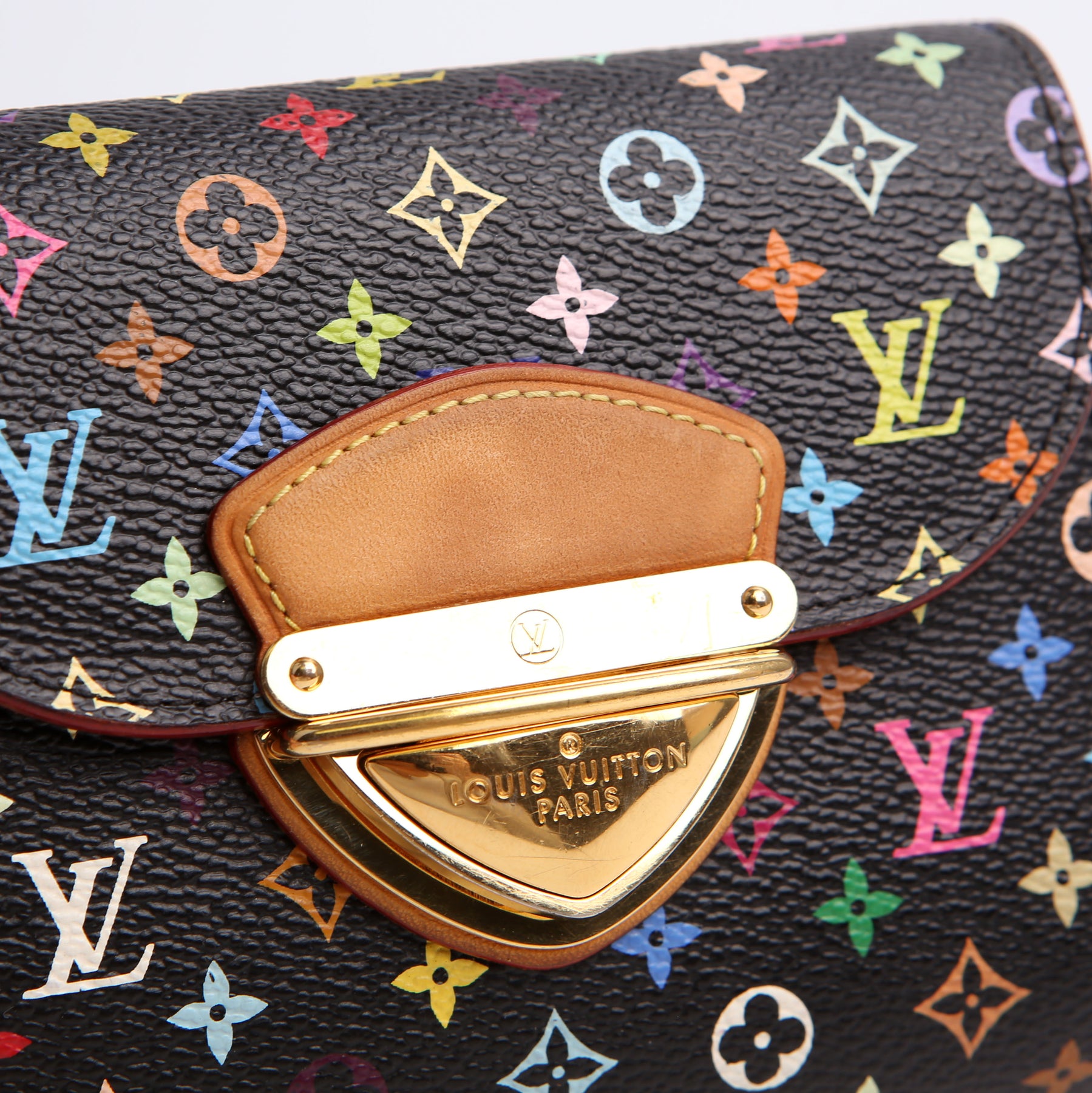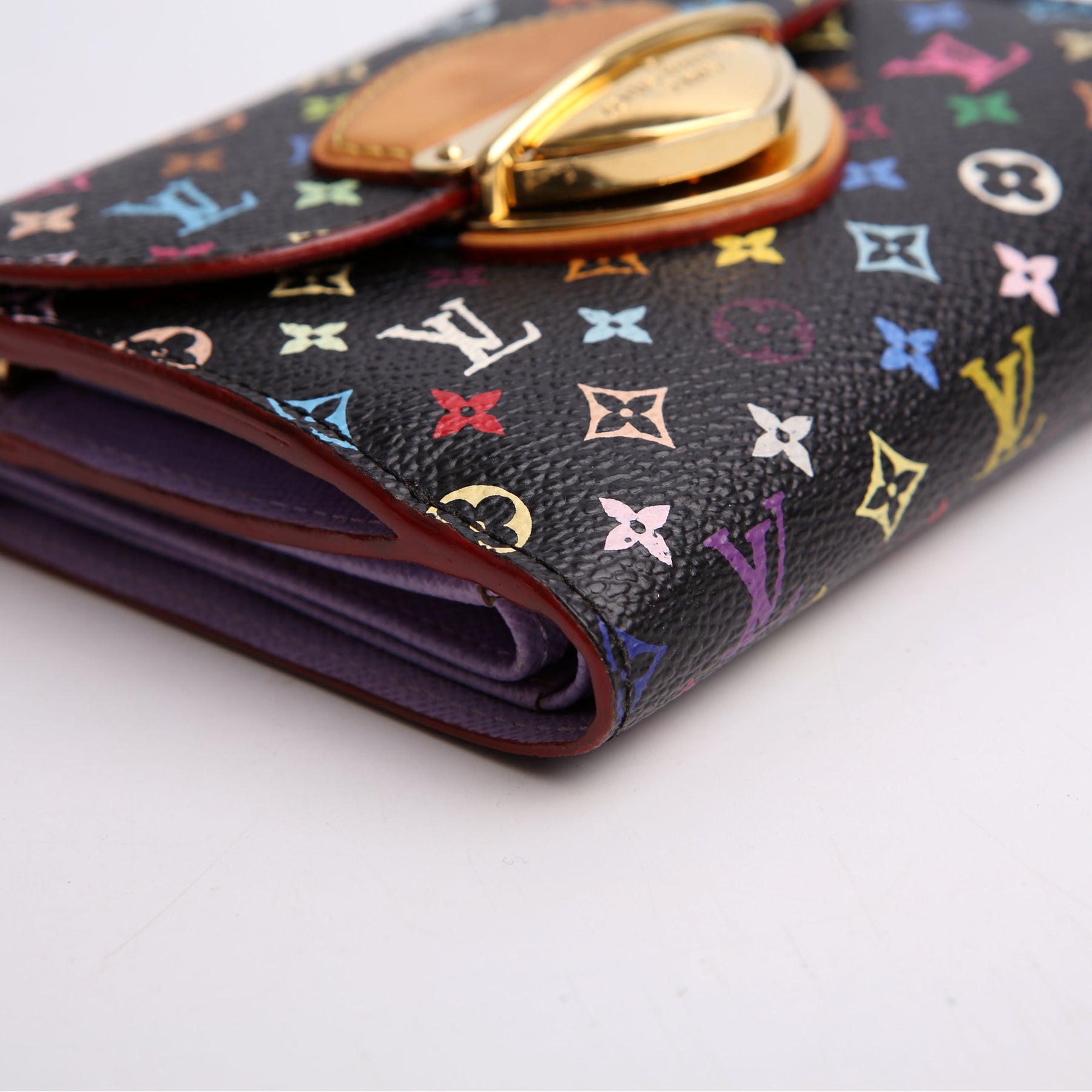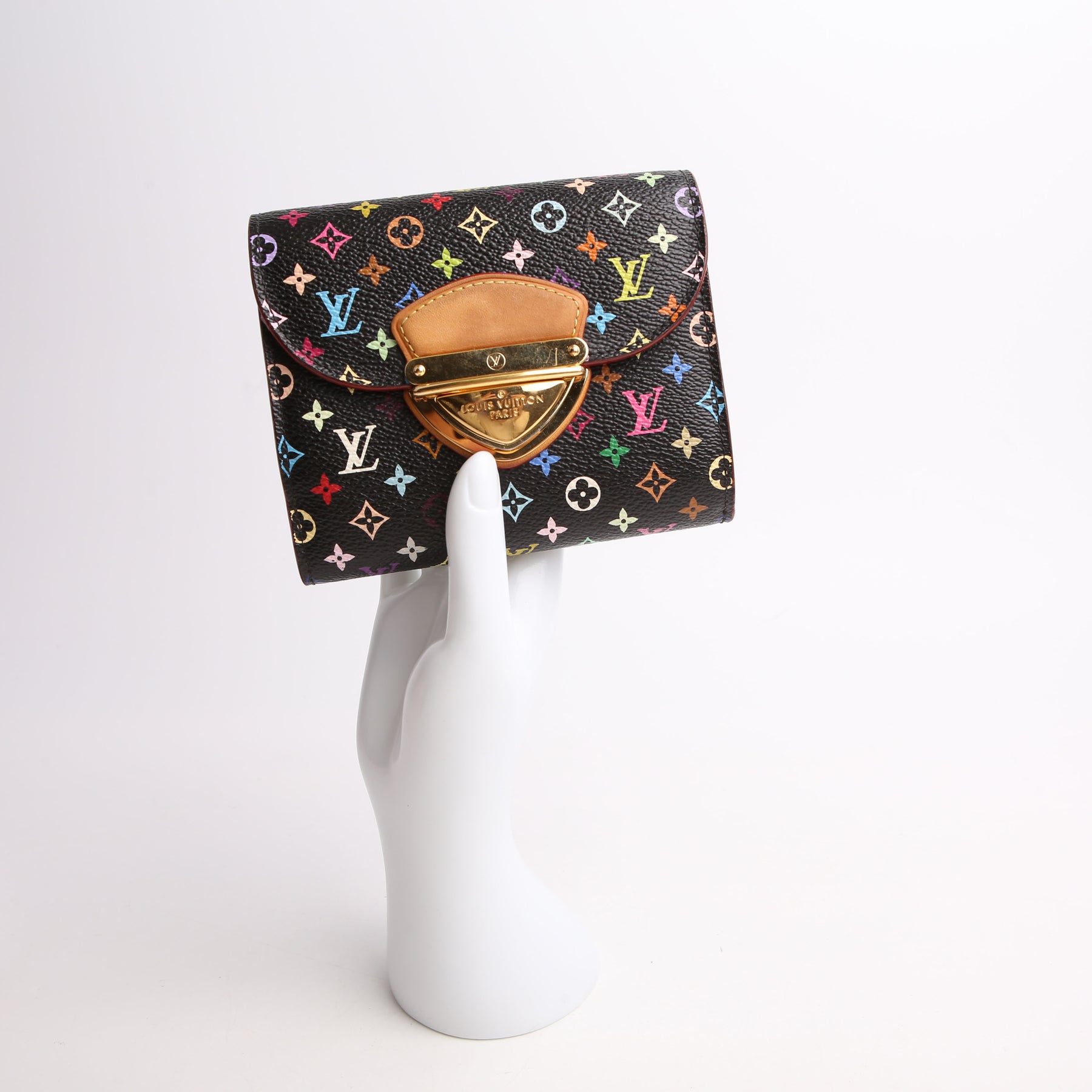 This pre-owned Louis Vuitton Eugenie Compact Wallet is guaranteed 100% authentic. The exterior is in the classic Louis Vuitton Multicolor Monogram coated canvas.