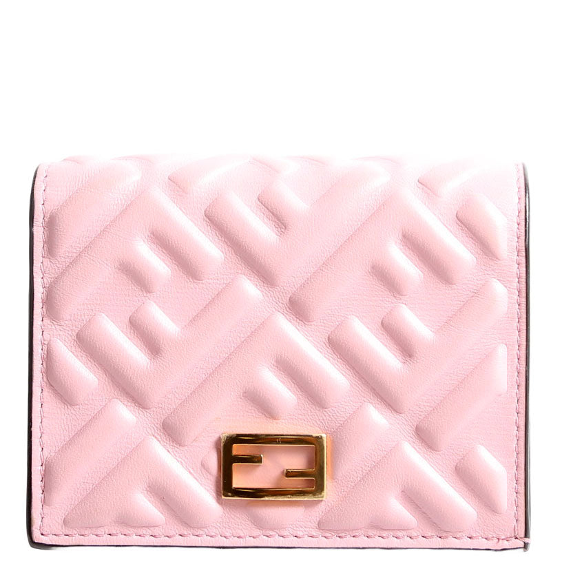 FF Embossed Card Holder Wallet Pink