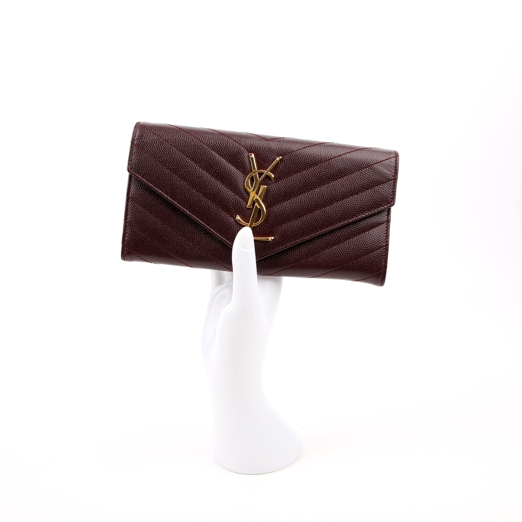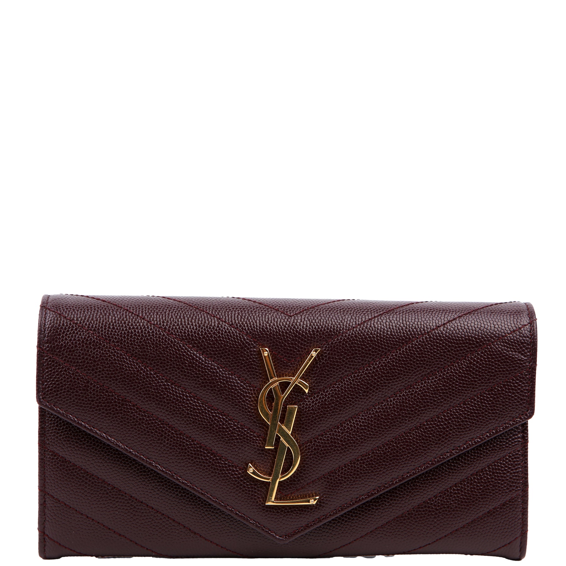 This pre-owned Saint Laurent Flap Wallet Large is guaranteed 100% authentic. The exterior is in the classic Saint Laurent Grain De Poudre leather.