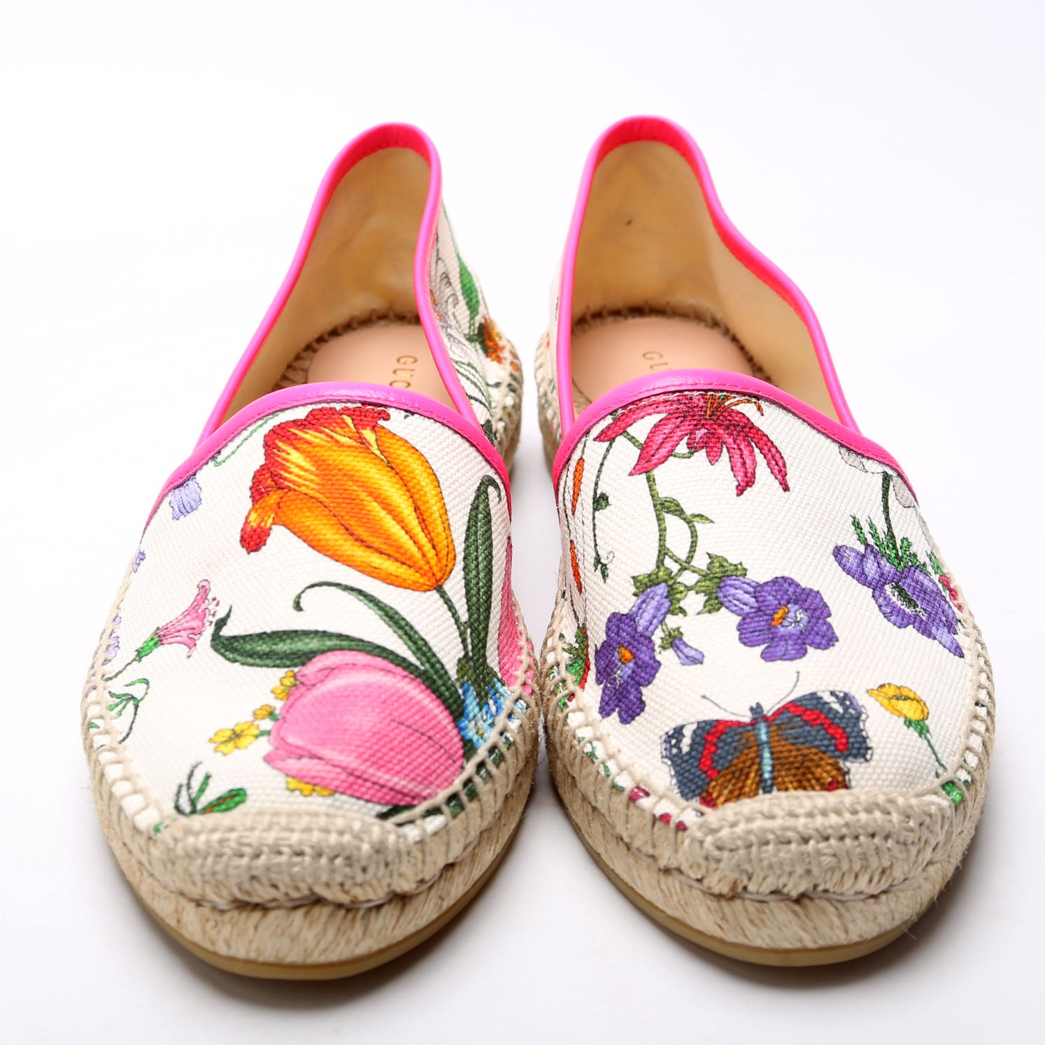 These pre-owned Gucci GG Flora Espadrille are guaranteed 100% authentic.