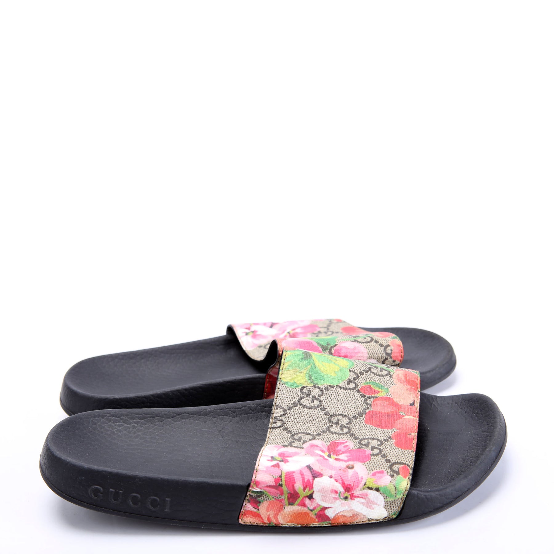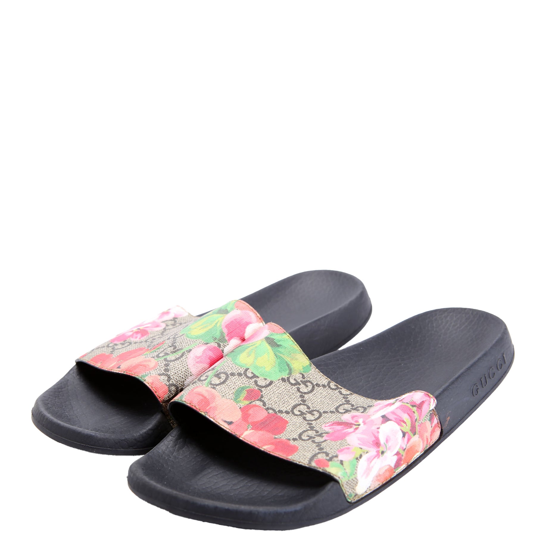 These pre-owned Gucci GG Blooms Slides are guaranteed 100% authentic.