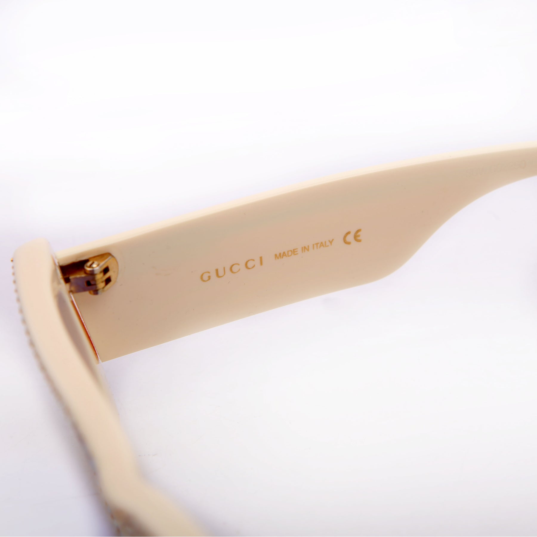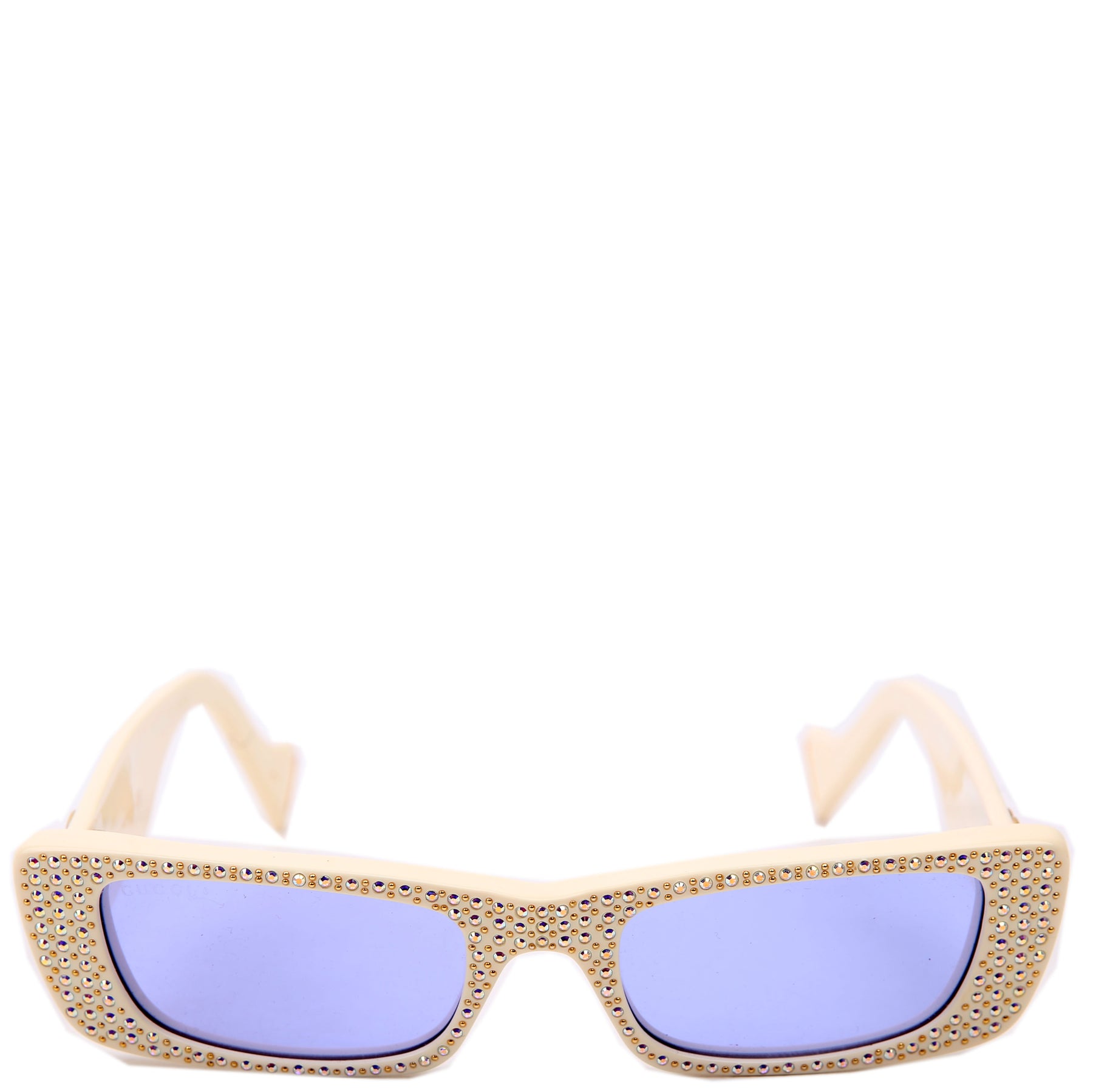 GG0516S Rectangular Narrow Crystal Sunglasses Cream