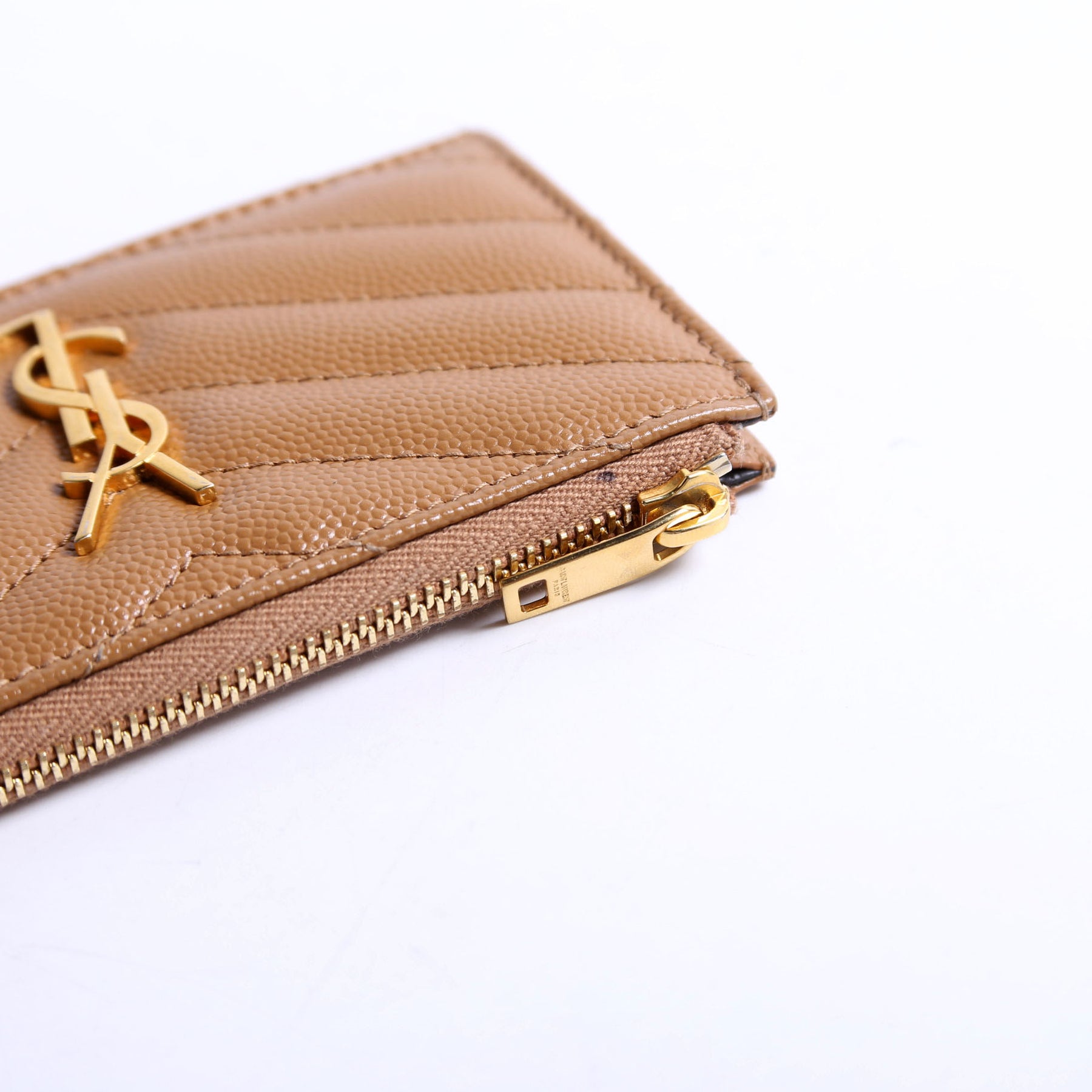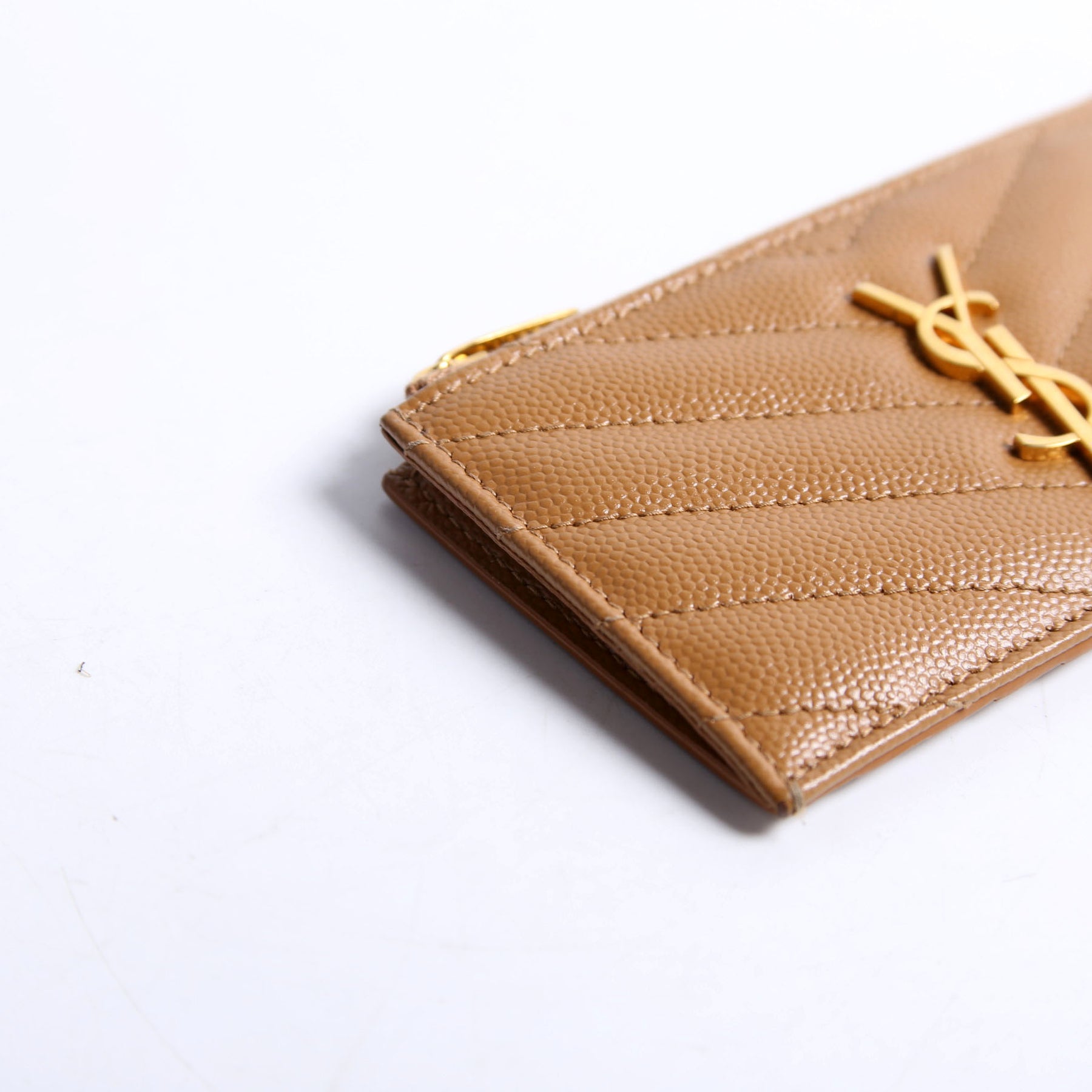 These pre-owned Saint Laurent Grain De Poudre Fragments Card Holder are guaranteed 100% authentic. The exterior is in the classic Saint Laurent Grain De Poudre leather.